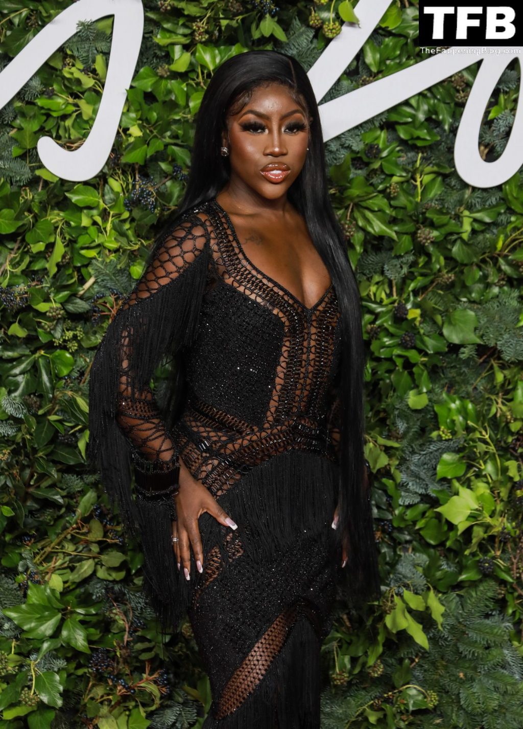 La rapera inglesa Bree Runway es vista llegando a The Fashion Awards 2021 en el Royal Albert Hall en Londres, 29/11/2021.