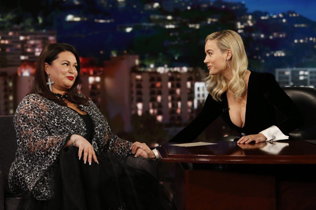 Brie Larson muestra su impresionante pecho 34D en un vestido increíblemente escotado mientras actúa como presentadora en Jimmy Kimmel Live, 19/11/2019. La estrella de Captain Marvel y Fappening evitó por poco un fallo de vestuario mientras presentaba el programa de entrevistas nocturno con un impresionante vestido negro que no solo mostraba sus pechos sino que también tenía una sexy abertura alta en el muslo.