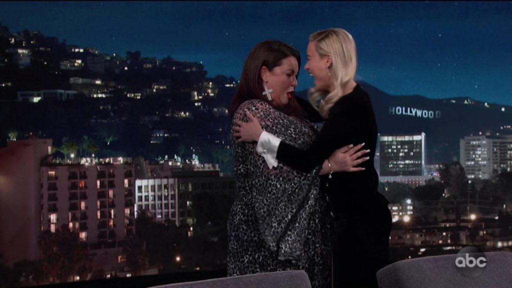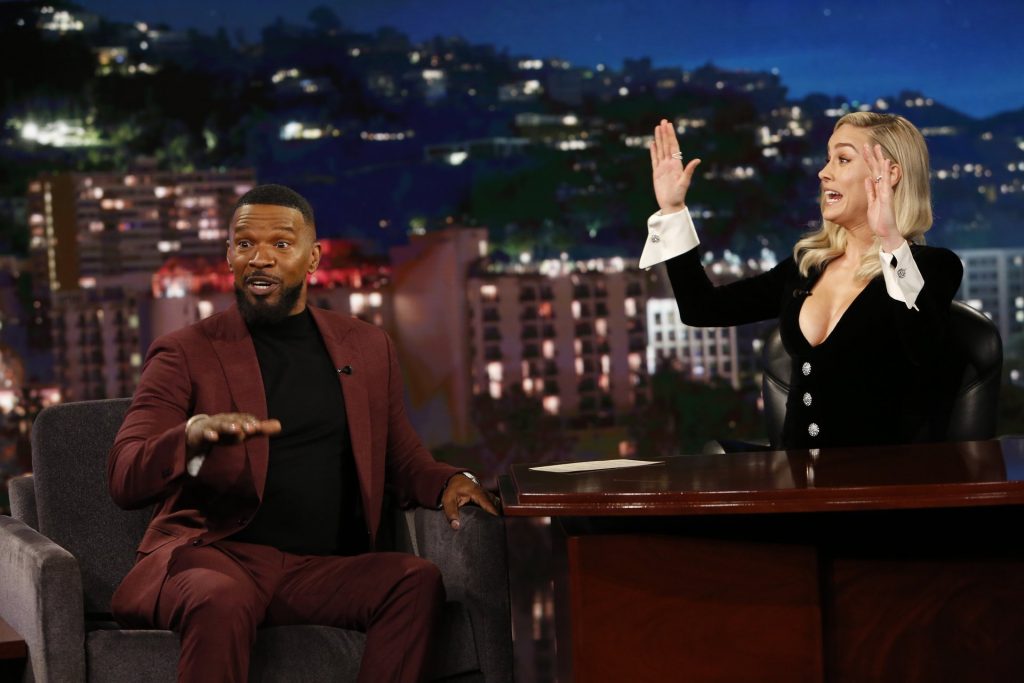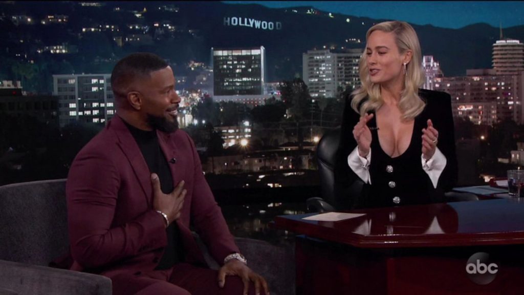 Molly confirmó que ese era su superpoder, lo que llevó a Brie a señalar su vestido y bromear: “¡Te lo puse muy fácil! ¡Aquí tienes!” Molly entonces le dijo: “Eres una 30F, que es de triple D a G, pero no es lo que compras.” Una sorprendida Brie respondió: “¡No compro eso!” Molly añadió: “Compras como 34Ds,” a lo que Brie respondió: “¡Santo cielo!” Molly luego le preguntó: “¿Eso es lo que compras?” y la estrella confirmó: “¡Sí!” Después de que Molly se quejara de que “nadie en América sabe las tallas de sujetador”, Brie sacó una foto de Taylor Swift en la nueva película Cats y dijo: “Tengo una pregunta difícil para ti. ¿Cuál es la talla de sujetador de esta?” Molly respondió riendo: “Ella es un poco más pequeña, es una D.” Brie, que se había burlado de la nueva película Cats en el monólogo de apertura del programa, preguntó: “¿Estás teniendo en cuenta el pelaje?” a lo que Molly dijo: “Oh sí.” También en el programa Brie entrevistó a su compañero de Just Mercy Jamie Foxx, quien también comentó sobre su apariencia, diciéndole: “¡Te ves increíble, eres hermosa!”