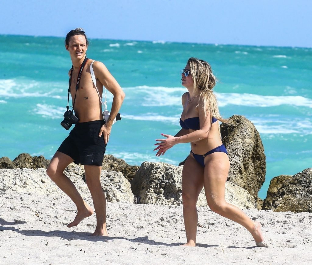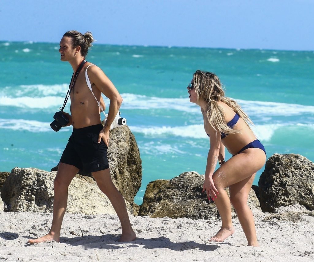 Brielle Biermann muestra sus atributos en la playa de Miami con amigos, 24/02/2018. Brielle Biermann es una personalidad de la televisión de realidad y modelo estadounidense. Edad: 21.