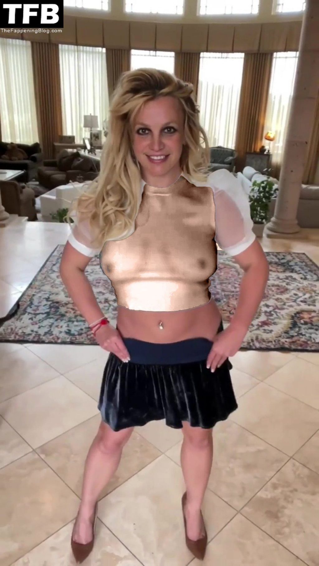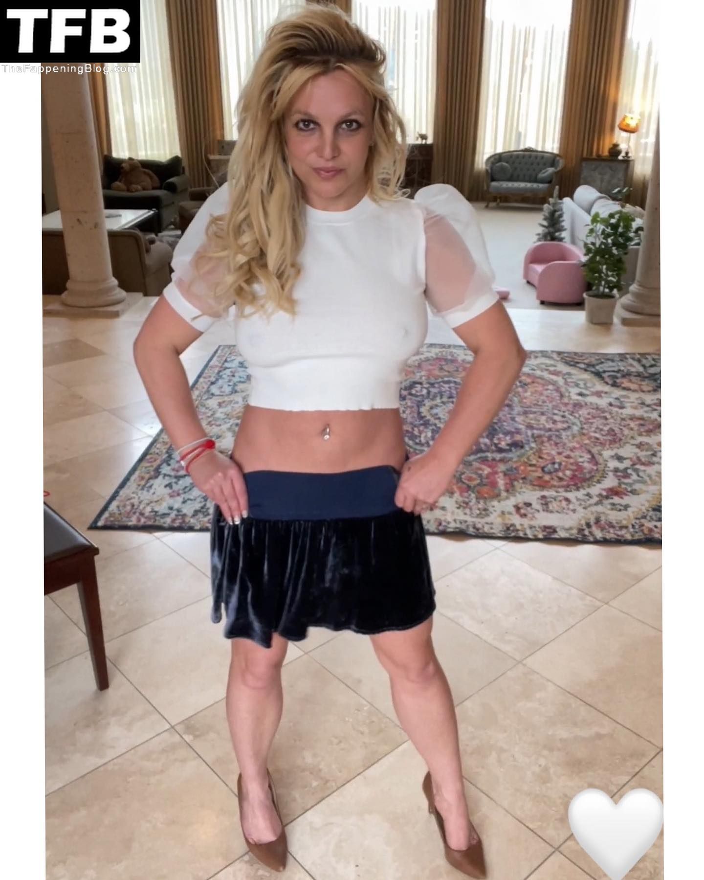 ¿Alguien puede responder esta simple pregunta? Hay una compulsión constante de tomar fotos que son más o menos iguales. Es su porche, su jardín o su casa. Es ella, típicamente sin camiseta, cubriéndose los pechos, o haciendo algún tipo de gesto coqueto como el de arriba. Pero no hay creatividad, las fotos están tomadas con la habilidad de una abuela con una cámara barata de apuntar y disparar, y Britney realmente no está posando, solo se queda ahí con una sonrisa forzada y una expresión tonta.