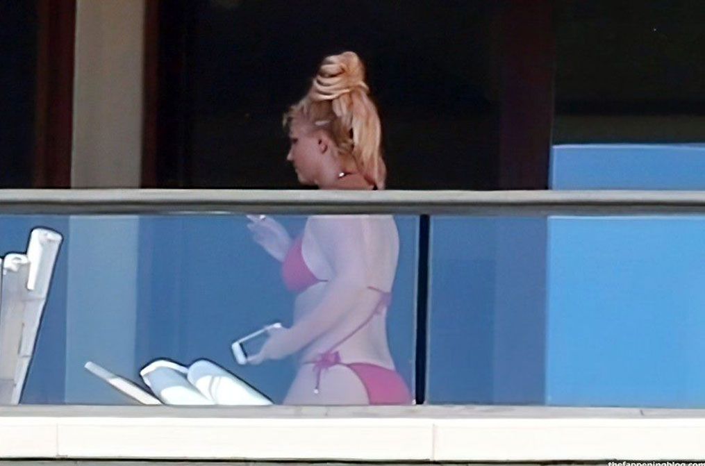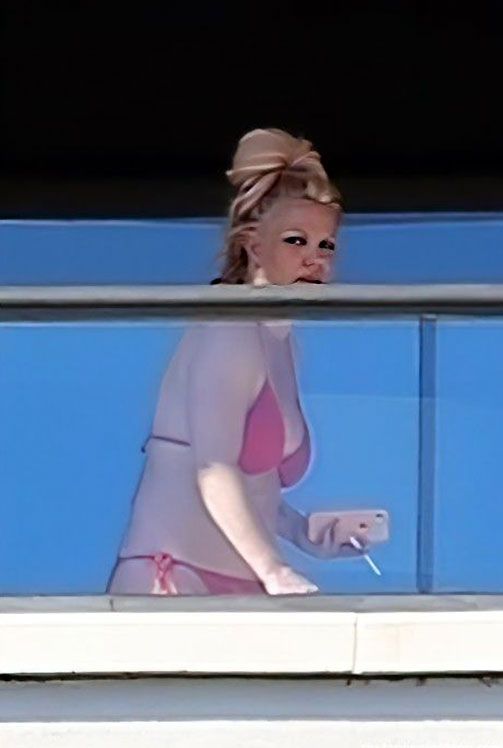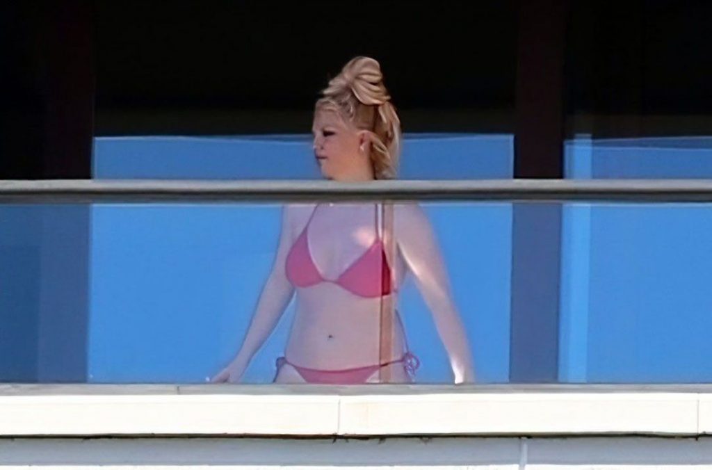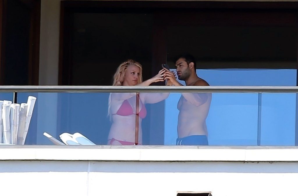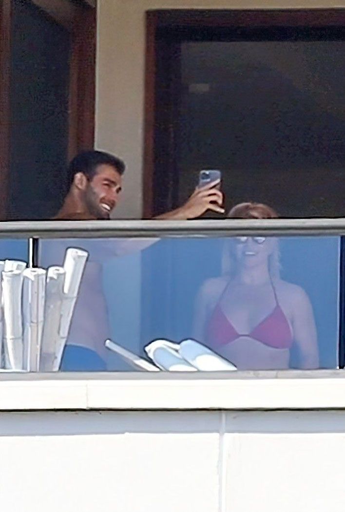 Britney Spears and her boyfriend were caught on a hotel balcony in Hawaii! The couple was walking around their room, and they stepped on the terrace to catch some sun! Britney Spears smoked a cigar and her boyfriend took some selfies as he posed around!