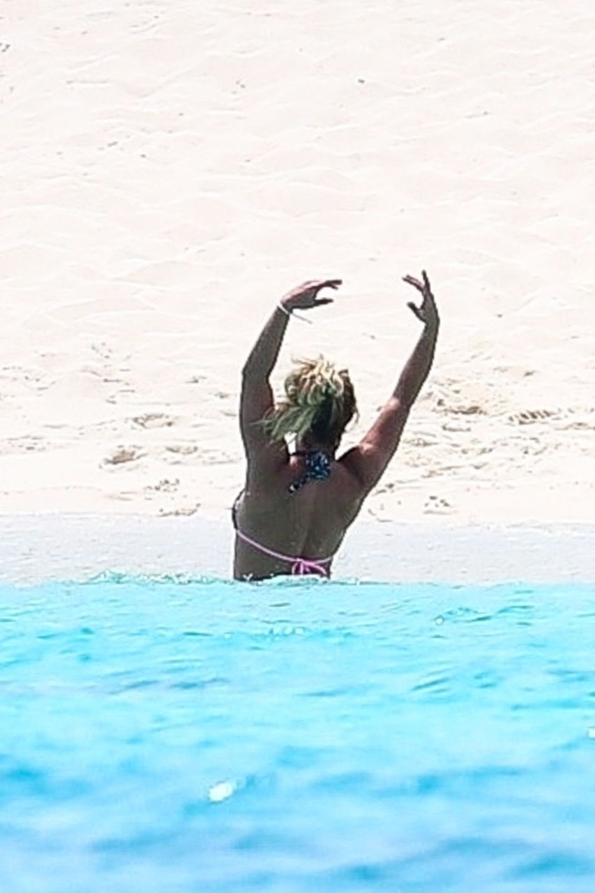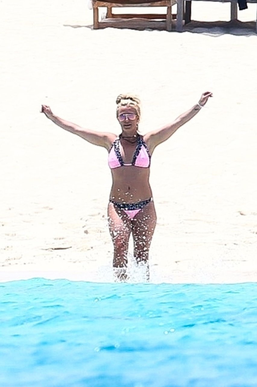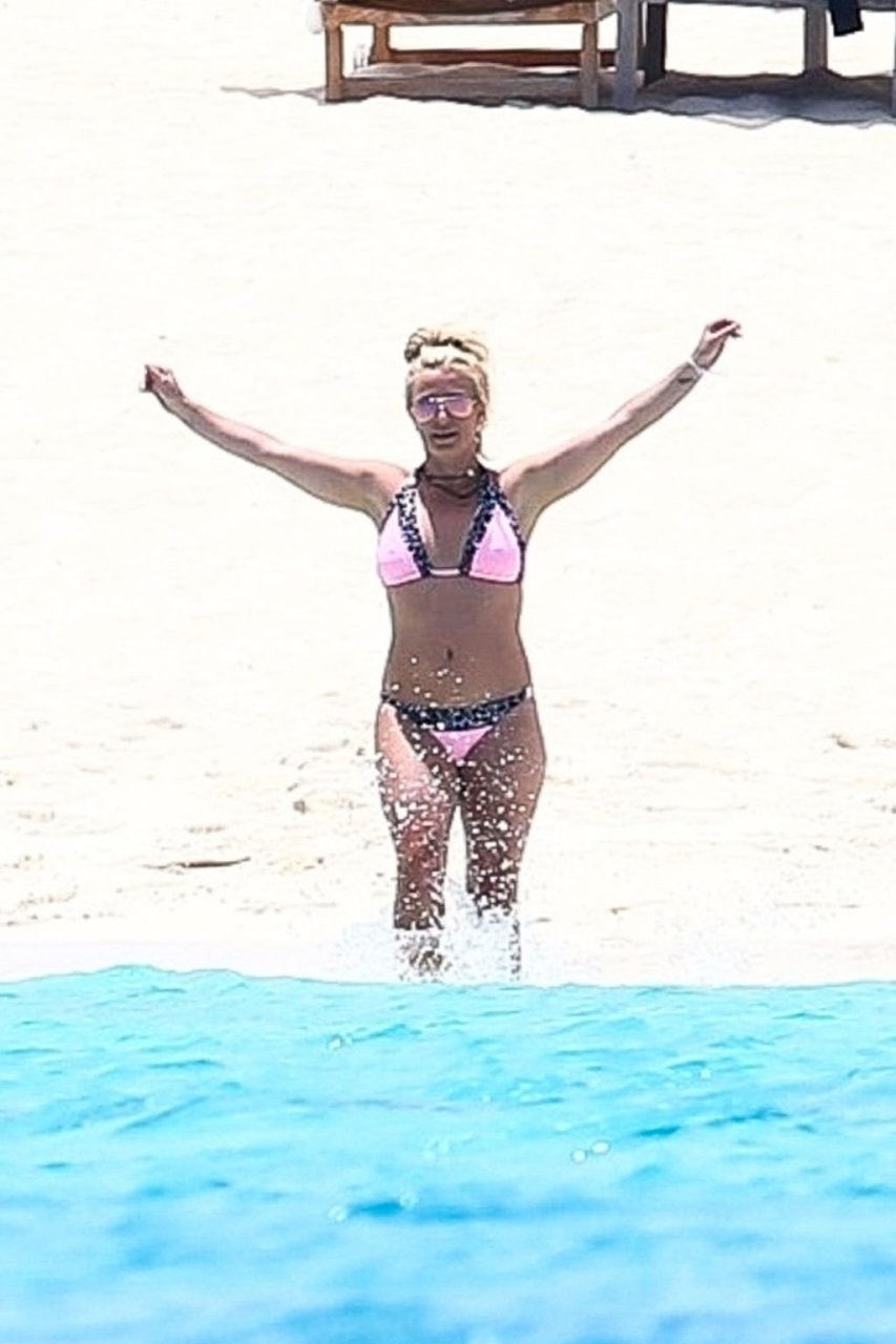 Britney Spears apareció como su antiguo yo nuevamente, riendo y haciendo volteretas en la playa mientras disfrutaba de una escapada a la playa con su madre Lynne – Turks and Caicos, 23/06/2019.