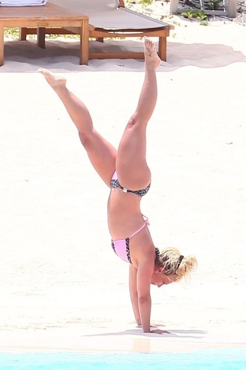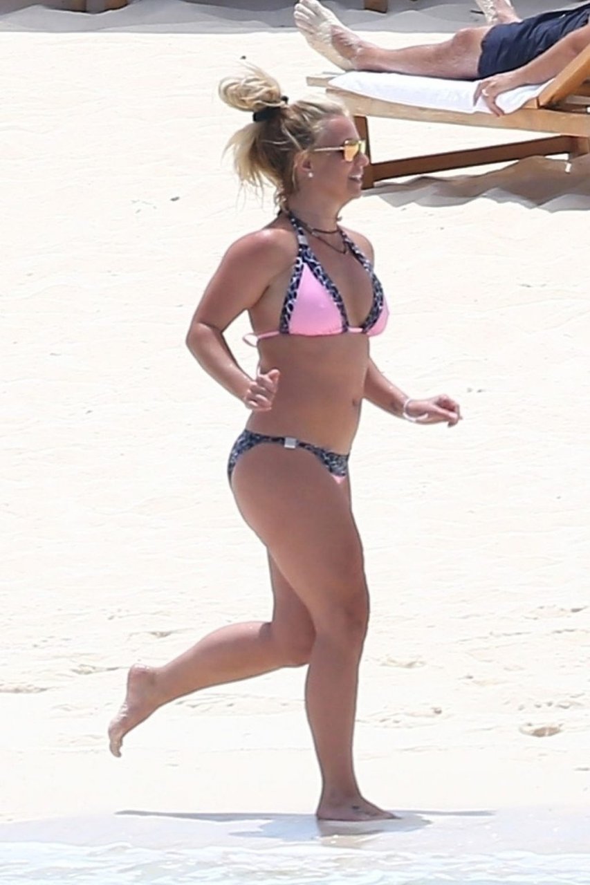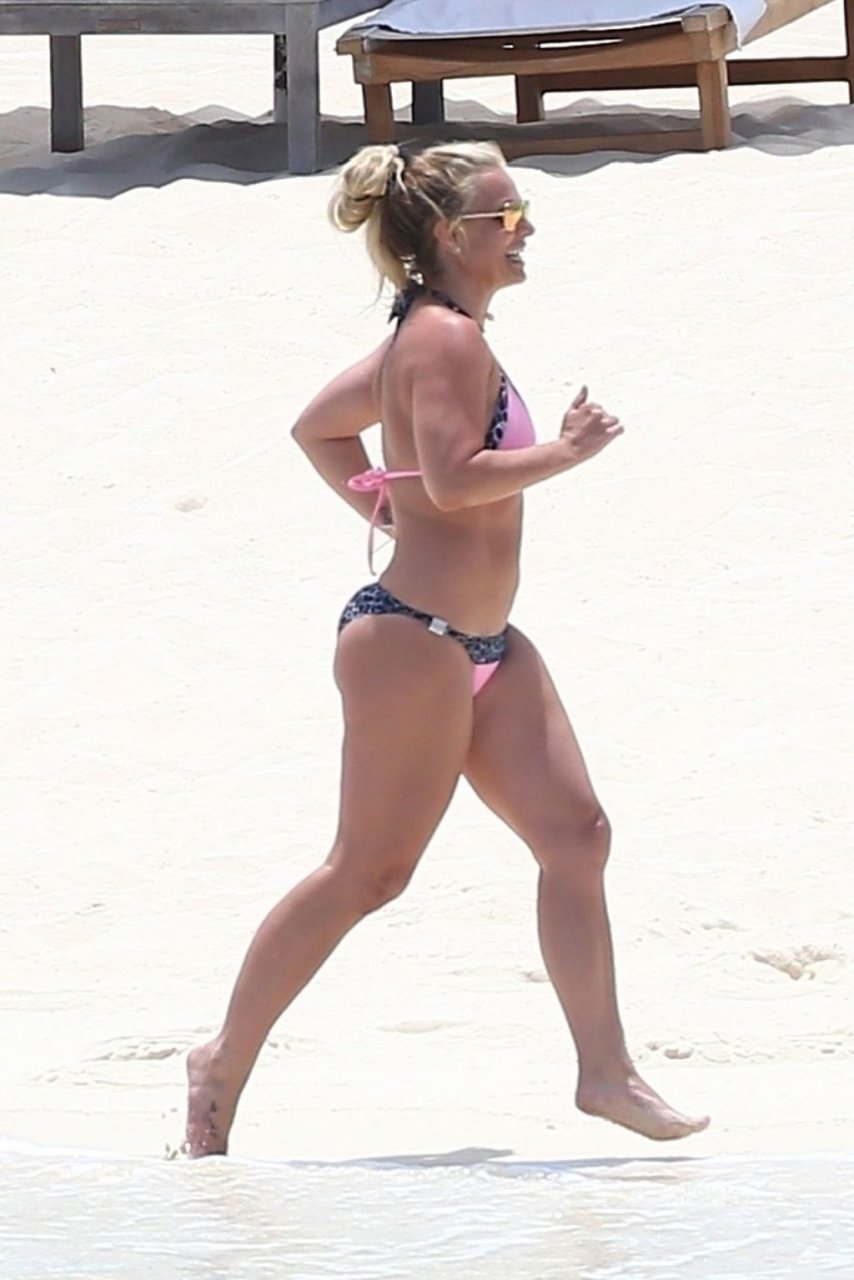 Britney Spears apareció como su antiguo yo nuevamente, riendo y haciendo volteretas en la playa mientras disfrutaba de una escapada a la playa con su madre Lynne – Turks and Caicos, 23/06/2019.