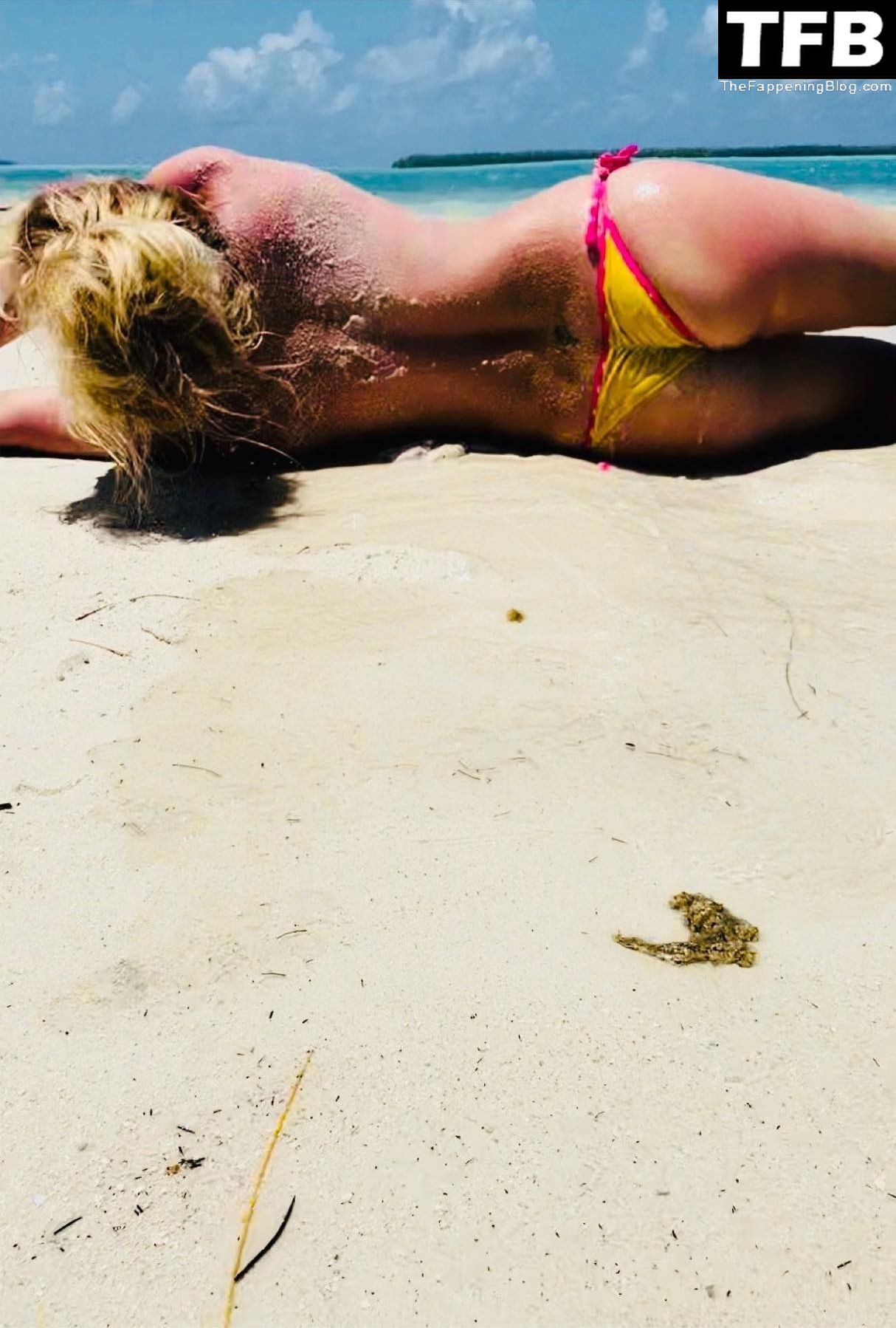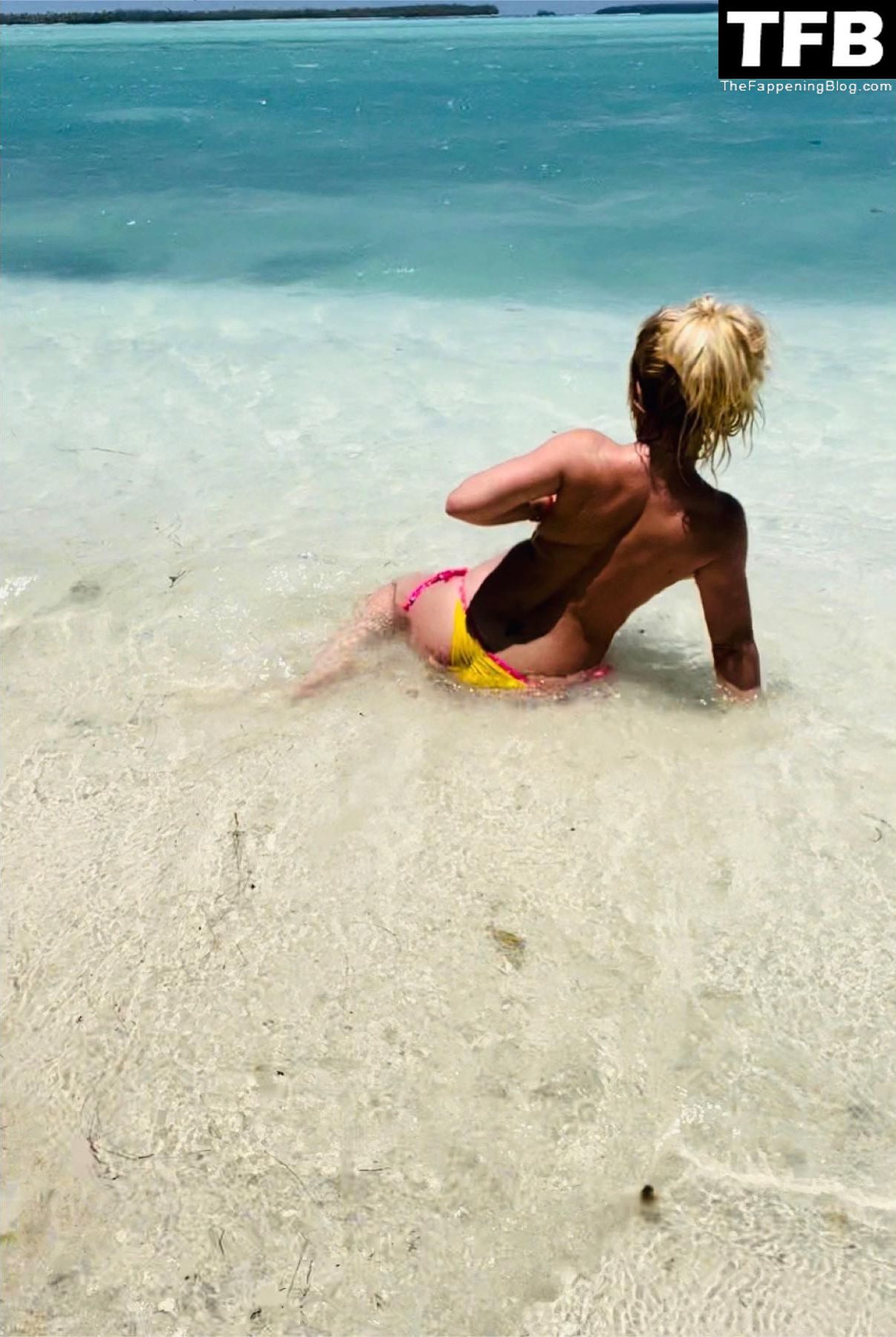 La cantante Britney Spears posa topless en la playa, cubriendo sus pechos desnudos – Instagram, 03/07/2022.