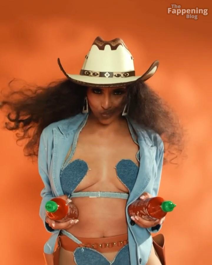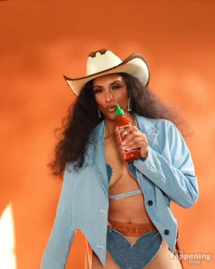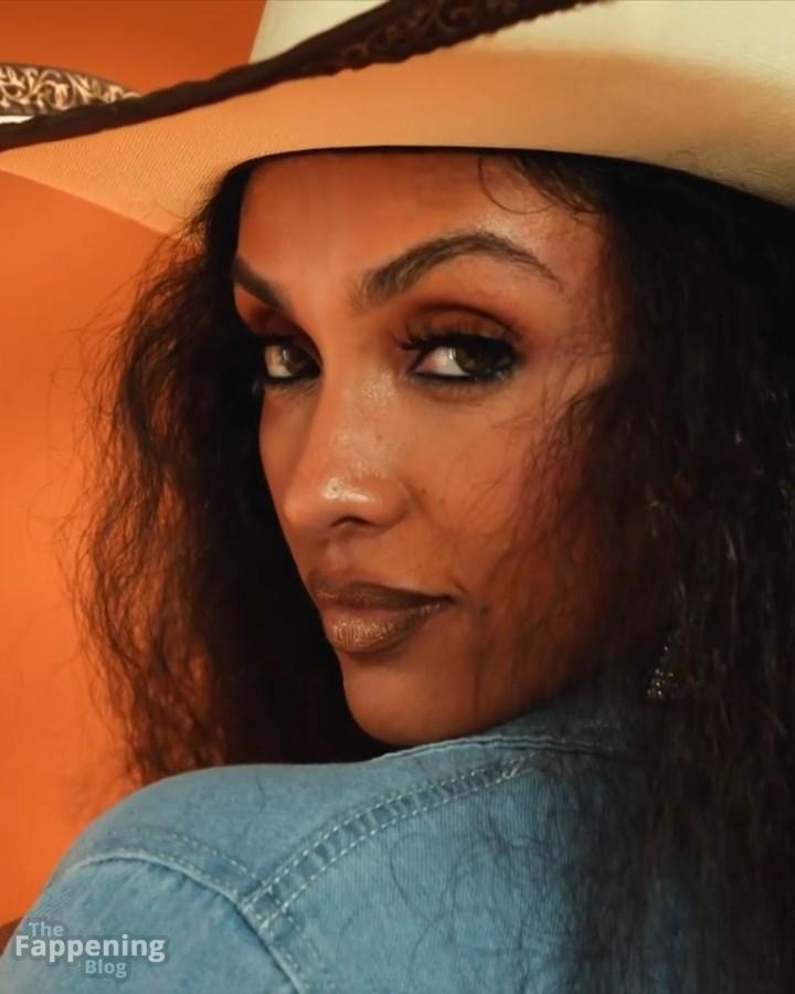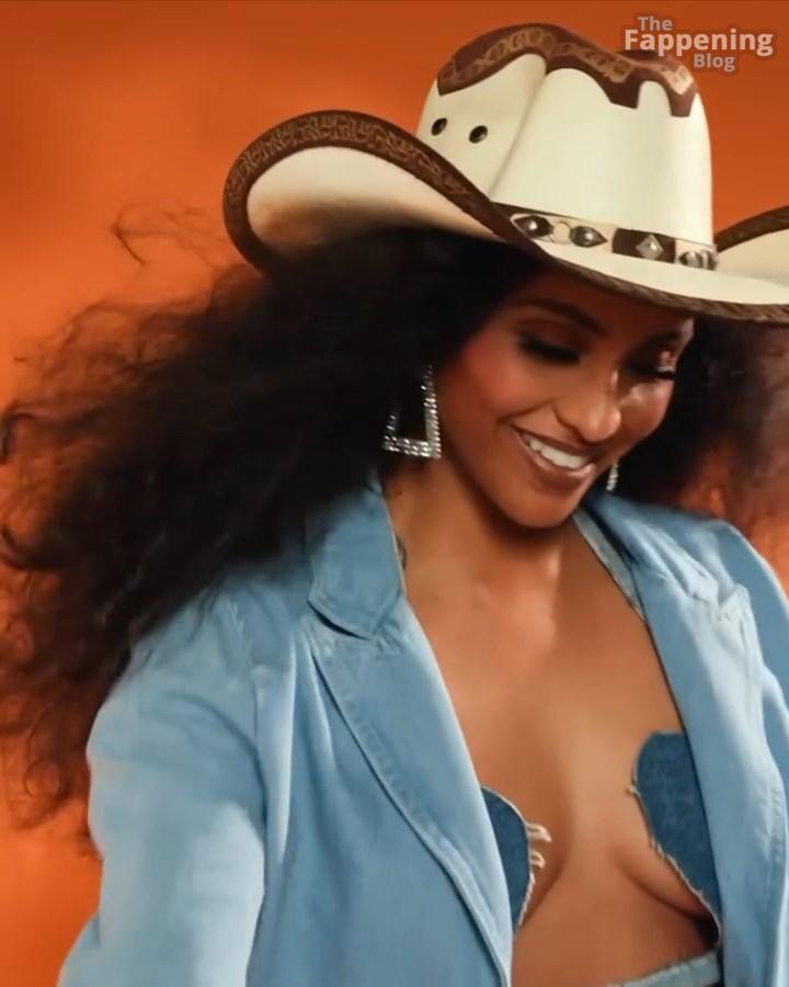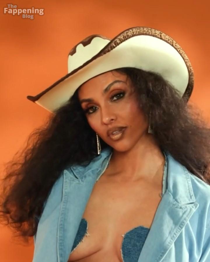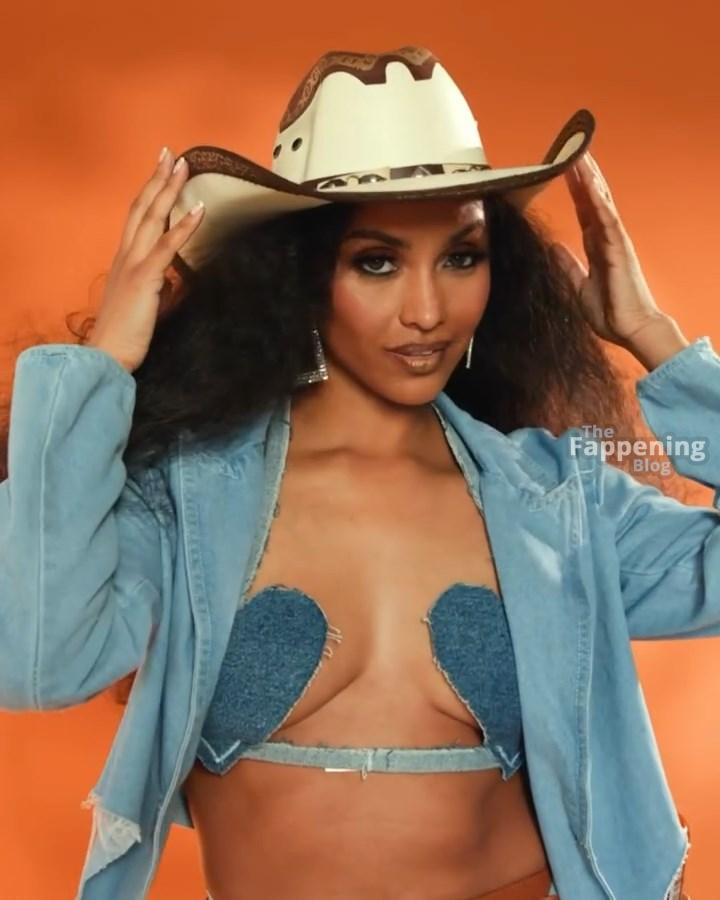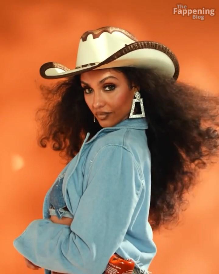 ¡Tienes que ver el sexy look de vaquera de Brittney Elena – es tan divertido y creativo! La actriz y presentadora de televisión está abrazando completamente el tema occidental con una chaqueta de mezclilla oversize, un sujetador a juego y esas botas altísimas. Añade toques juguetones como un sombrero de vaquero y detalles de mezclilla en forma de corazón.