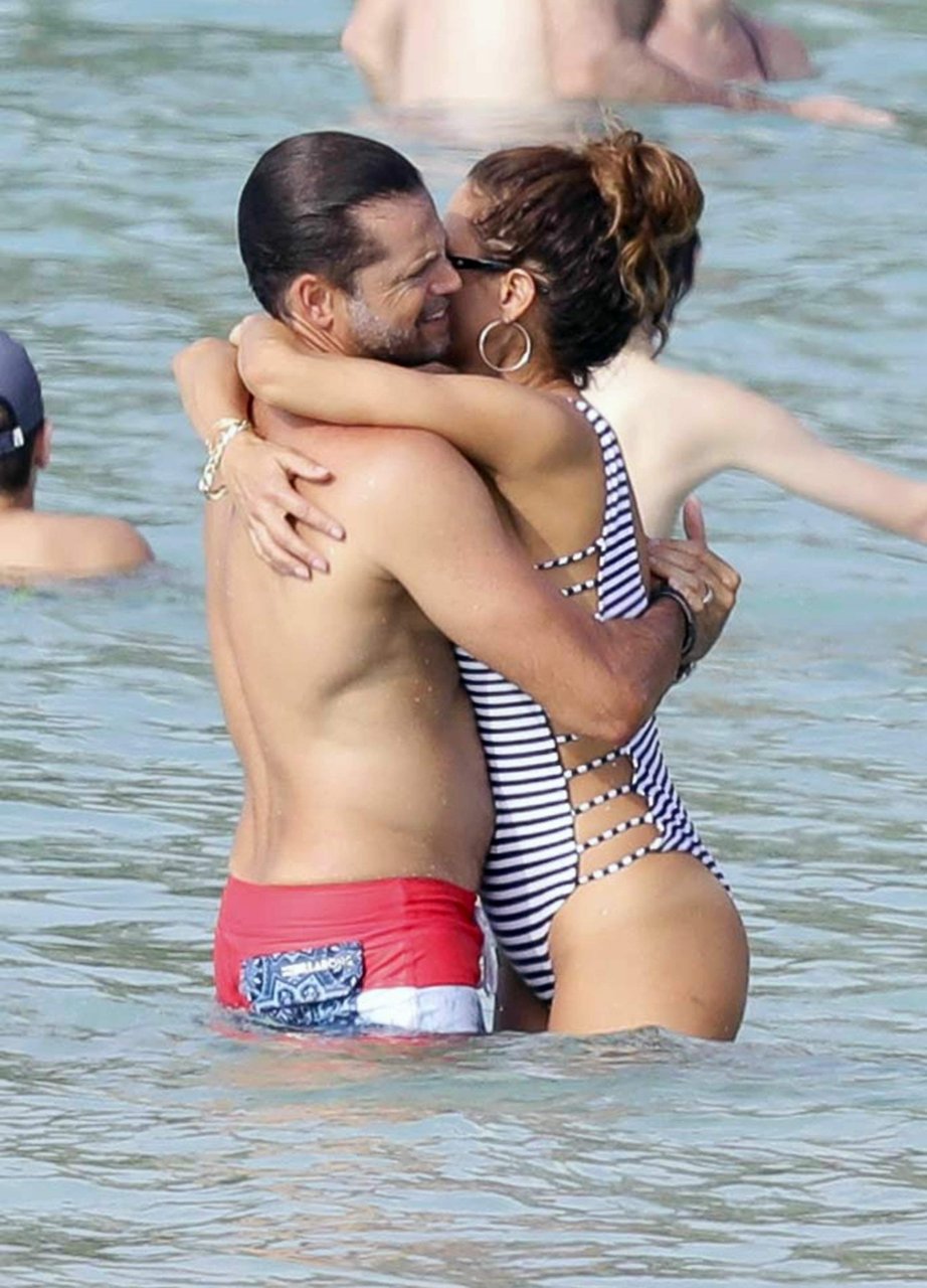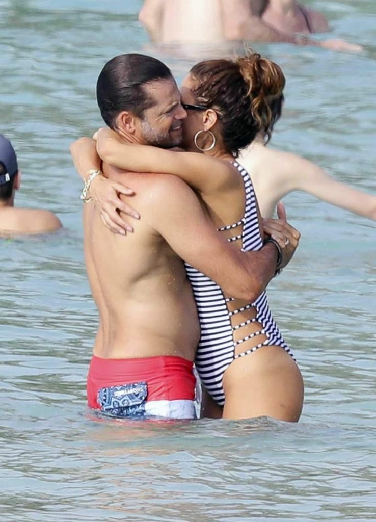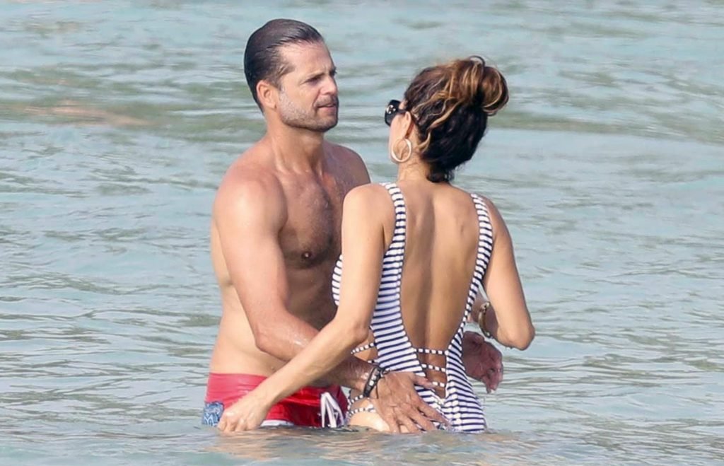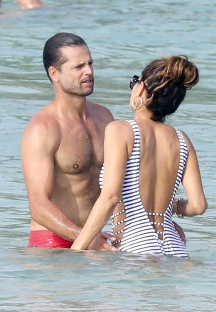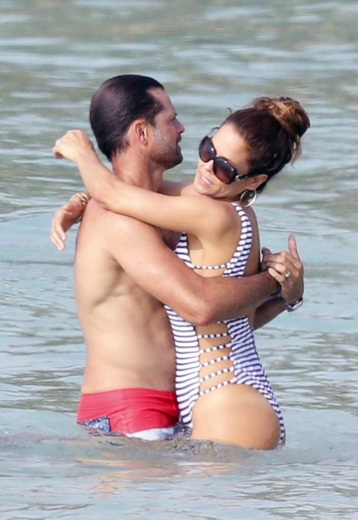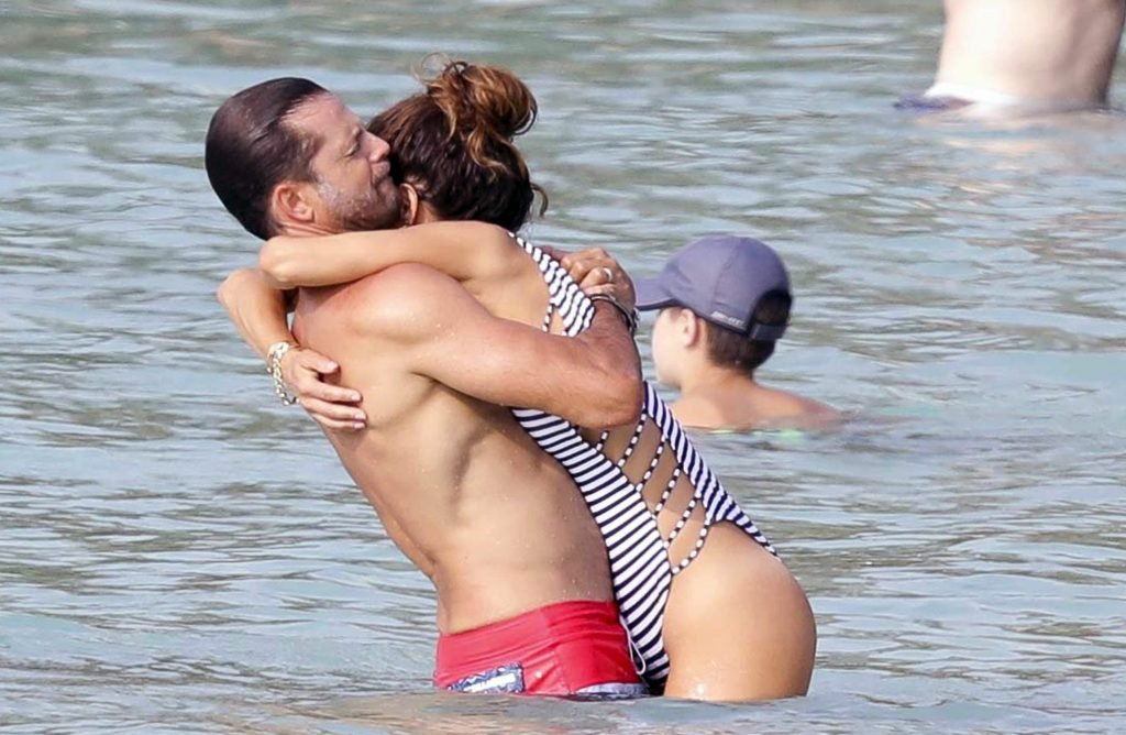Brooke Burke lleva un traje de baño a rayas en la playa de St. Barths, 28/03/2017. Brooke Burke es una actriz estadounidense (Melissa & Joey) y modelo. Edad – 45.