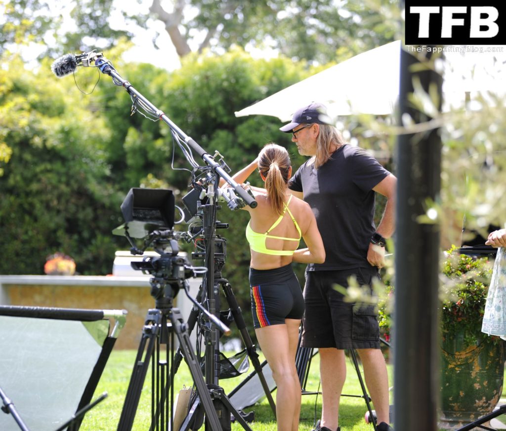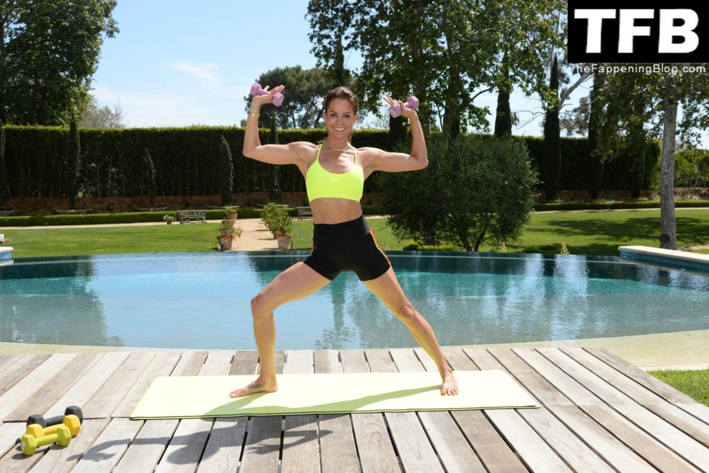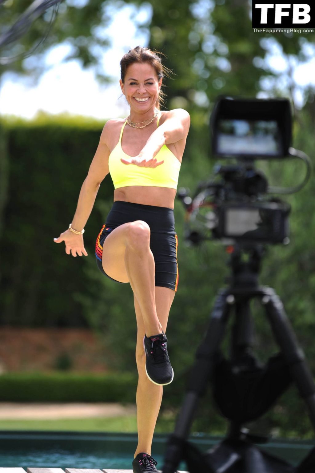 Brooke Burke aparece trabajando en su aplicación Brooke Burke Body en su patio trasero en Los Ángeles, 06/05/2022.