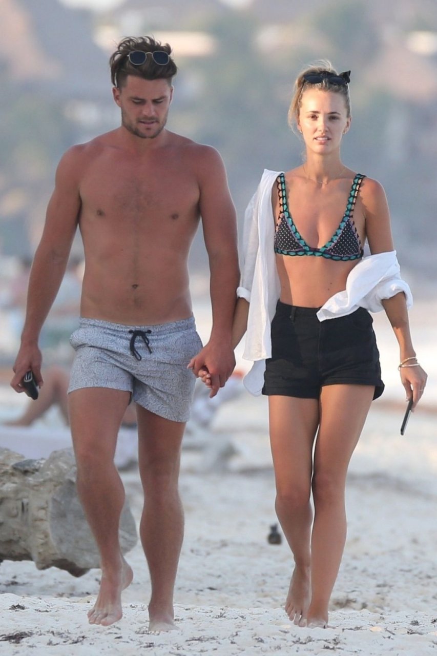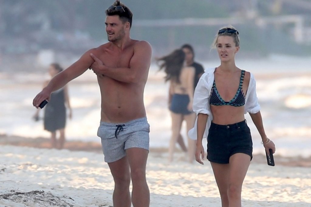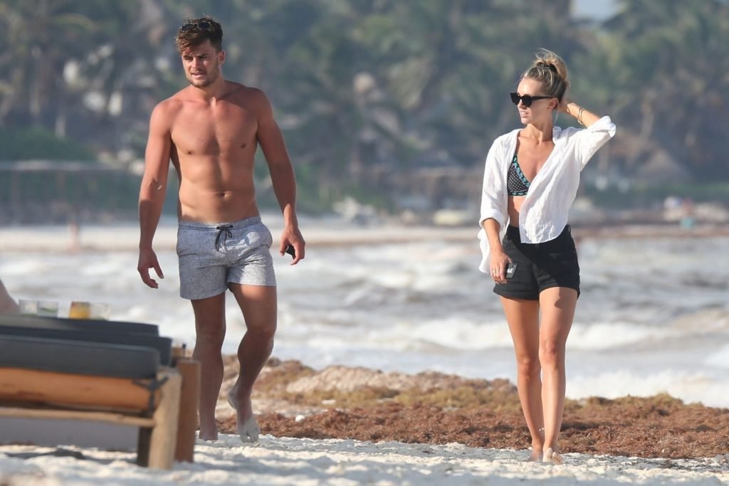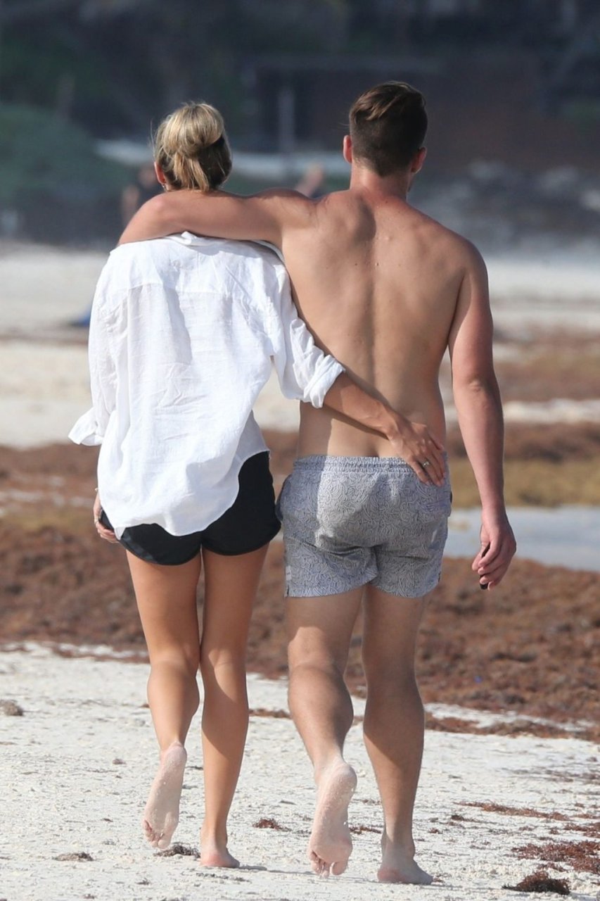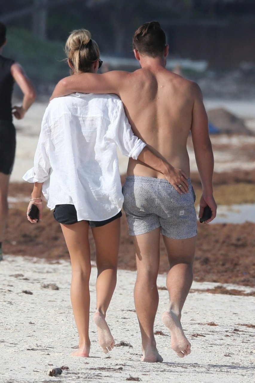 La modelo australiana Brooke Hogan y Myles Pitt caminan por la playa durante unas vacaciones juntos en Tulum, México, 21/04/2019.