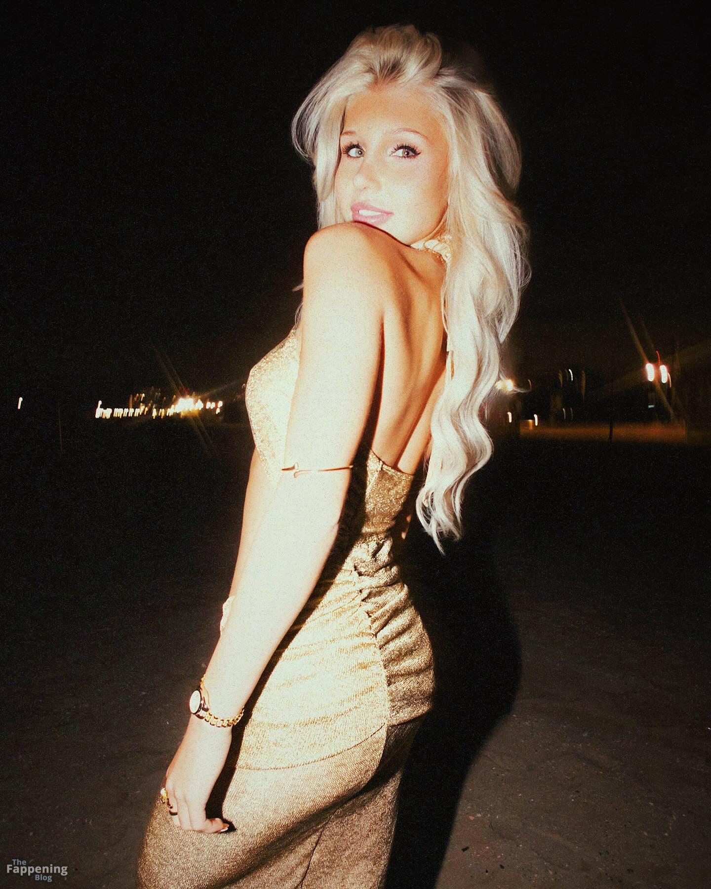 Brooklyn Riley brilla con un vestido dorado en la playa por la noche. Mira su sesión en redes sociales a continuación.