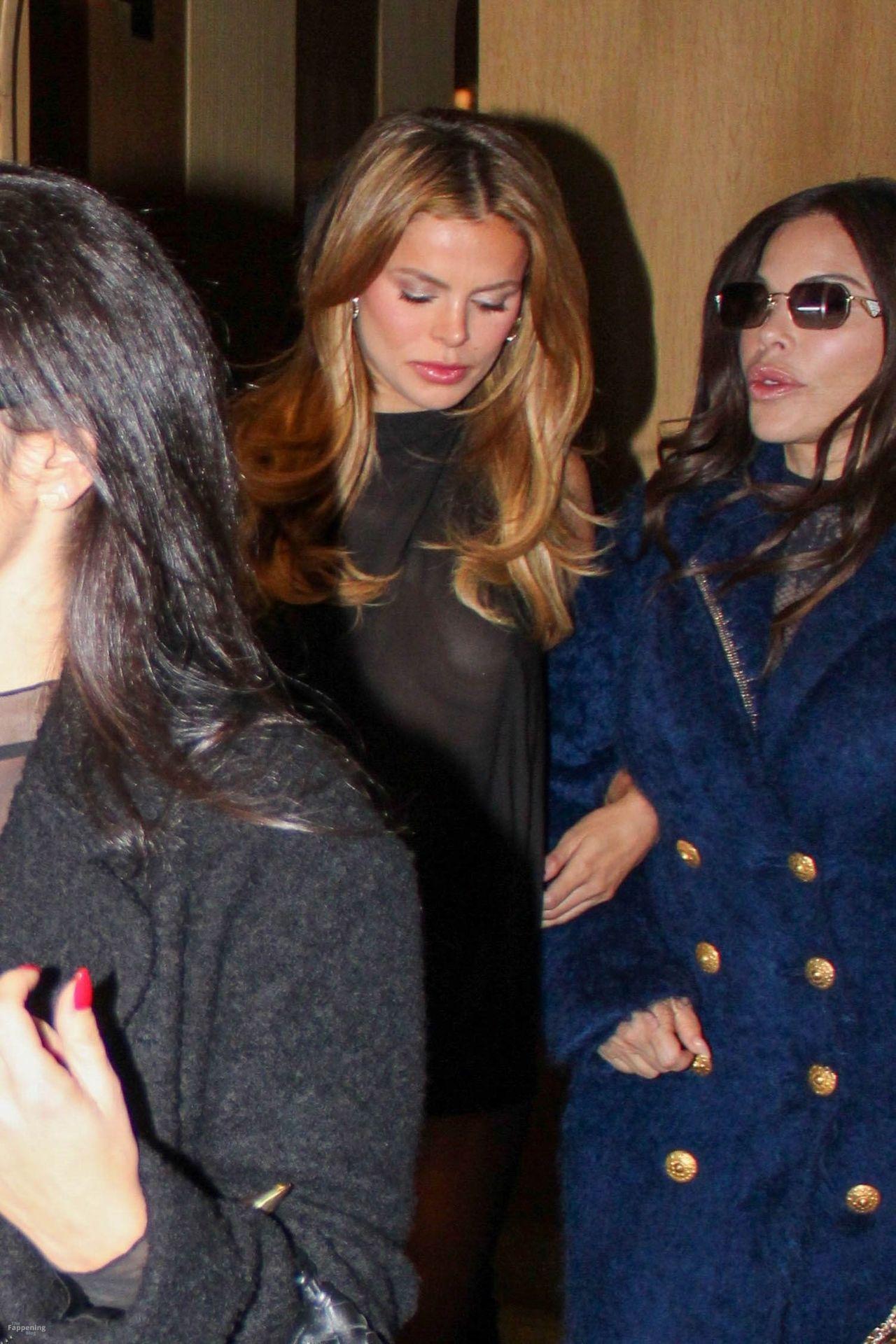 Model Brooks Nader sale a cenar junto con sus hermanas en Alba en West Hollywood. Brooks mostró una exhibición atrevida al salir con un top transparente que dejaba al descubierto sus pechos desnudos.