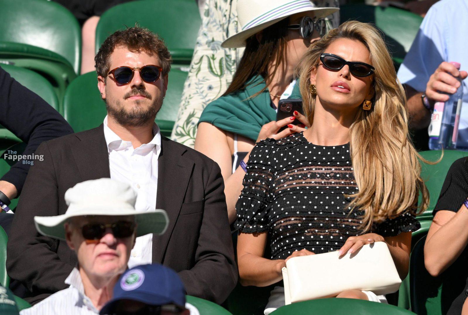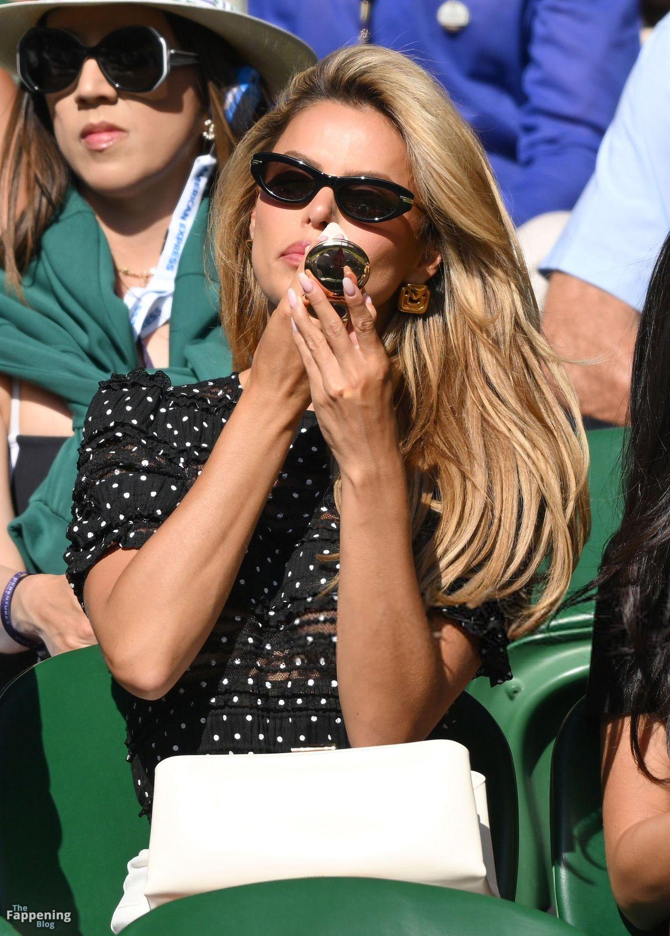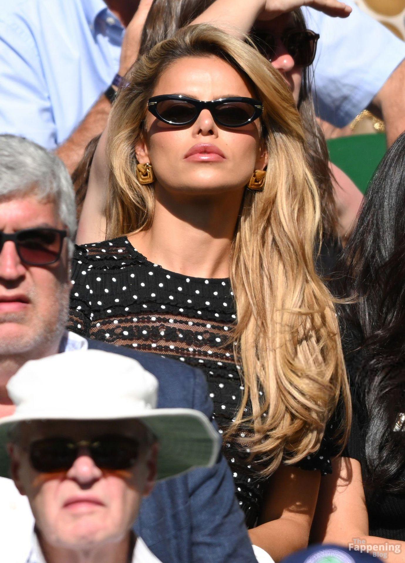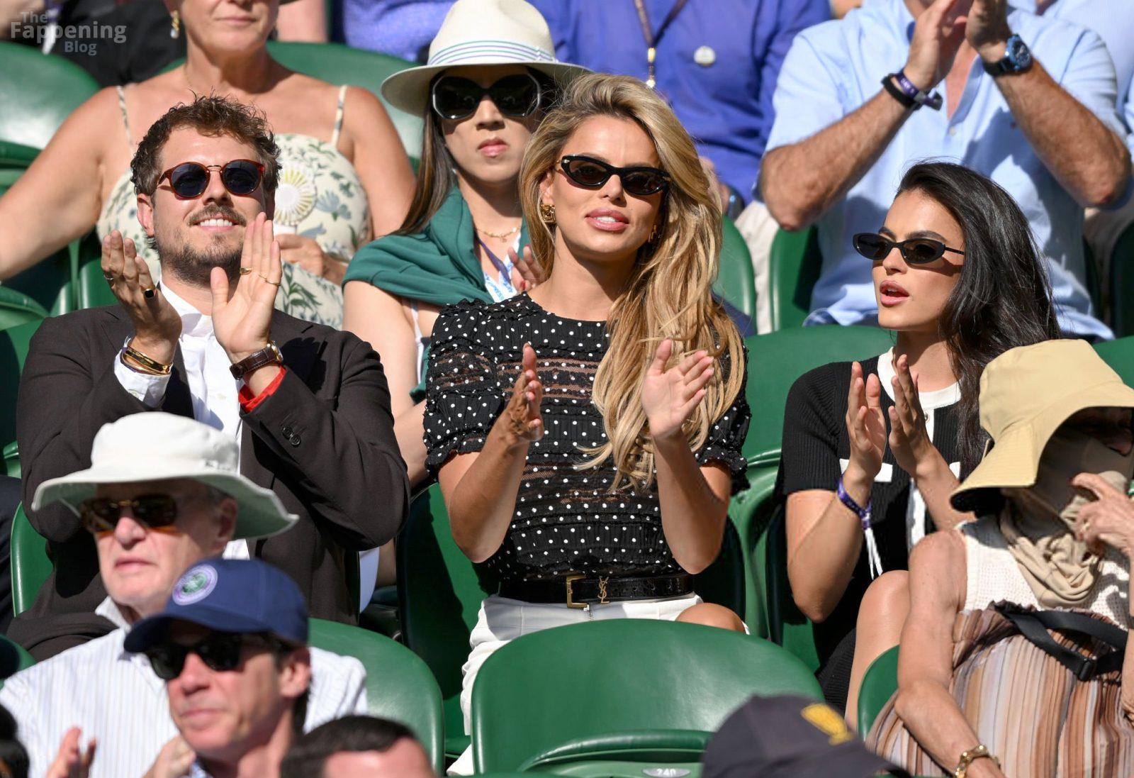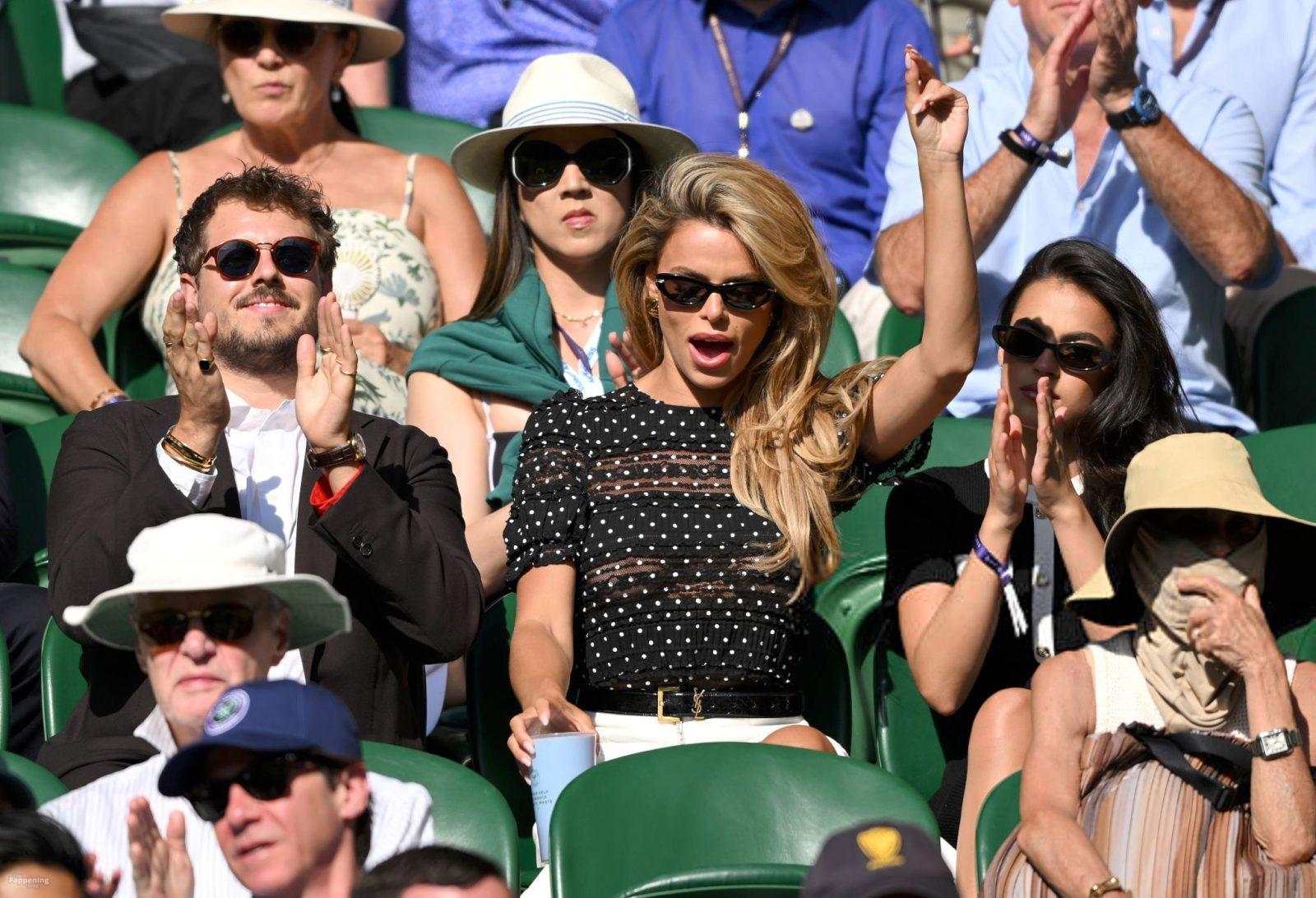 Model Brooks Nader hizo que el Día Cinco de Wimbledon fuera toda una escena, luciendo una blusa negra transparente con lunares sin nada debajo.