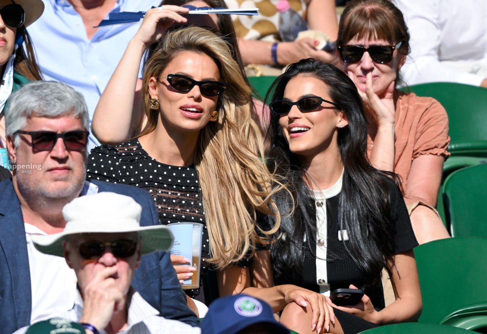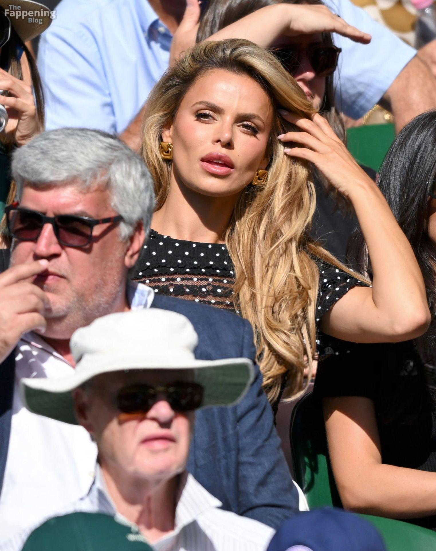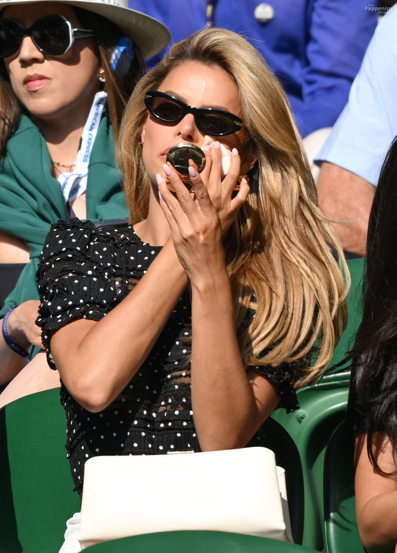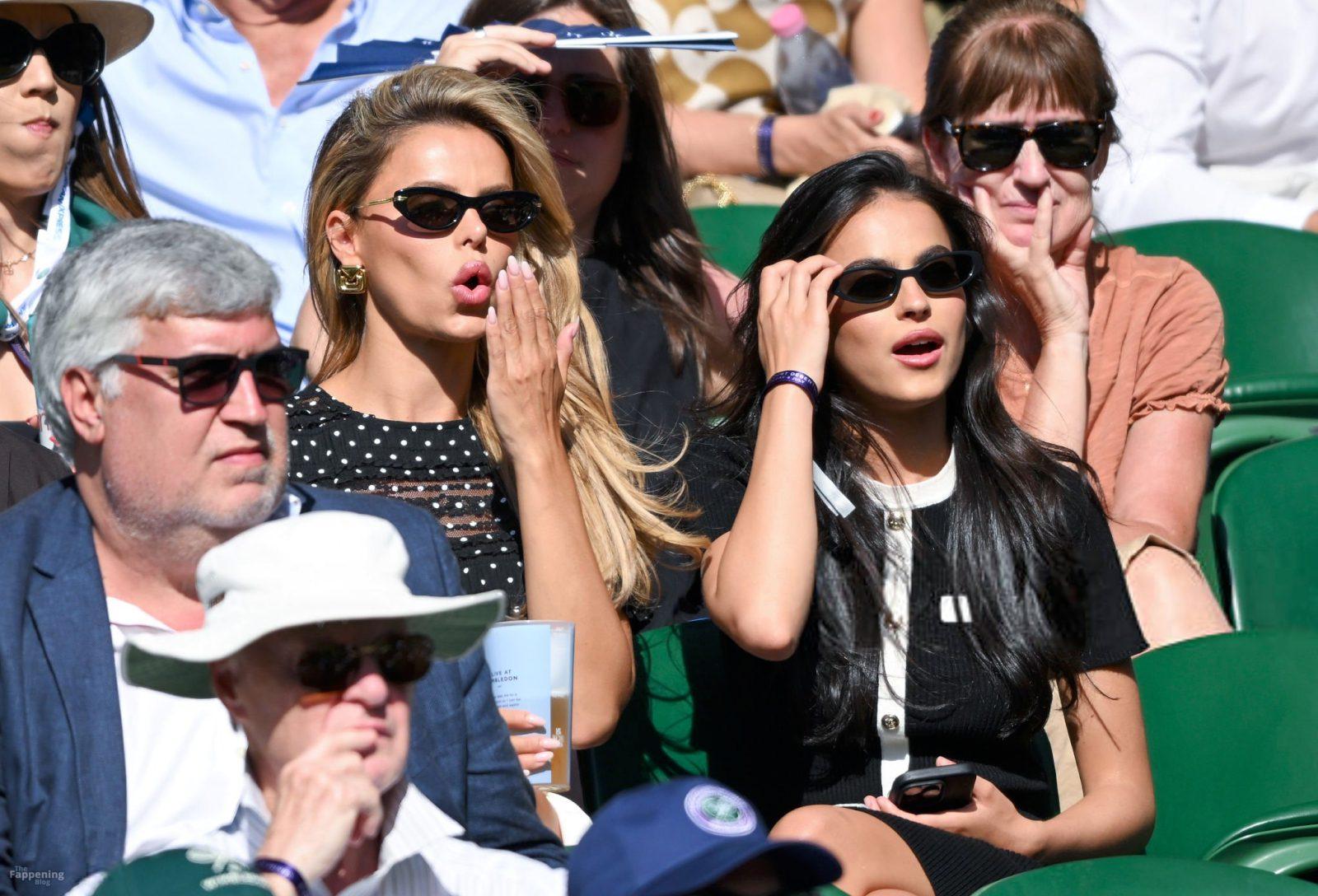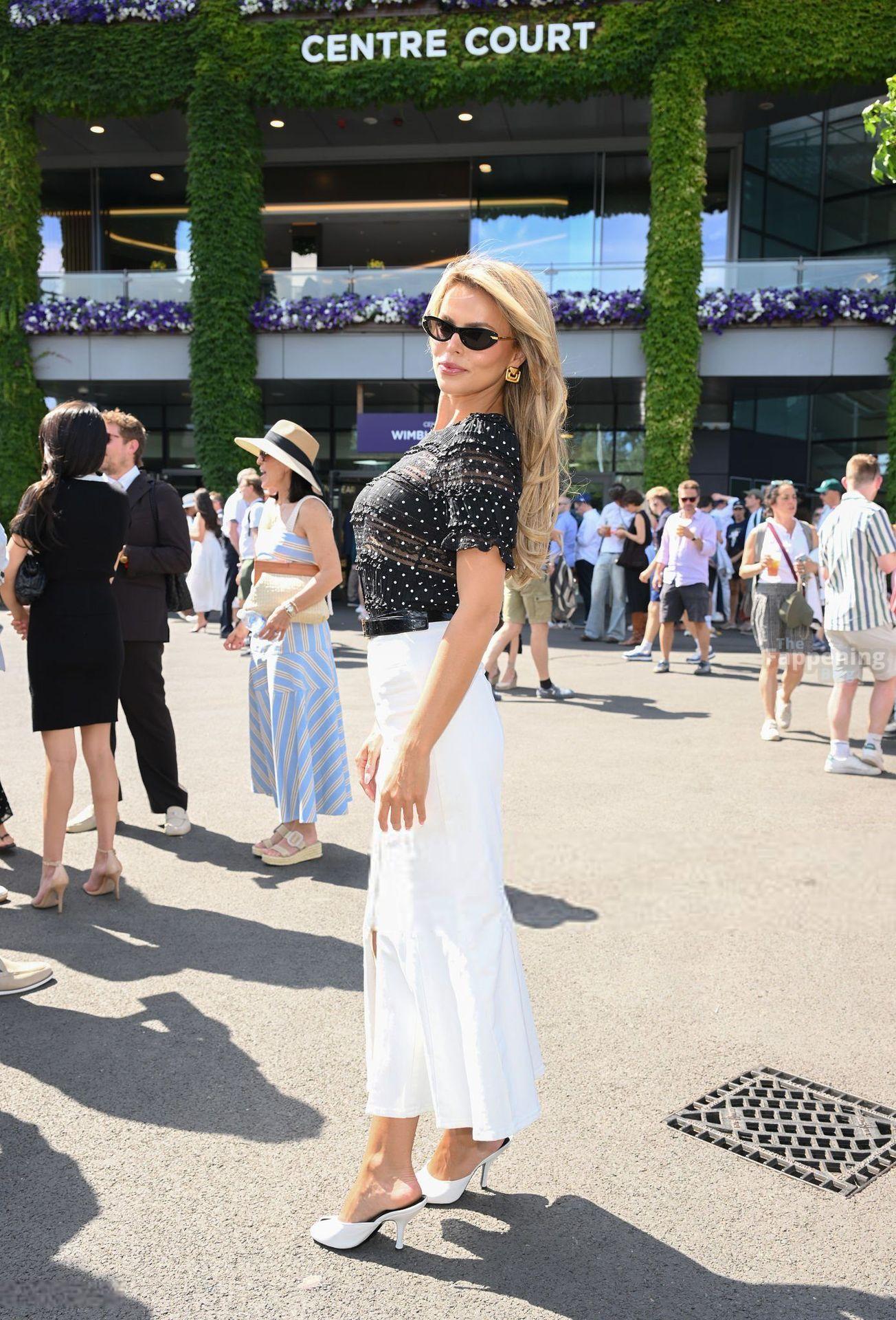 Model Brooks Nader hizo que el Día Cinco de Wimbledon fuera toda una escena, luciendo una blusa negra transparente con lunares sin nada debajo.