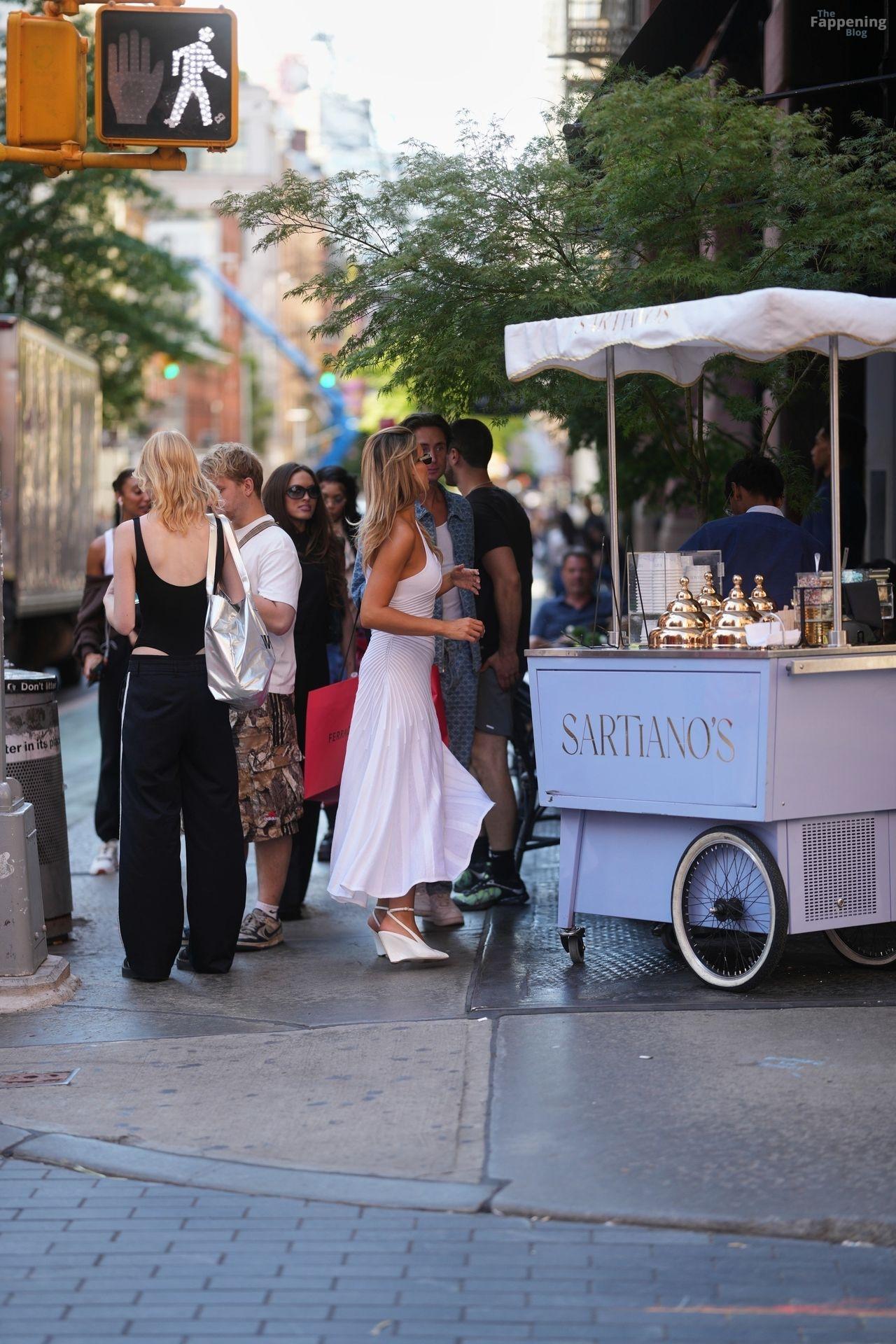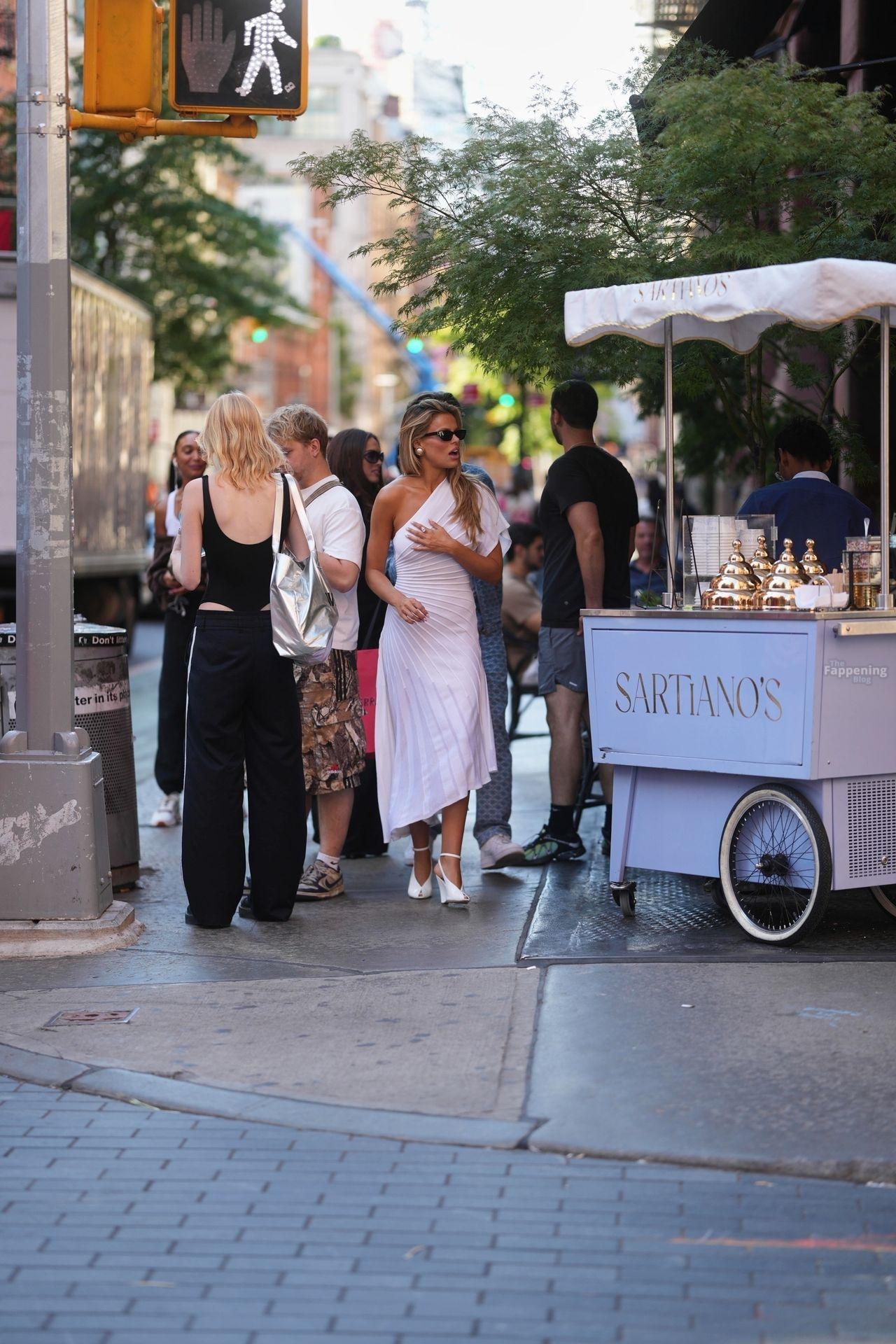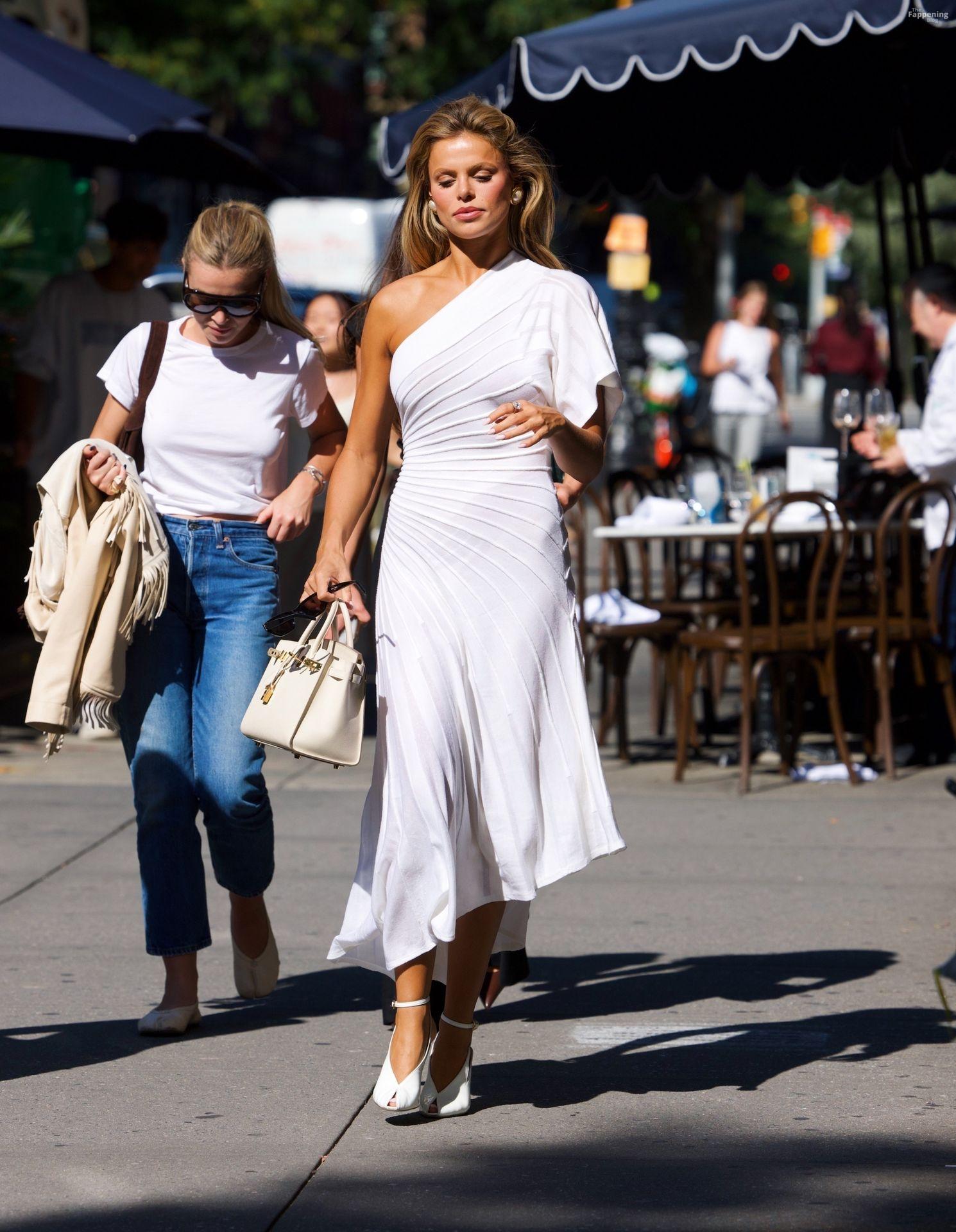 Brooks Nader se ve en NYC, luciendo su figura sexy con un vestido blanco de un solo hombro junto a sus hermanas.