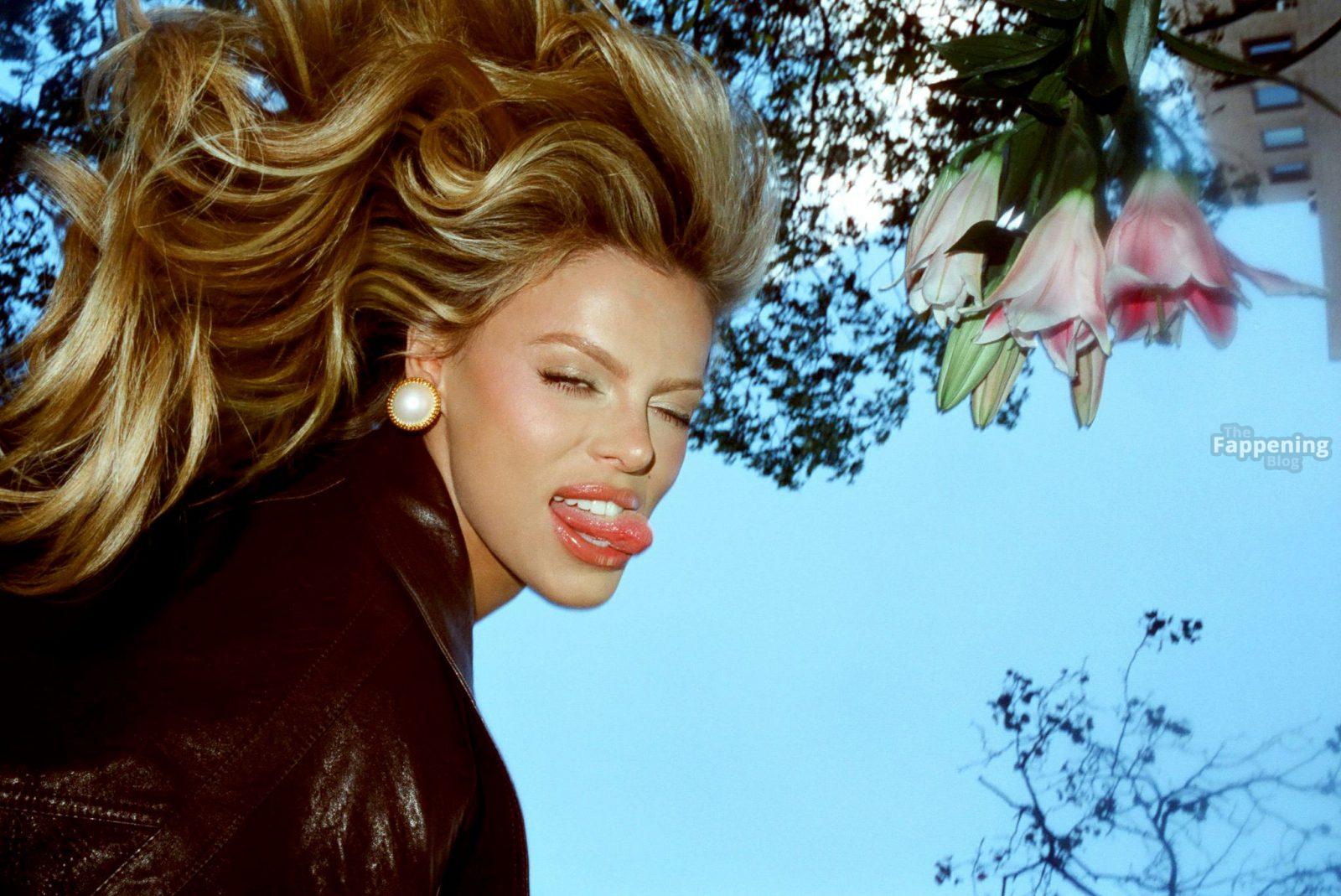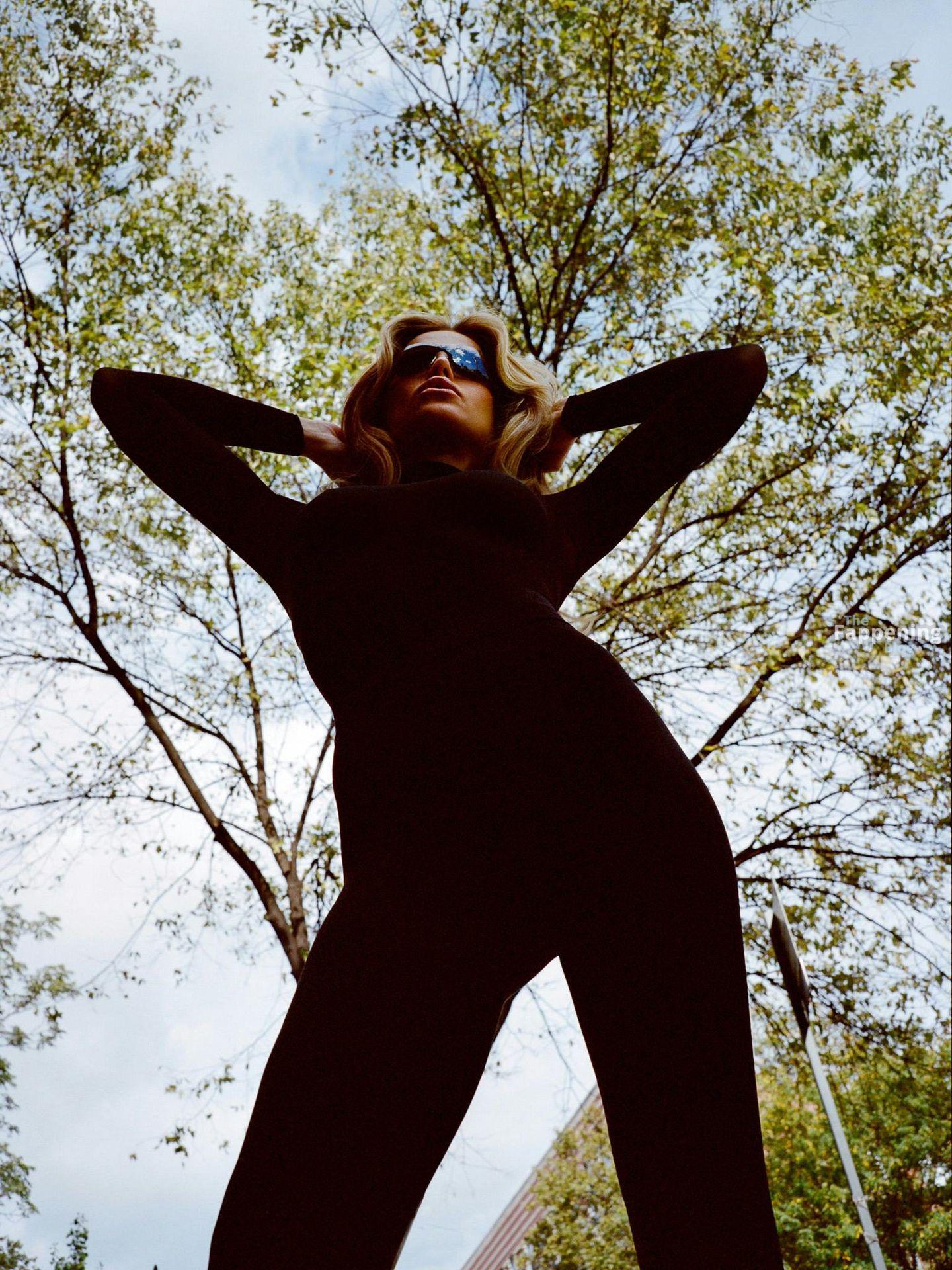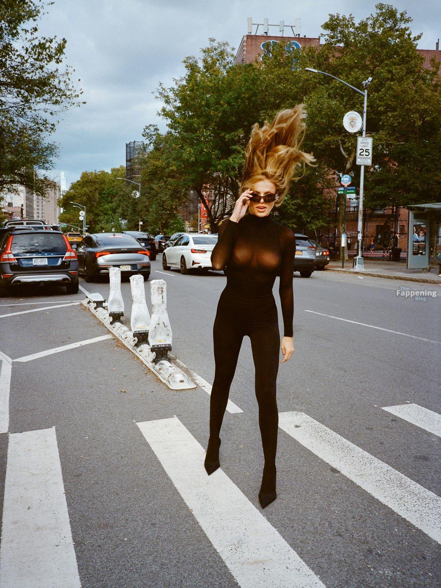 Brooks Nader apareció para la sesión de fotos de la edición de noviembre de 2025 de la revista Bustle en NYC, luciendo un body de malla negra ajustado al cuerpo.