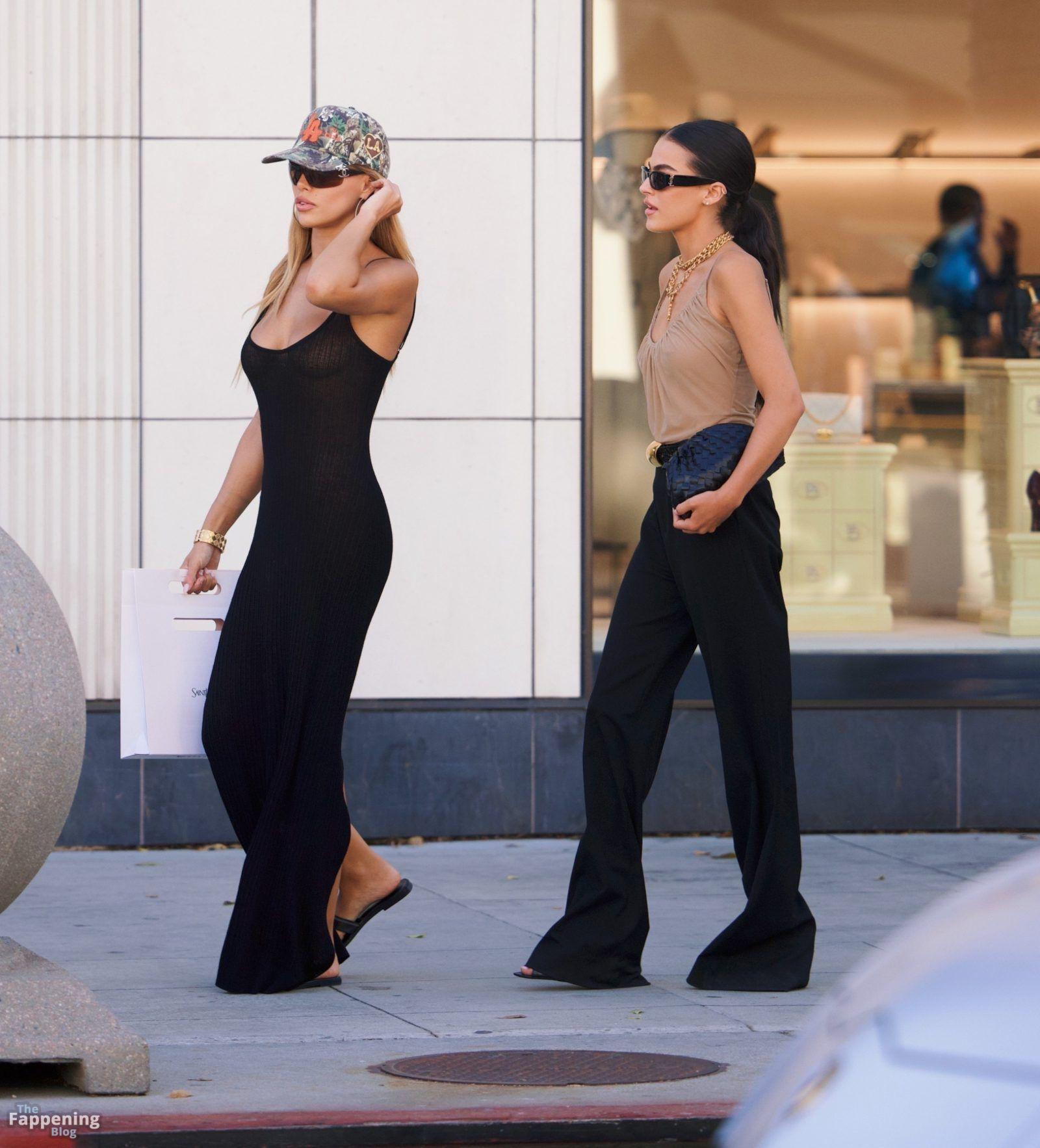 Model Brooks Nader camina sin sostén, vistiendo un vestido transparente en Beverly Hills.