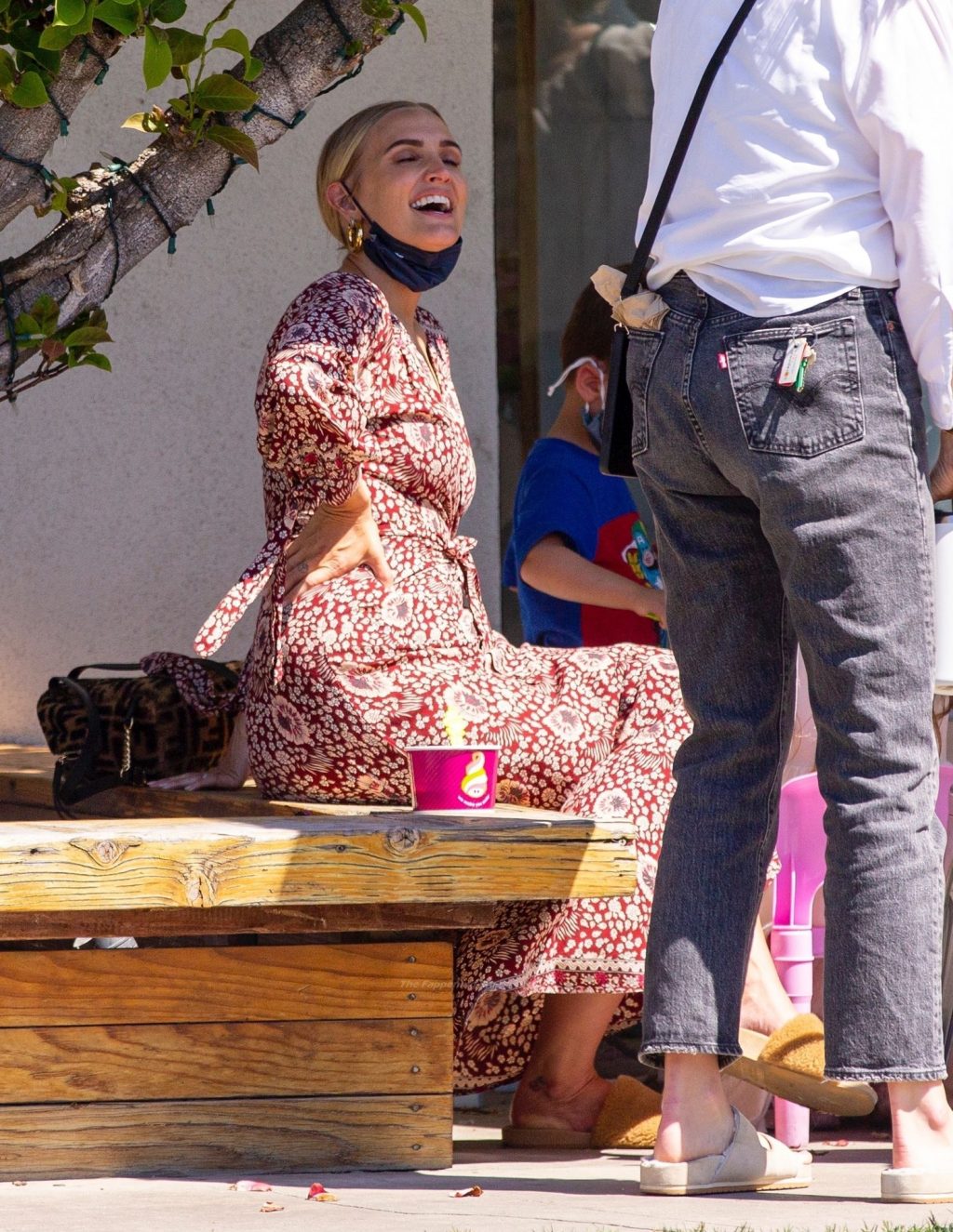 Ashlee Simpson consiente a su hija Jagger con un poco de yogurt congelado de Menchie’s en Studio City, 19/04/2021.