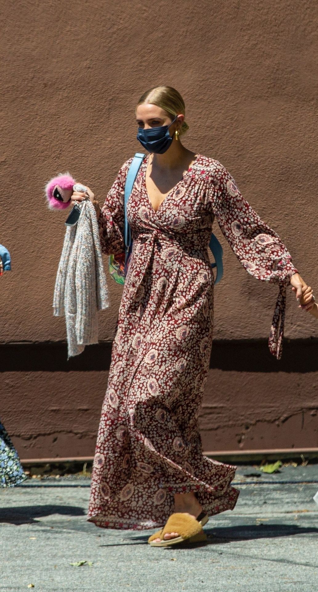Ese es un hermoso cubrecama que ella está usando.