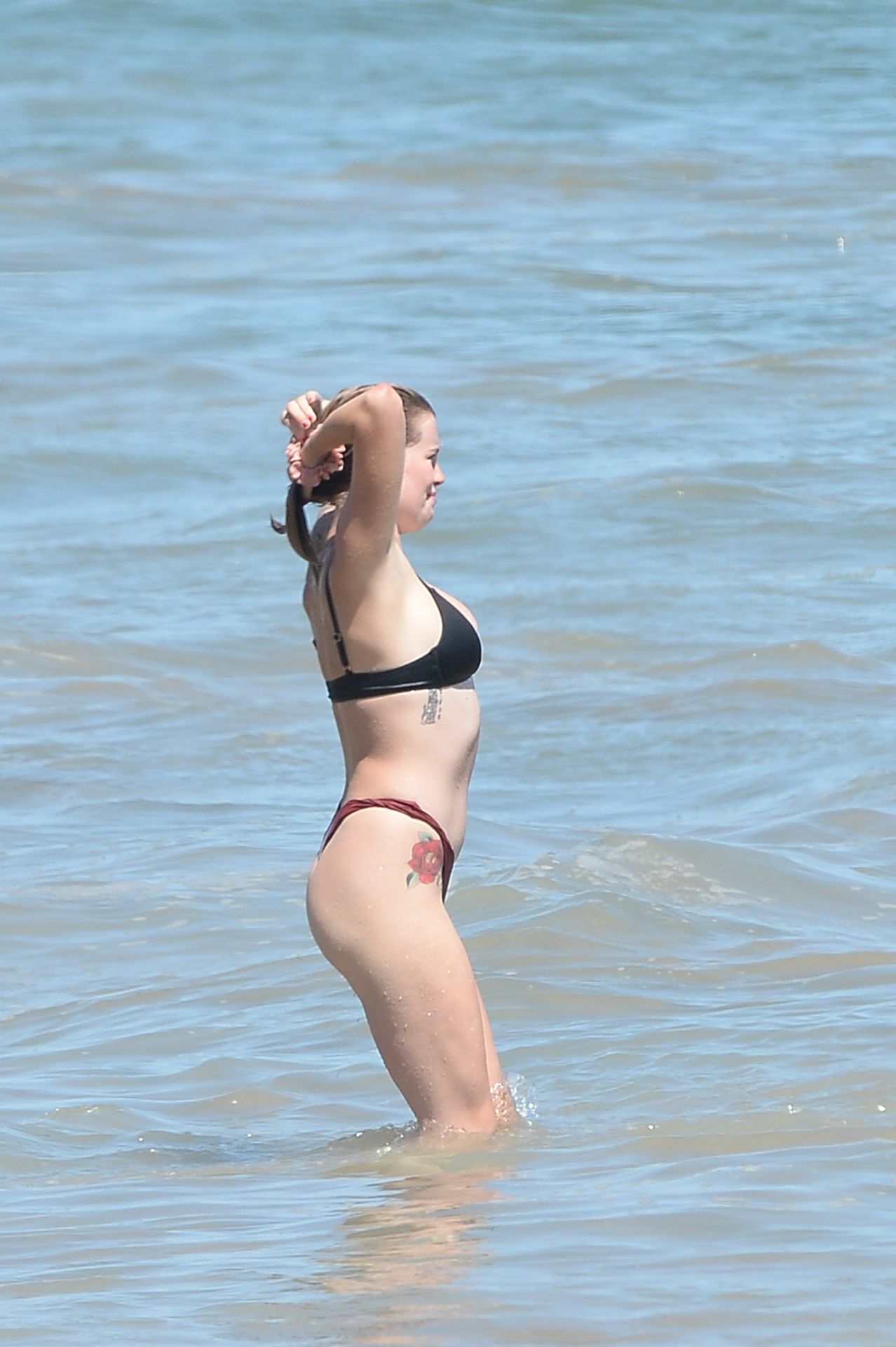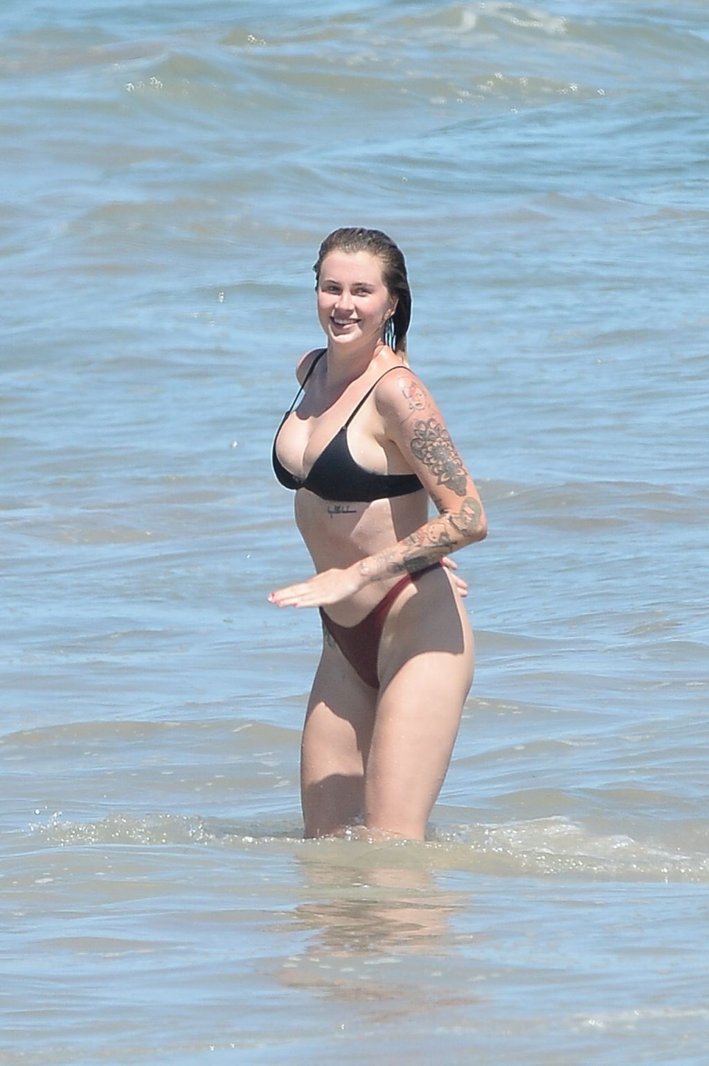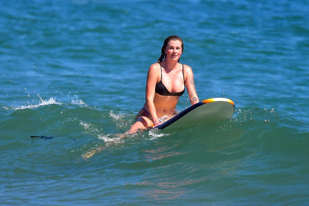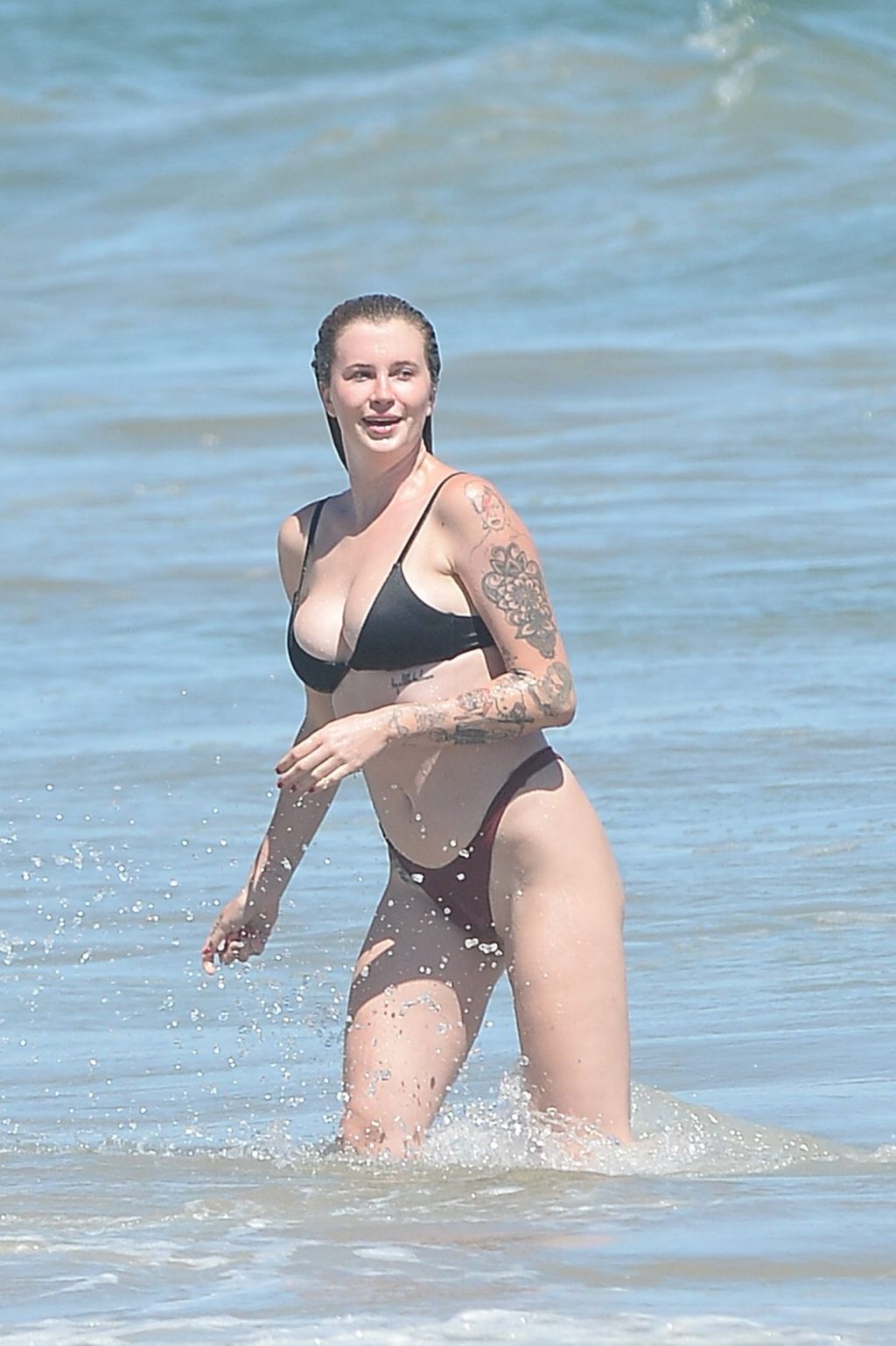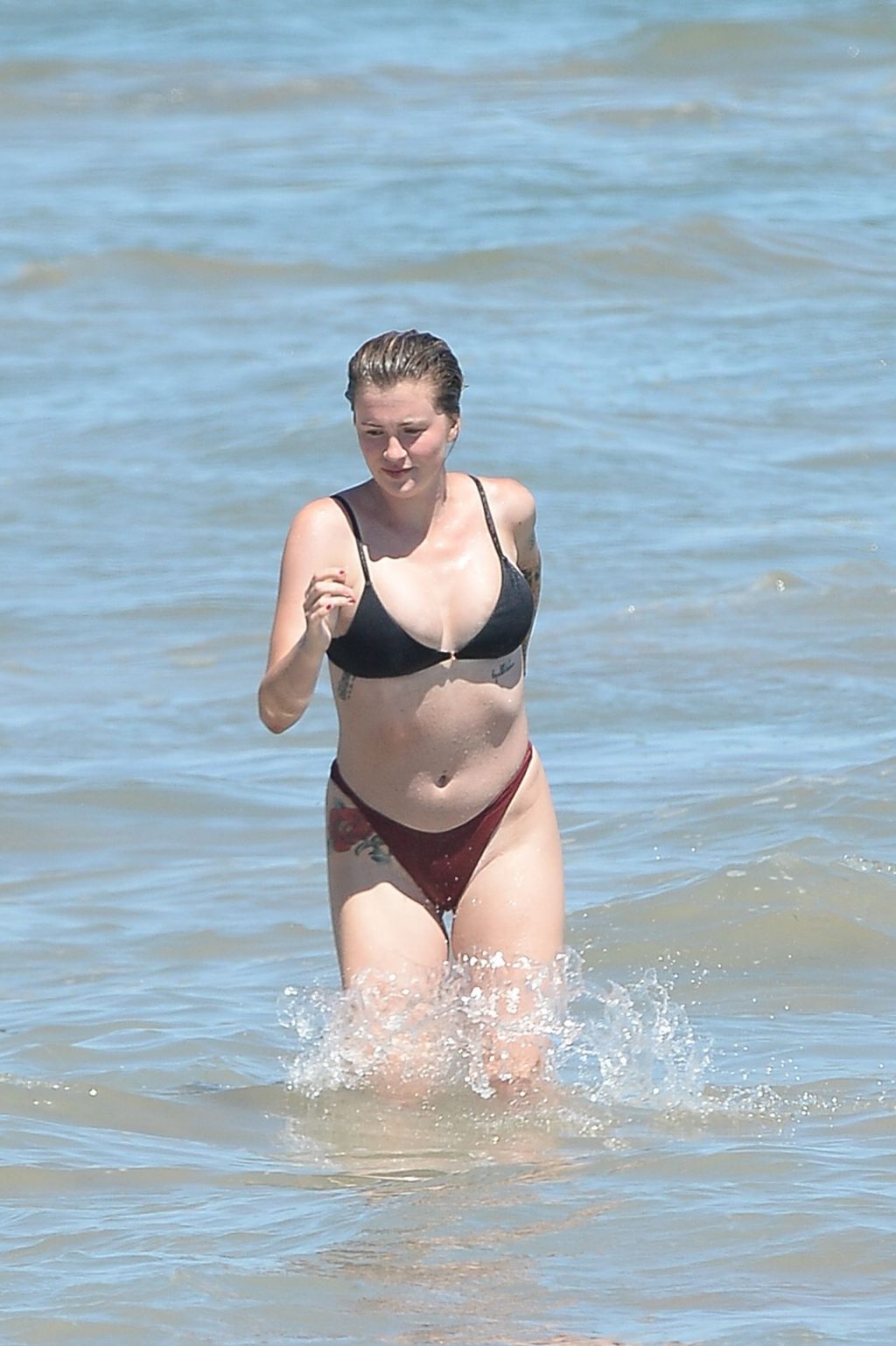 Ireland Baldwin es fotografiada disfrutando de un día en la playa en Malibu con amigos, 17/07/2020. La modelo de 24 años se metió al océano para nadar con un bikini negro de dos piezas.