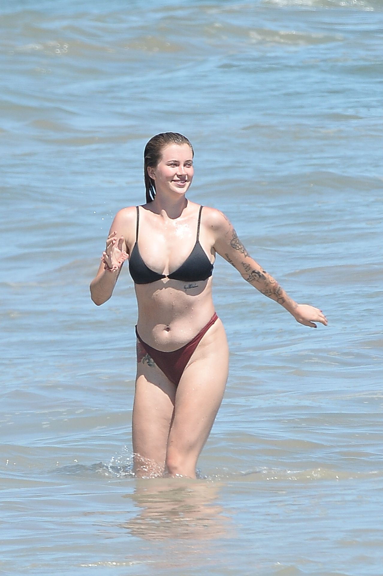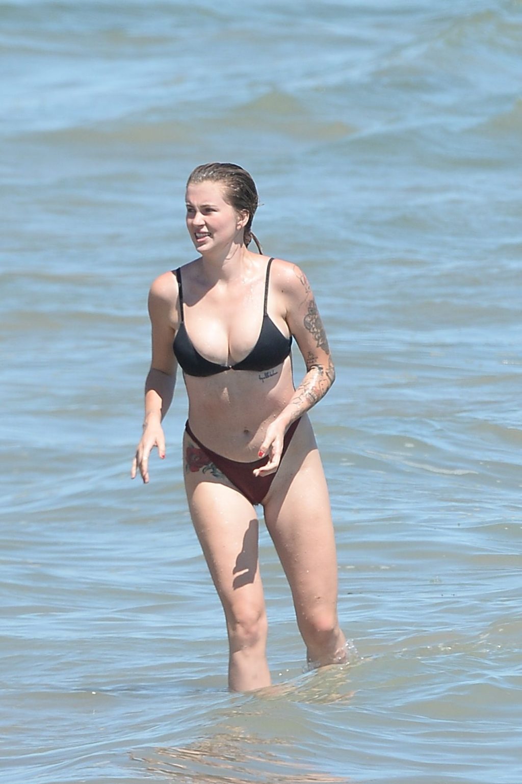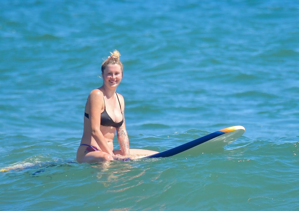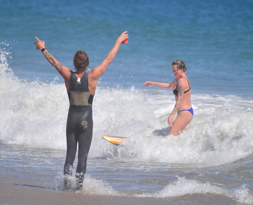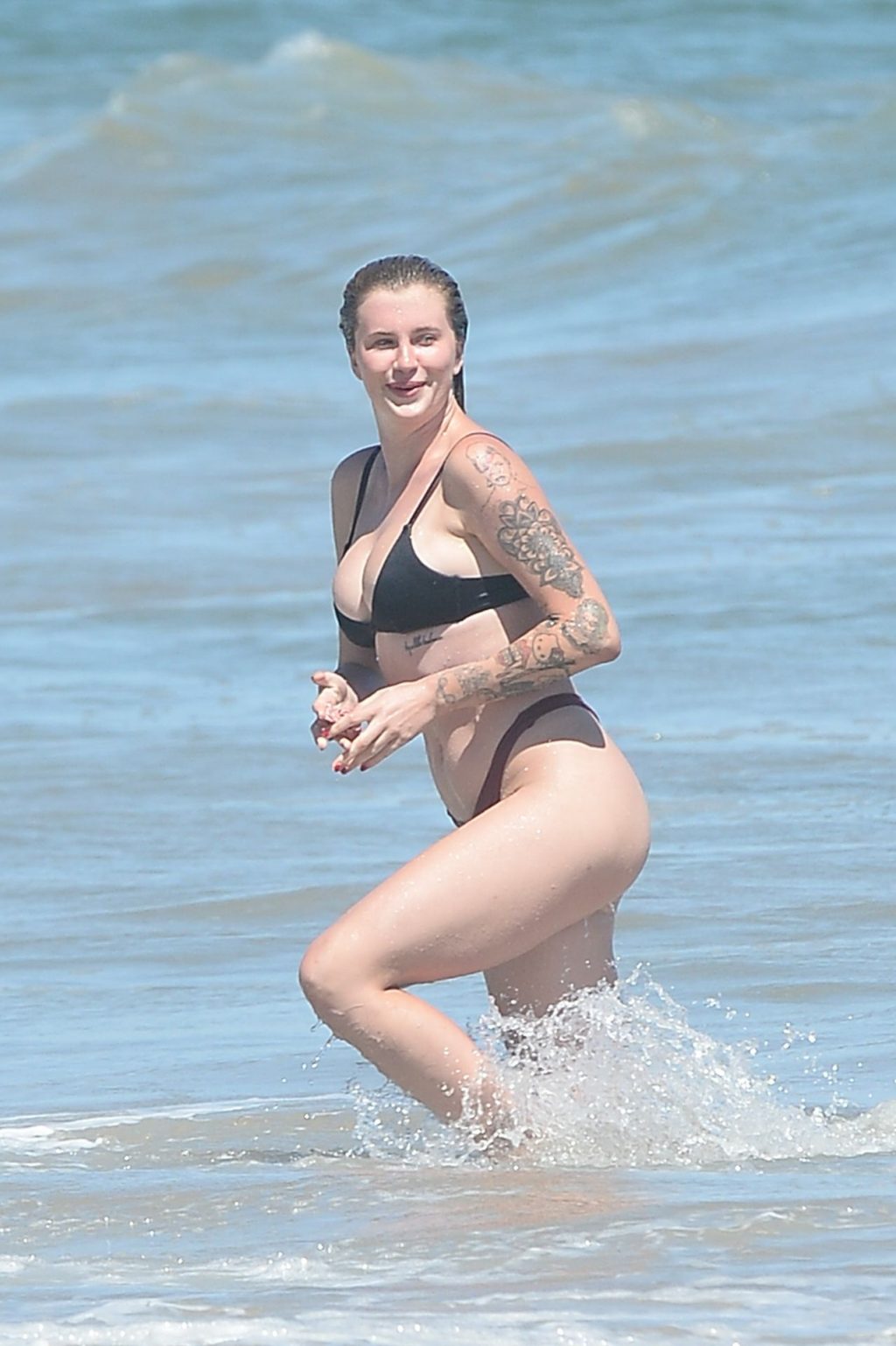 Ireland Baldwin es fotografiada disfrutando de un día en la playa en Malibu con amigos, 17/07/2020. La modelo de 24 años se metió al océano para nadar con un bikini negro de dos piezas.