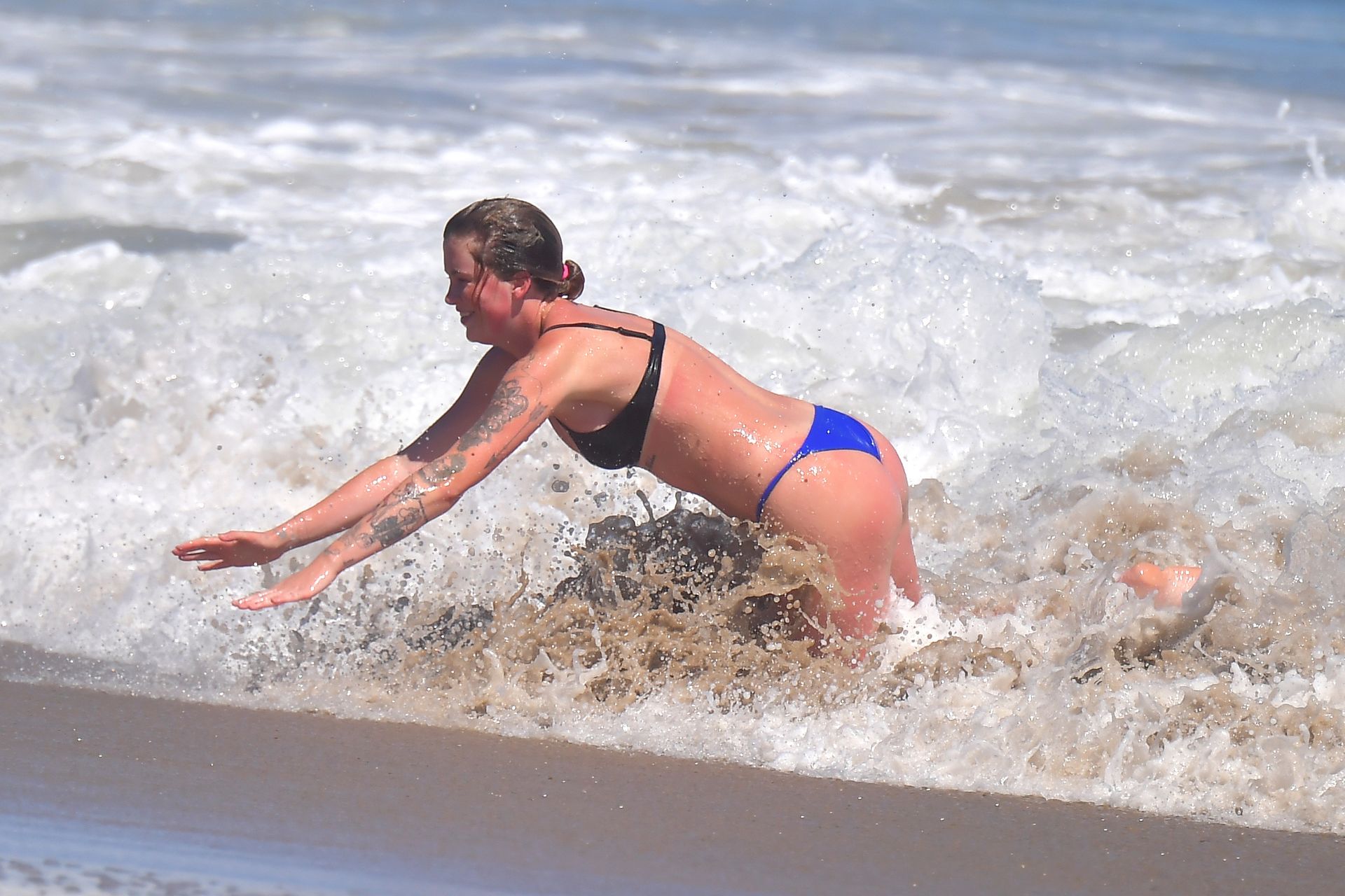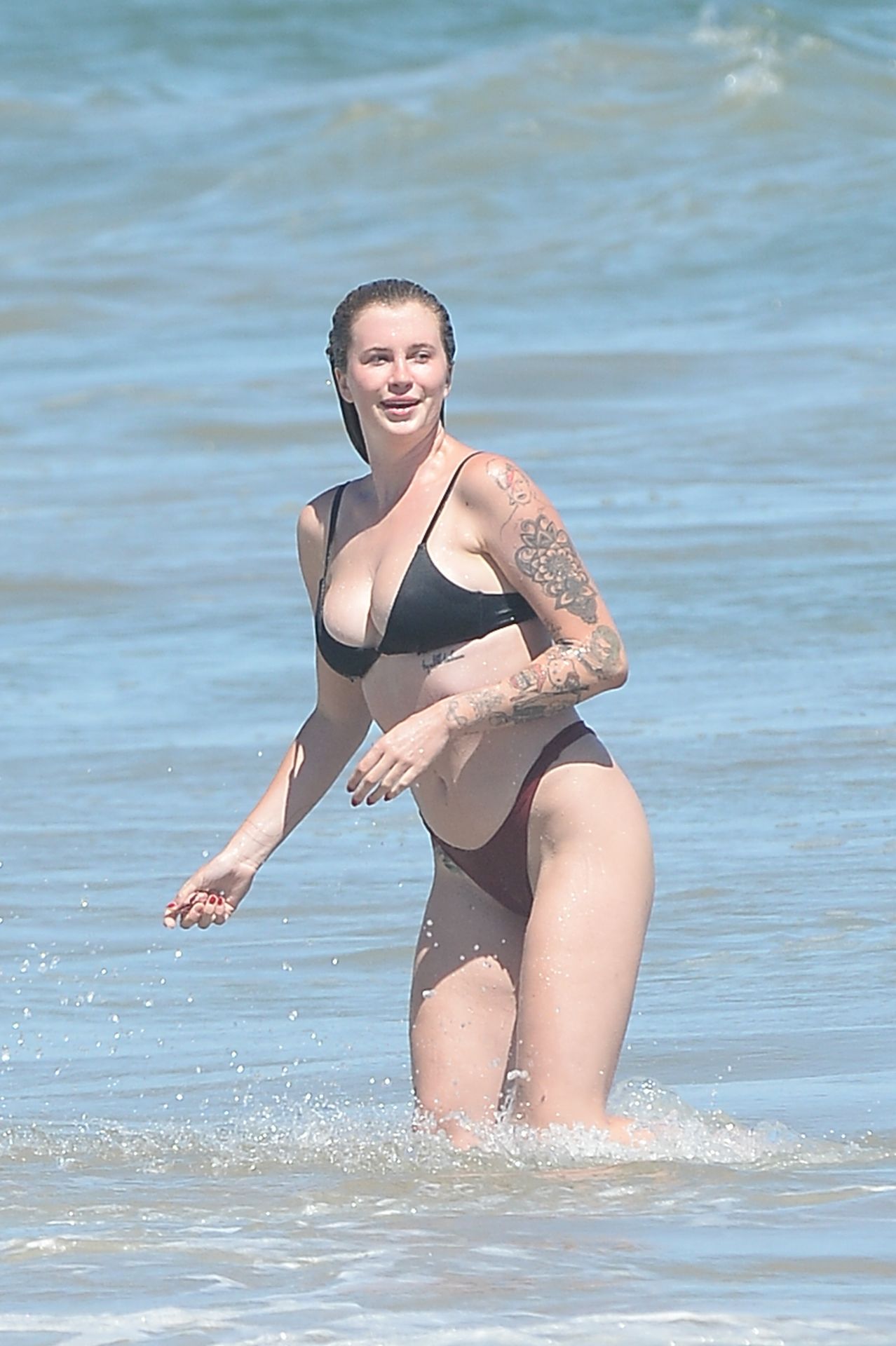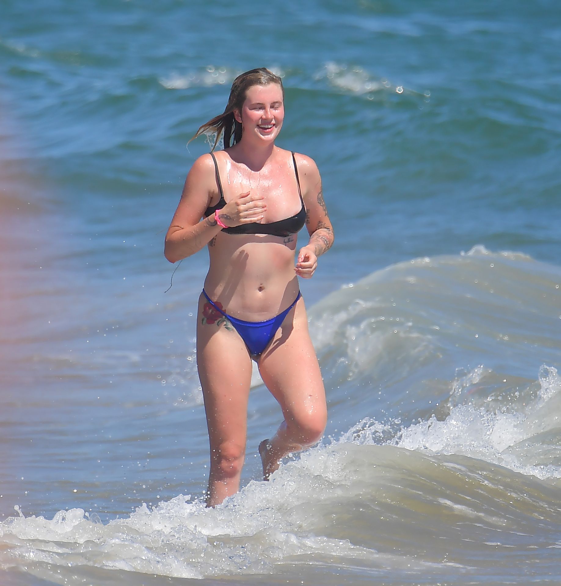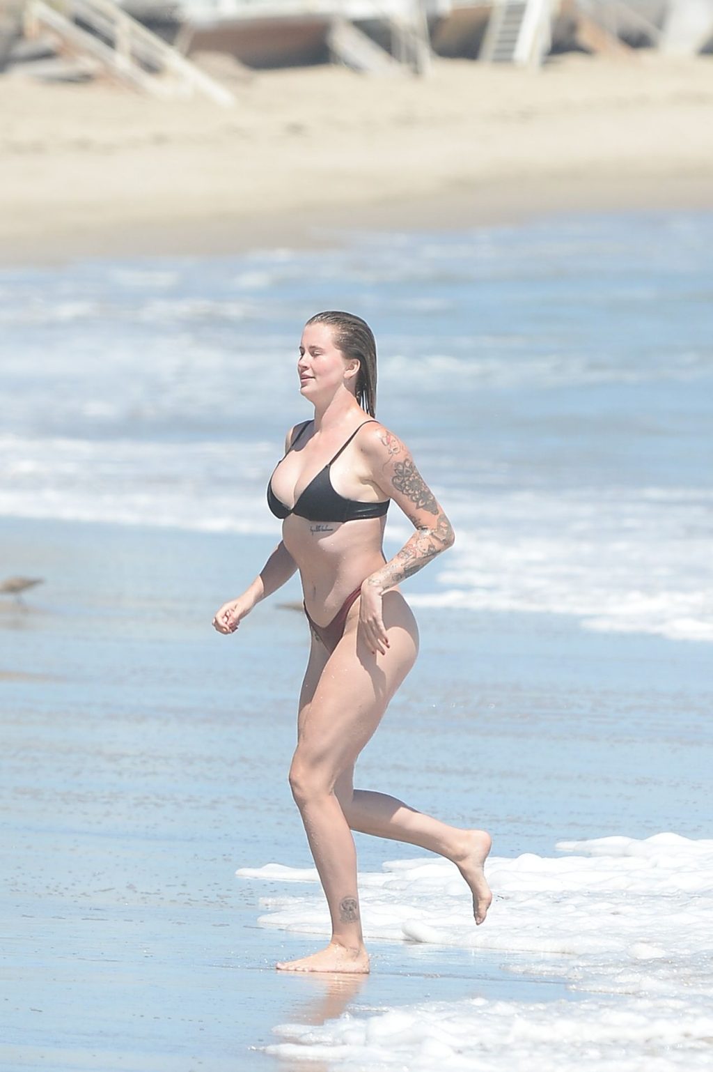 Ireland Baldwin es fotografiada disfrutando de un día en la playa en Malibu con amigos, 17/07/2020. La modelo de 24 años se metió al océano para nadar con un bikini negro de dos piezas.