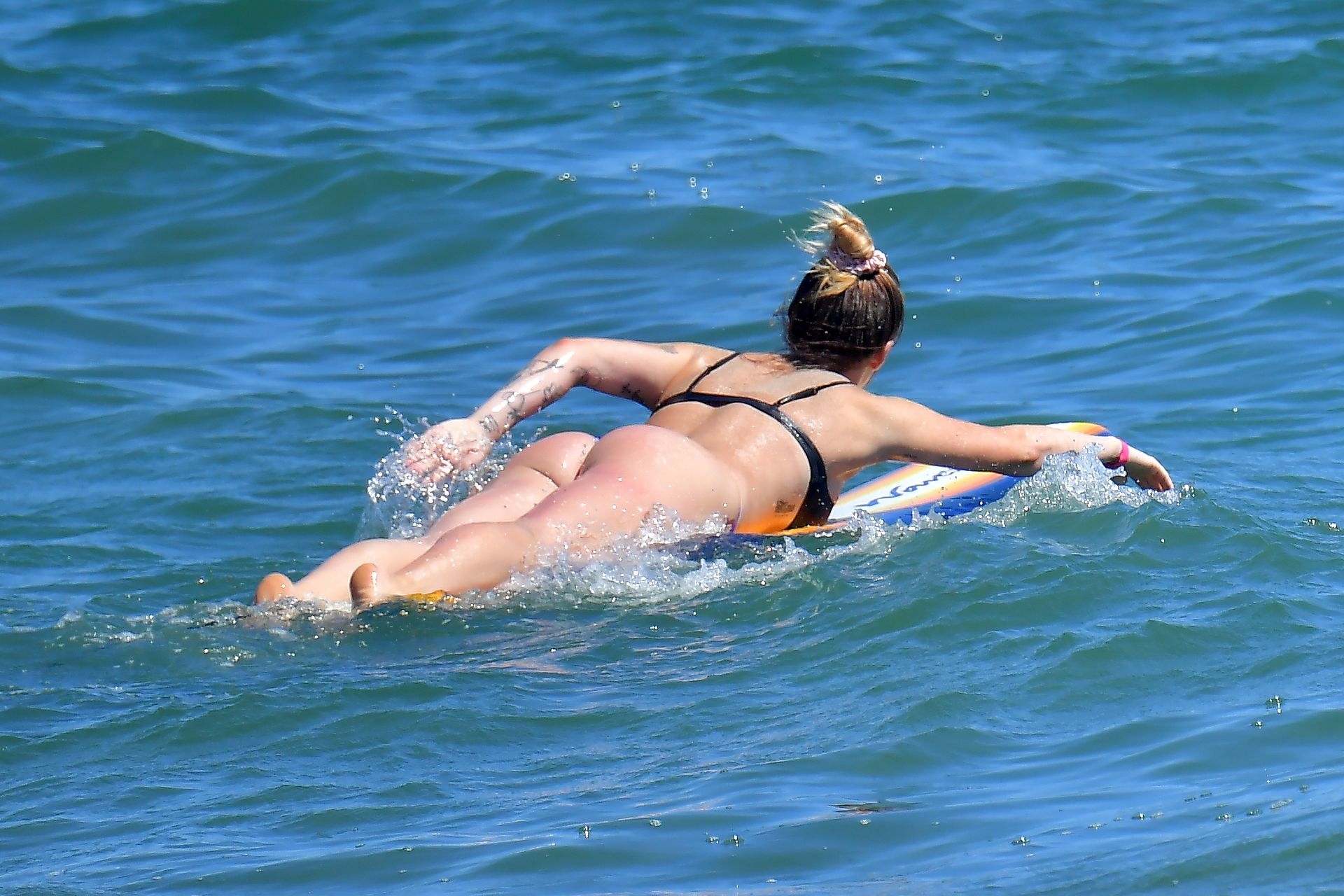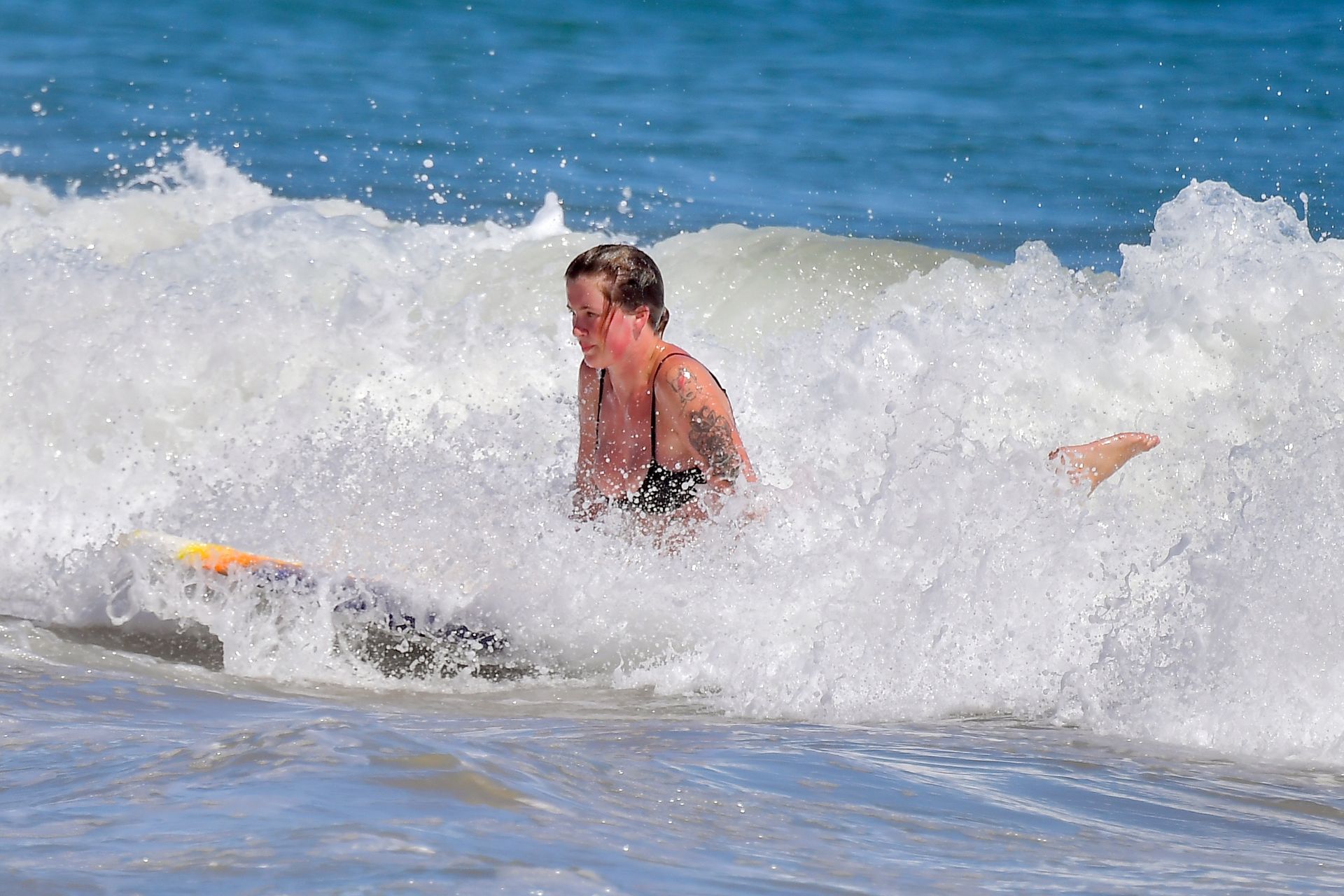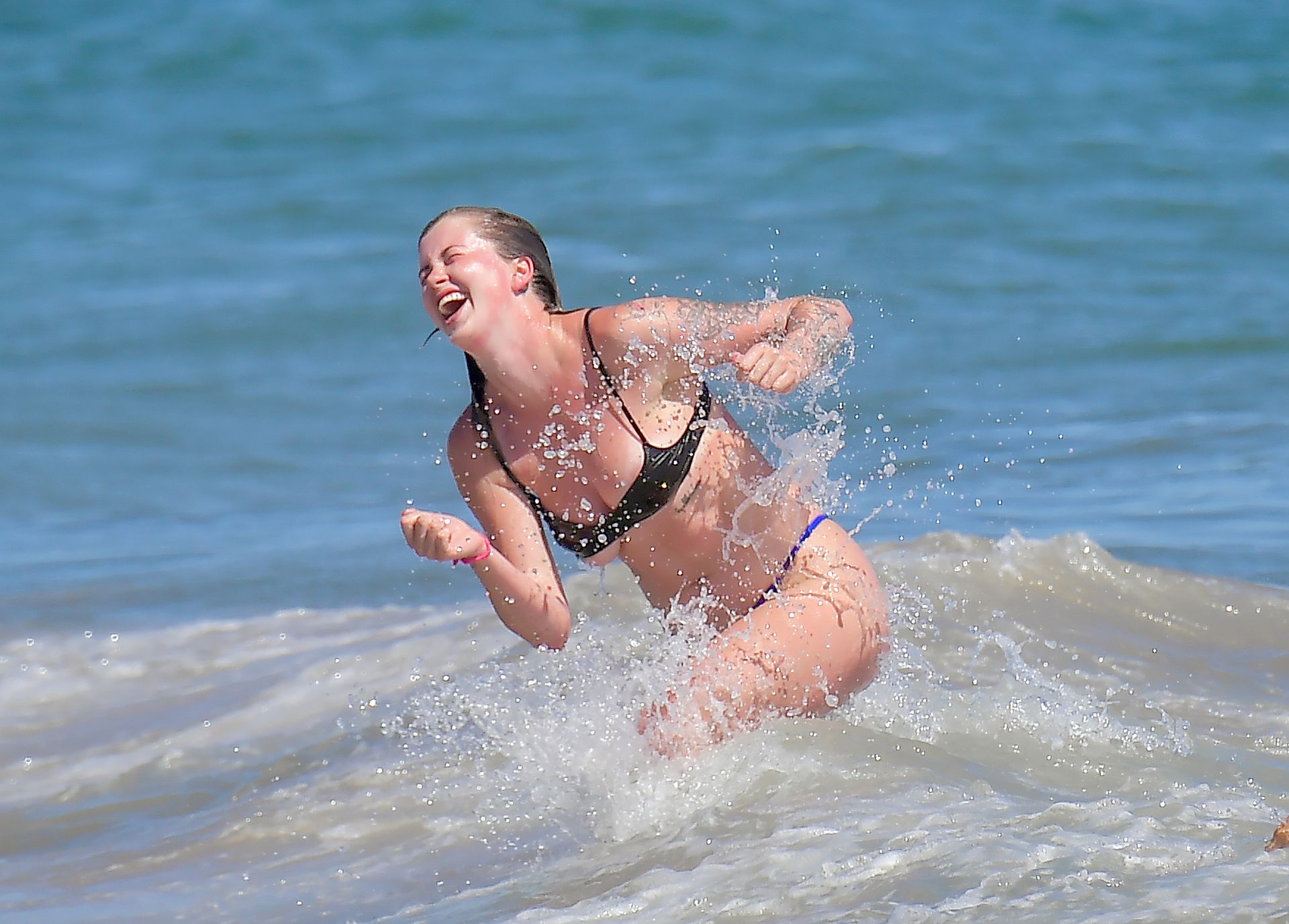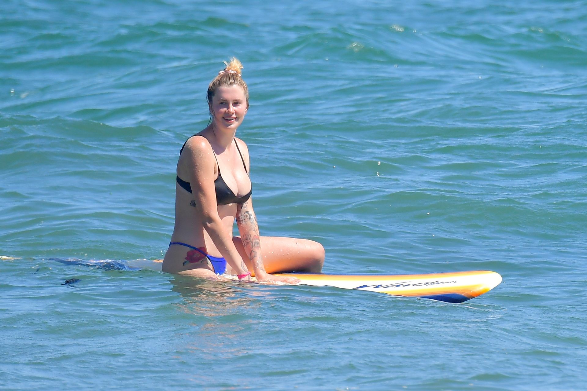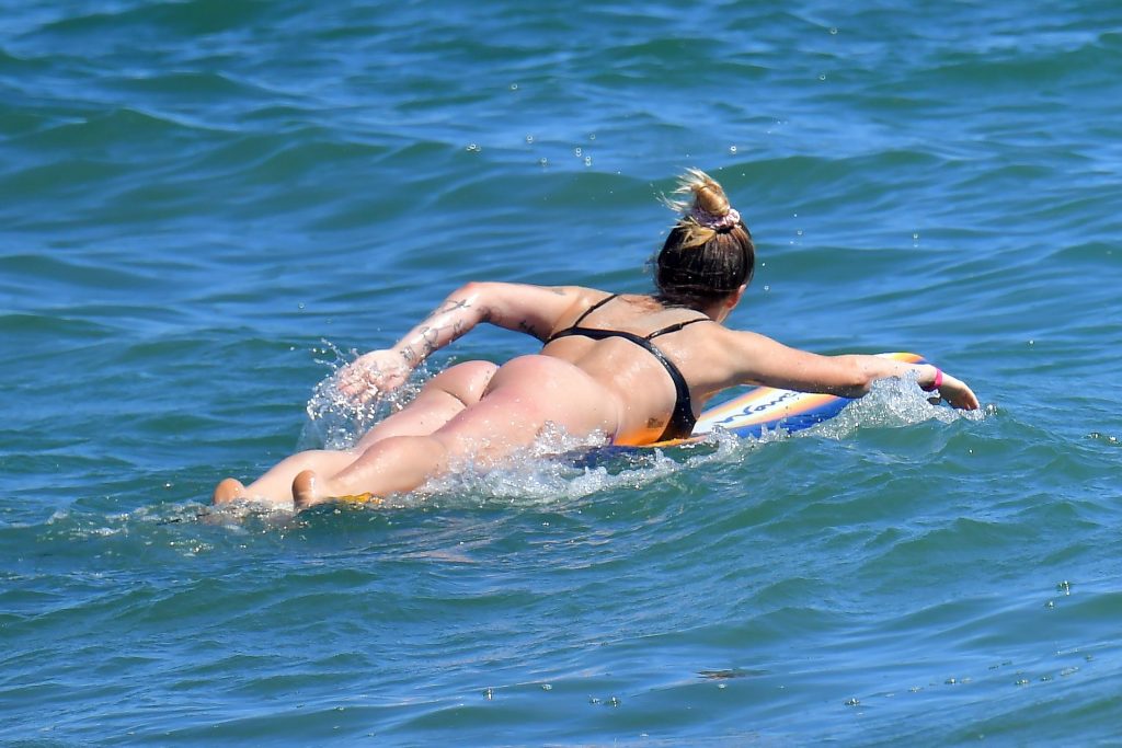 Ireland Baldwin es fotografiada disfrutando de un día en la playa en Malibu con amigos, 17/07/2020. La modelo de 24 años se metió al océano para nadar con un bikini negro de dos piezas.
