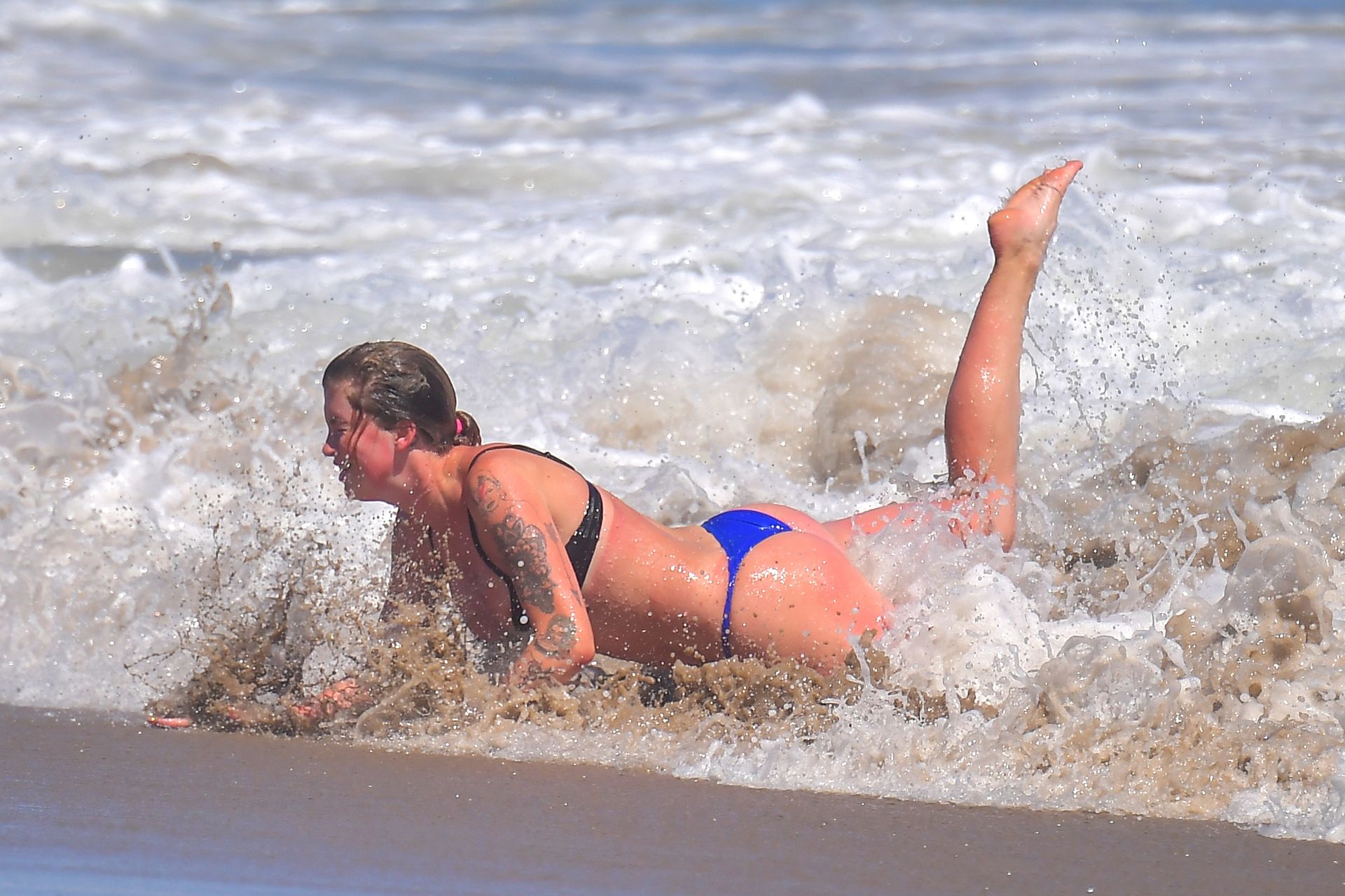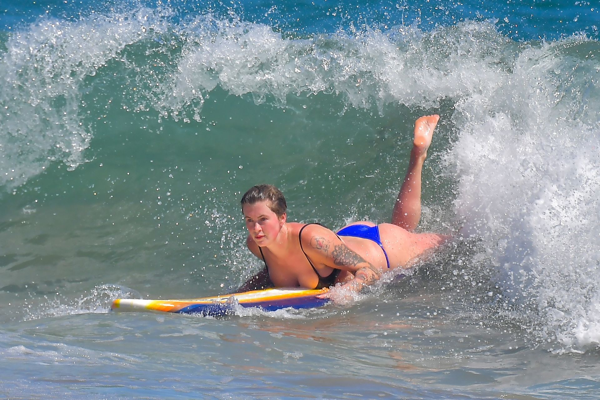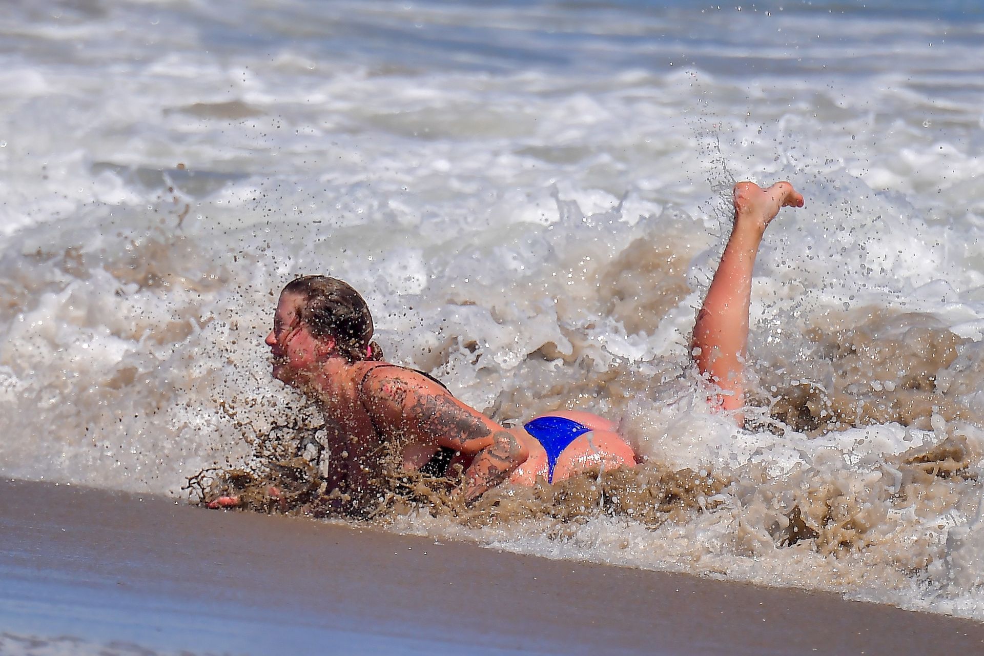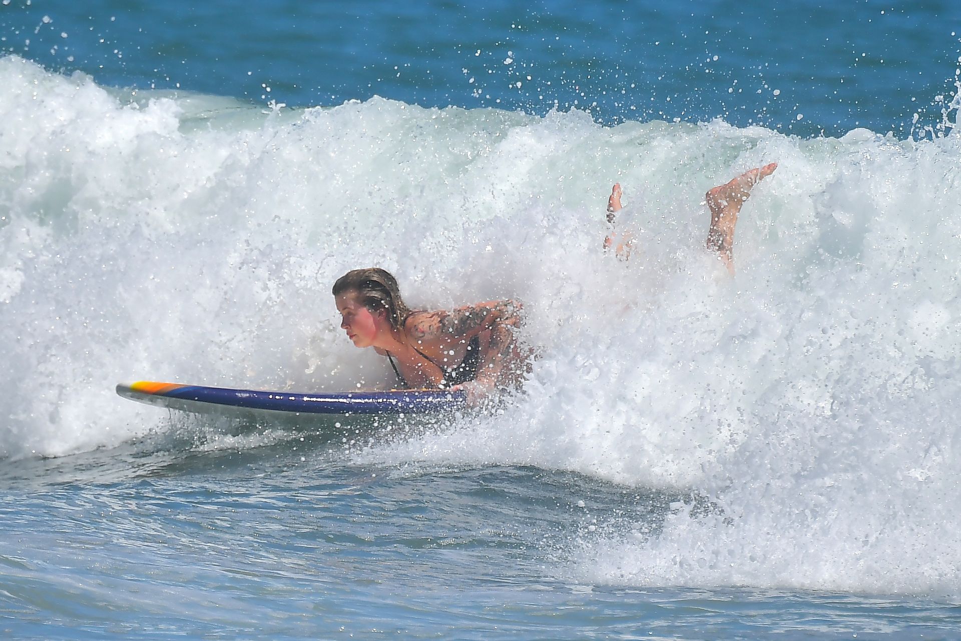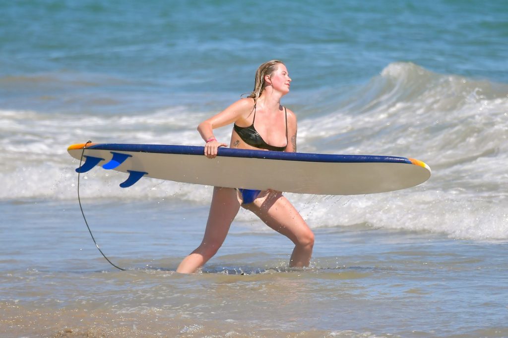 Ireland Baldwin es fotografiada disfrutando de un día en la playa en Malibu con amigos, 17/07/2020. La modelo de 24 años se metió al océano para nadar con un bikini negro de dos piezas.