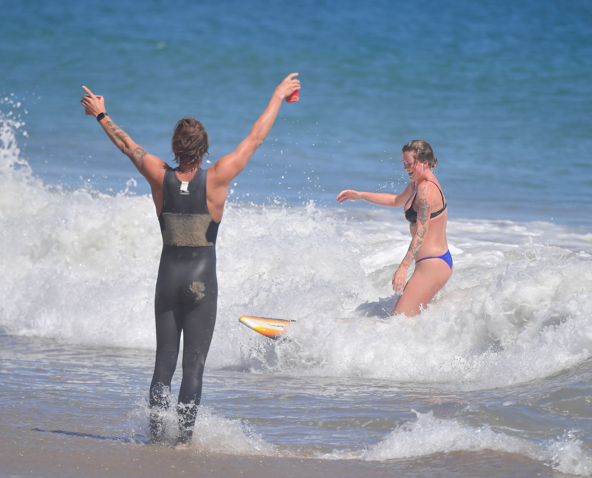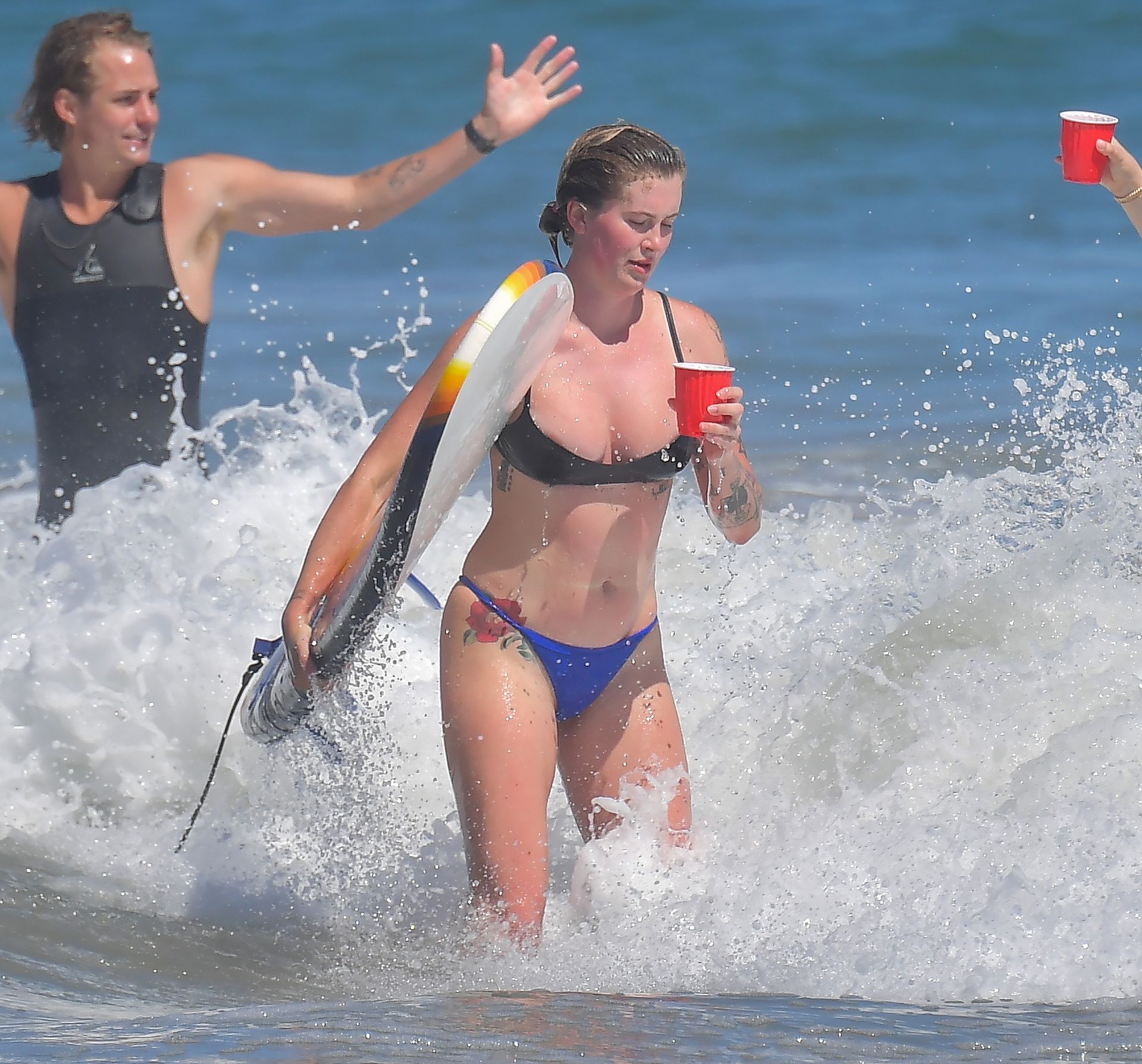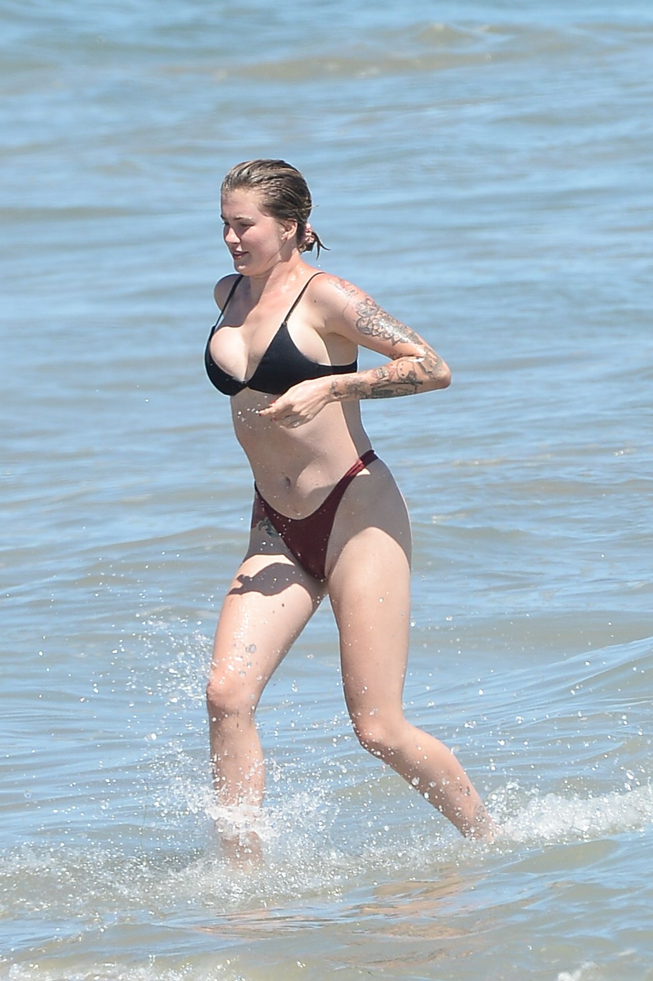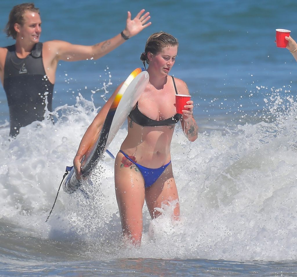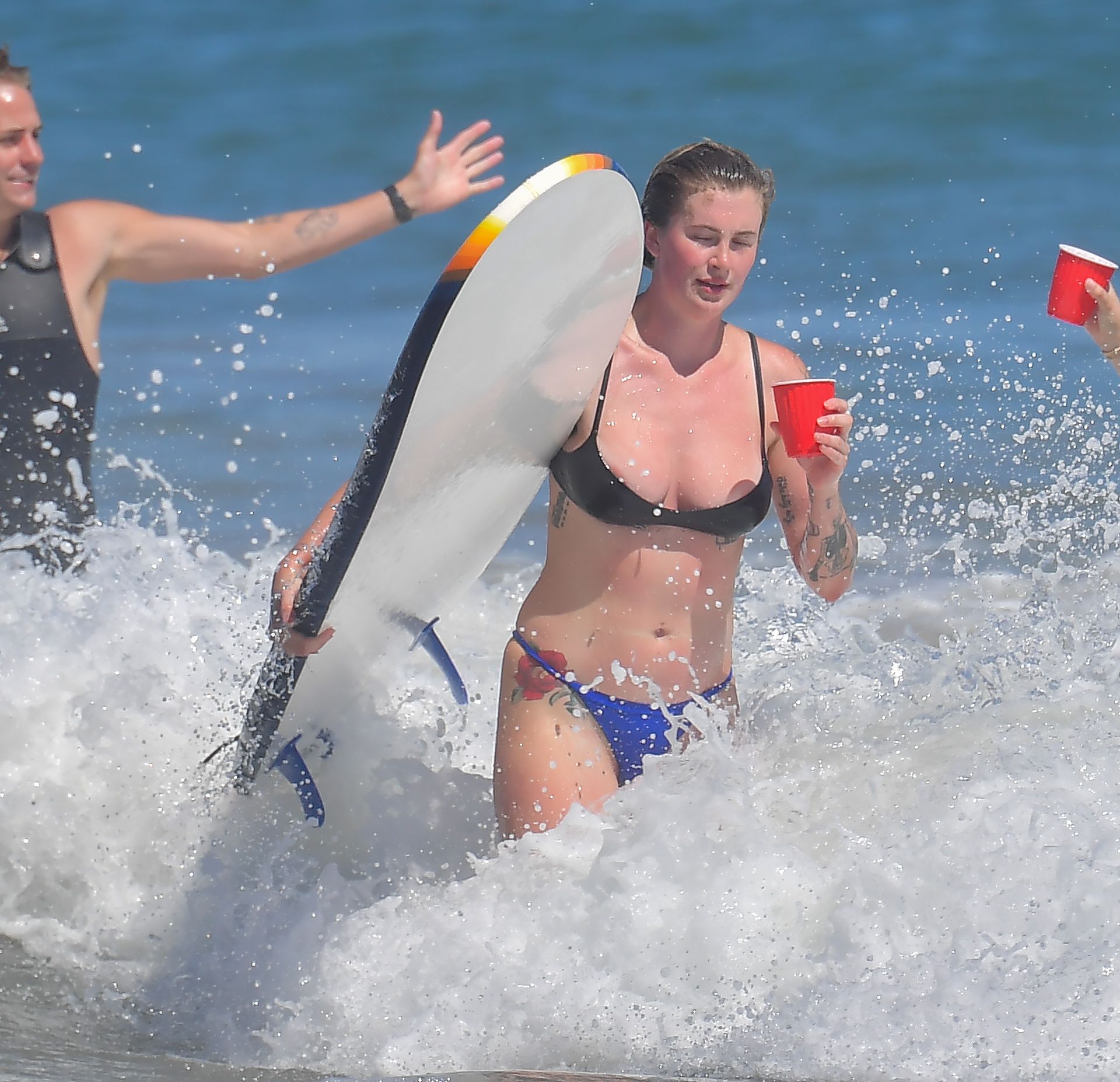 Ireland Baldwin con curvas se dirige a la playa en Malibu con amigos (89 fotos)