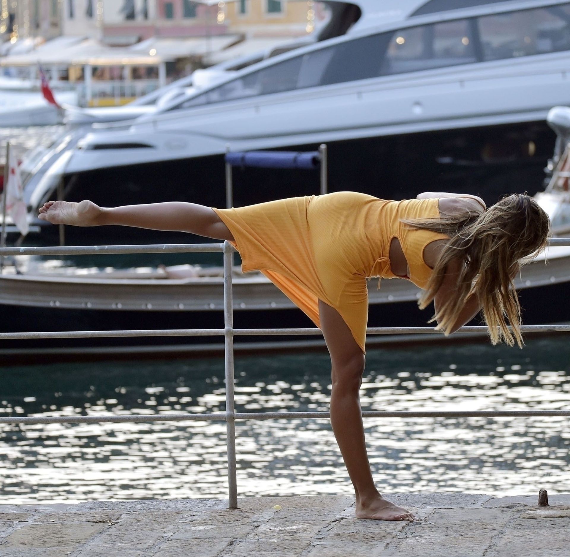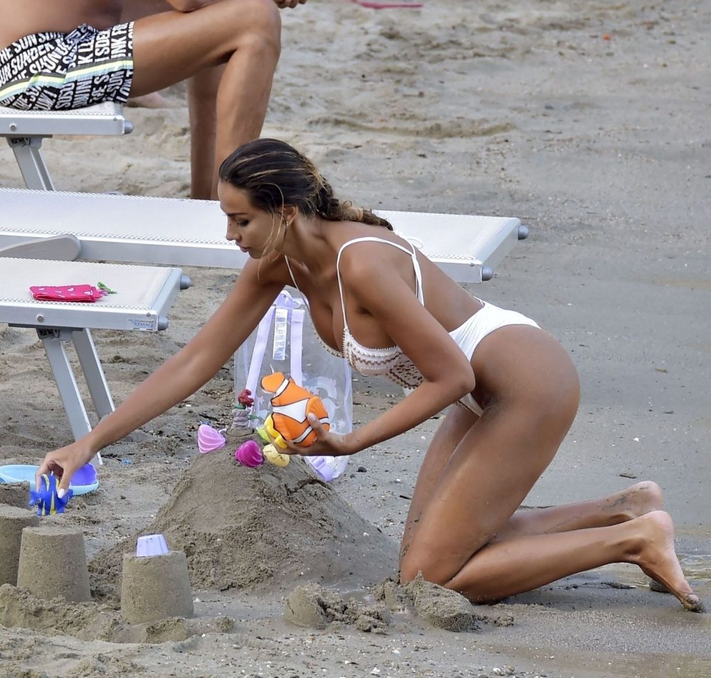 La actriz y modelo rumana Madalina Diana Ghenea se la ve disfrutando su tiempo en la playa con su hija y su supuesto nuevo novio – Portofino, 15/08/2021.