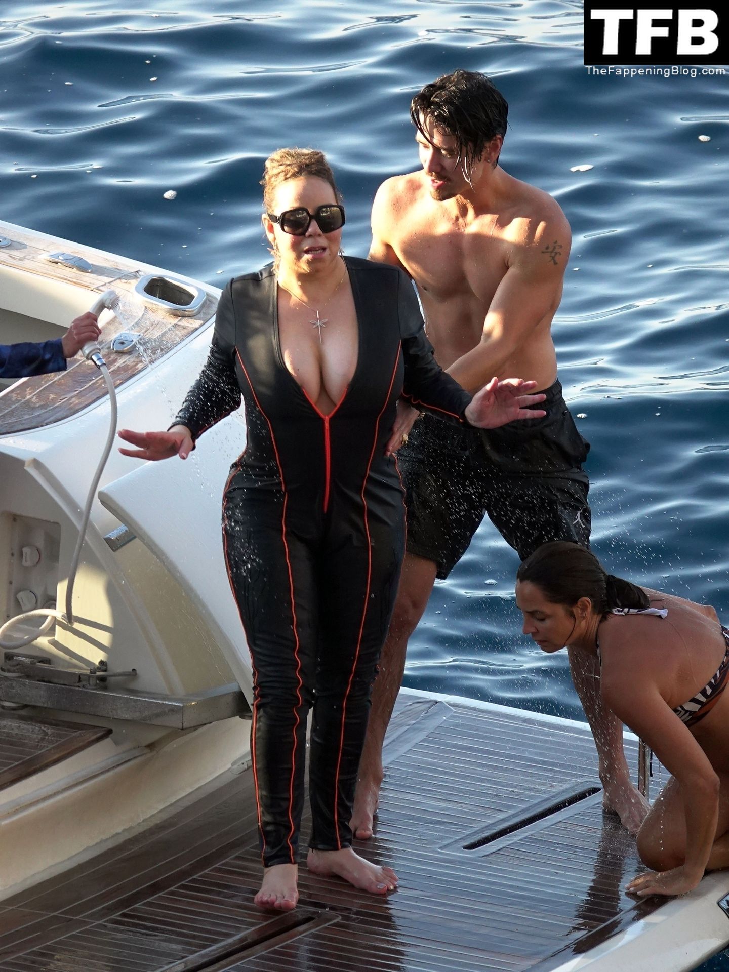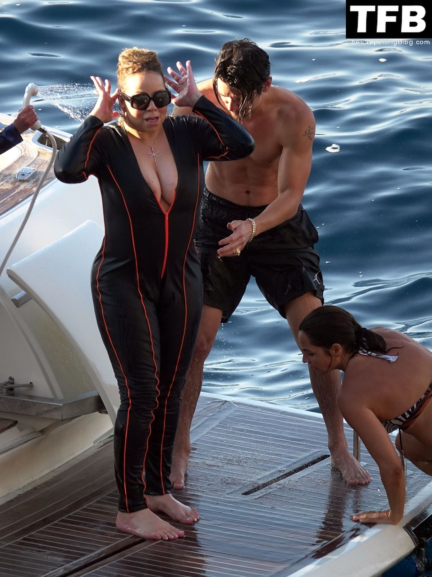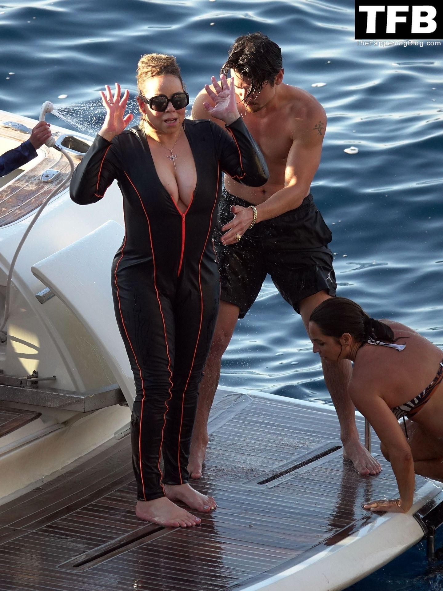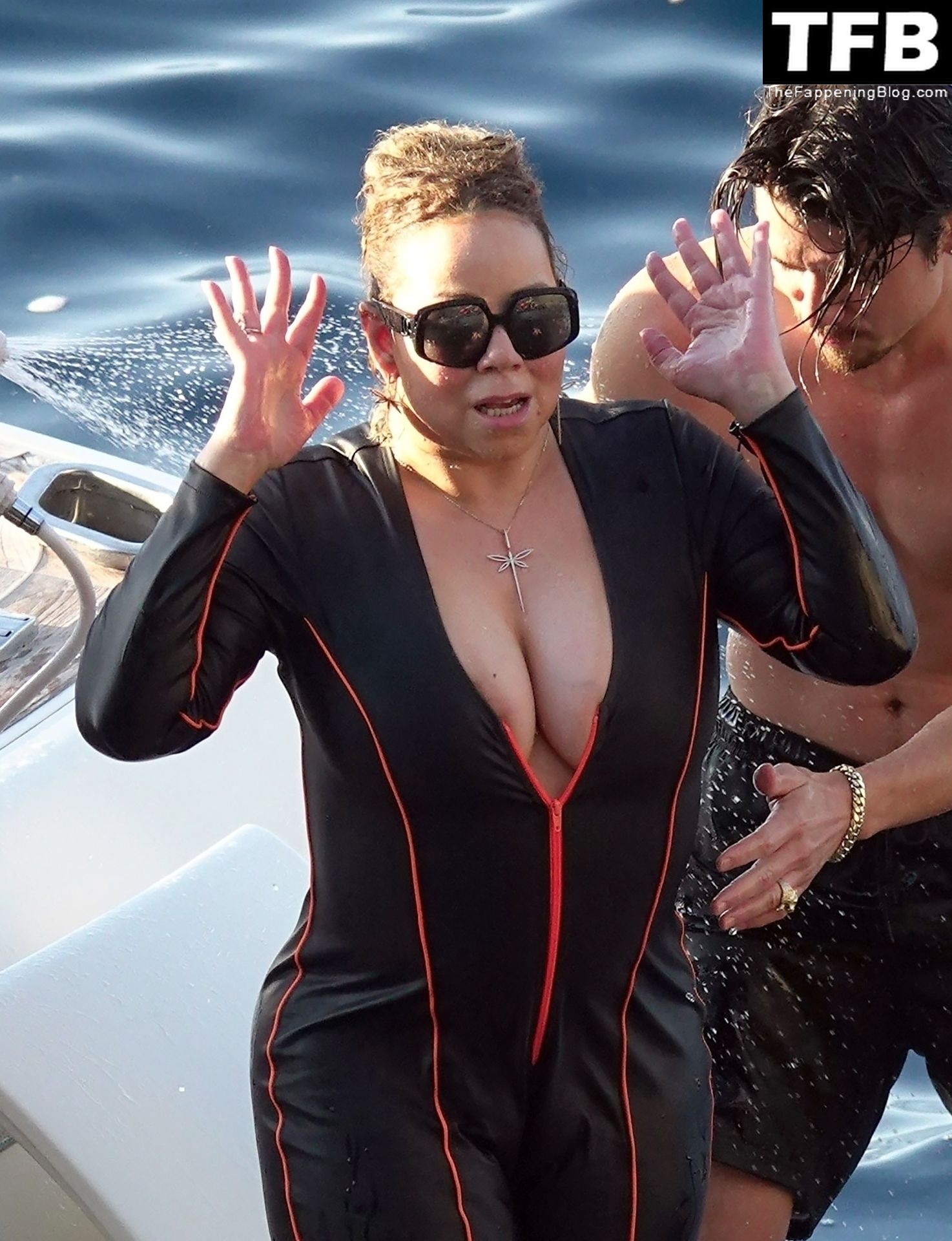 LA CERDA GORDA Y ASQUEROSA Mariah (Shamu) Carey se da un chapuzón en el mar