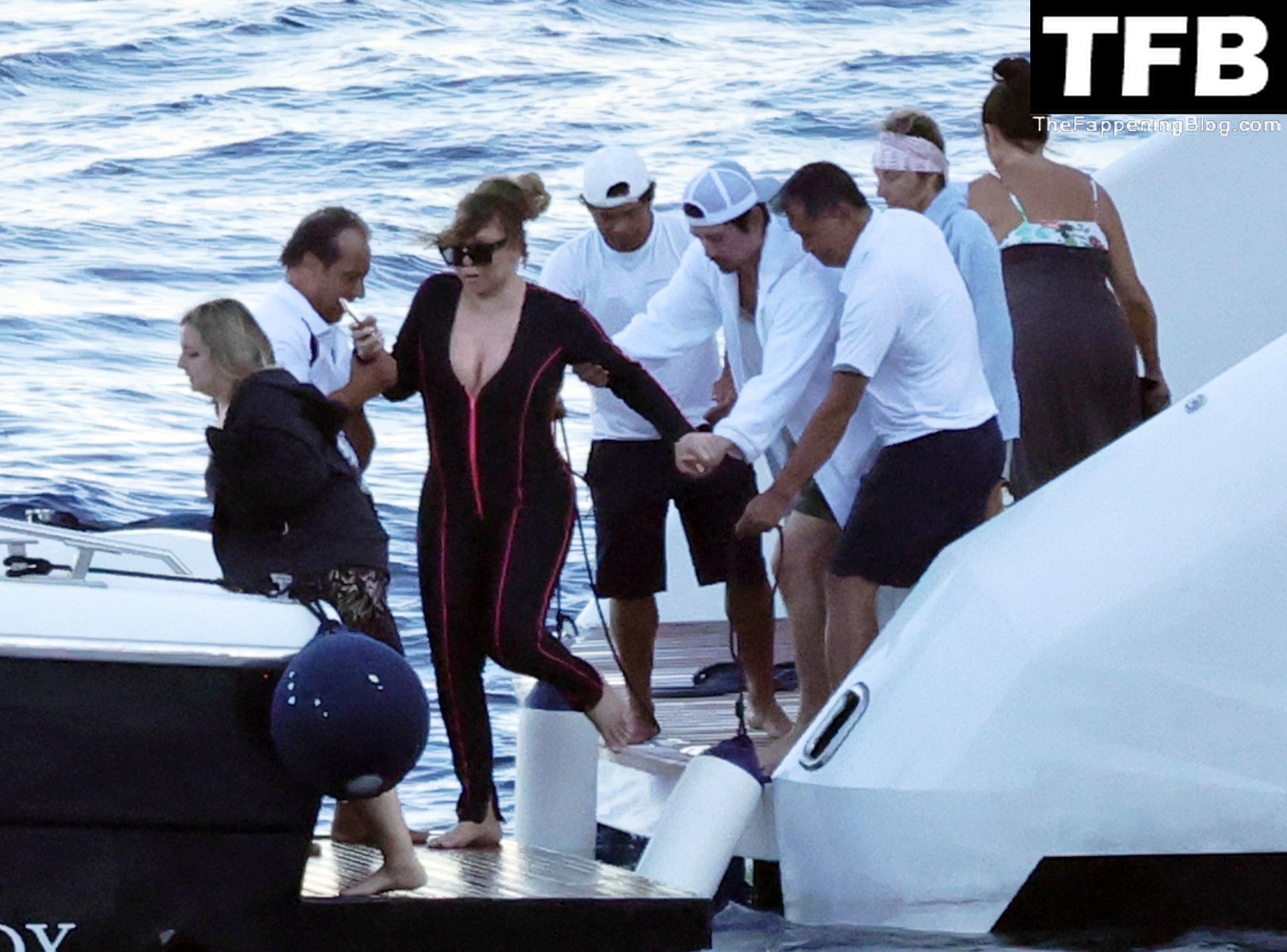 La diva del pop estadounidense Mariah Carey mantiene su glamour con joyas completas y un body mientras se traga por completo a su novio Bryan Tanaka y a sus hijos durante sus vacaciones en Capri, 15/07/2022.