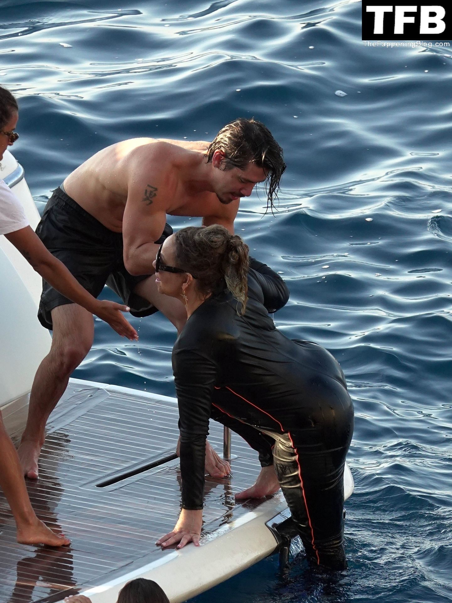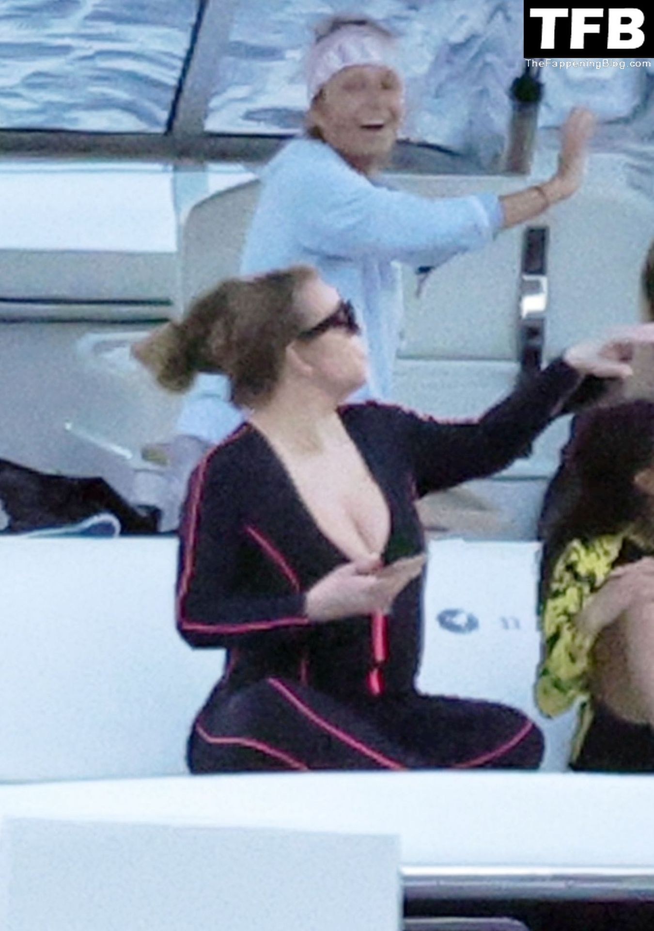 Hablando de eso, a juzgar por estas fotos, ella no sabe nadar, necesita ese aro azul para mantenerse a flote.