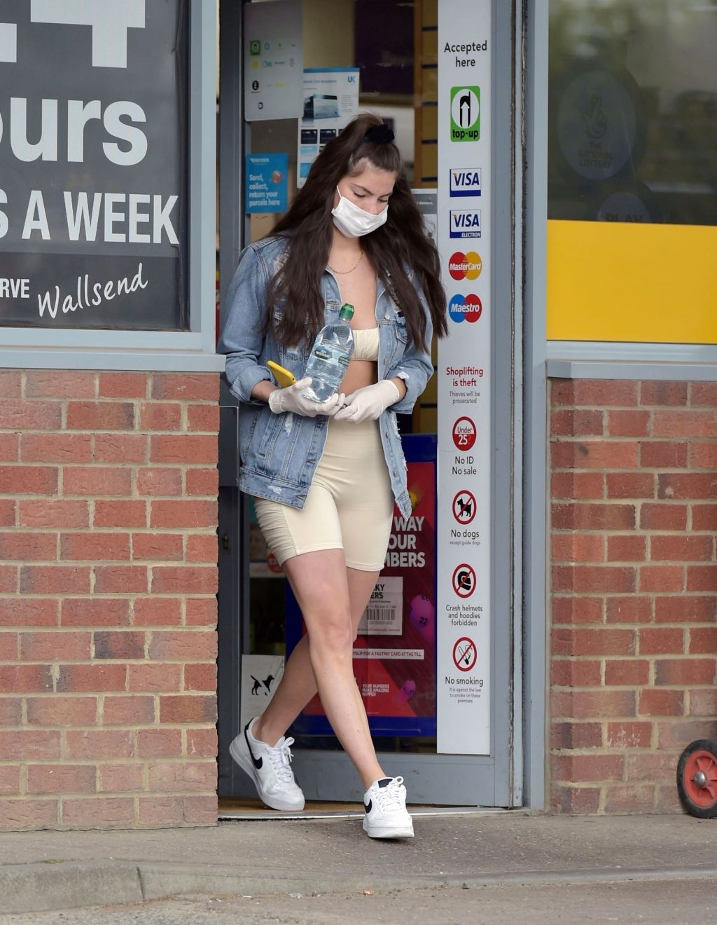 Rebecca Gormley de Love Island es vista dirigiéndose a su estación de servicio local en Newcastle esta mañana. La estrella de reality es vista recogiendo agua mientras lleva guantes protectores y una mascarilla.