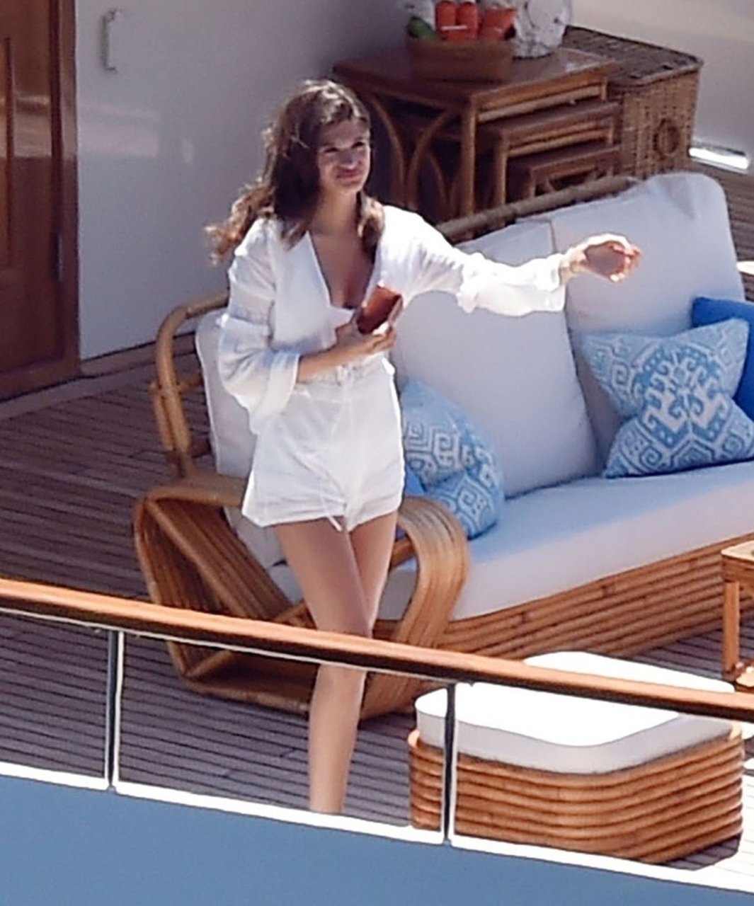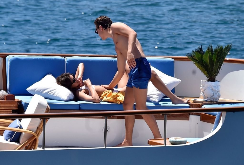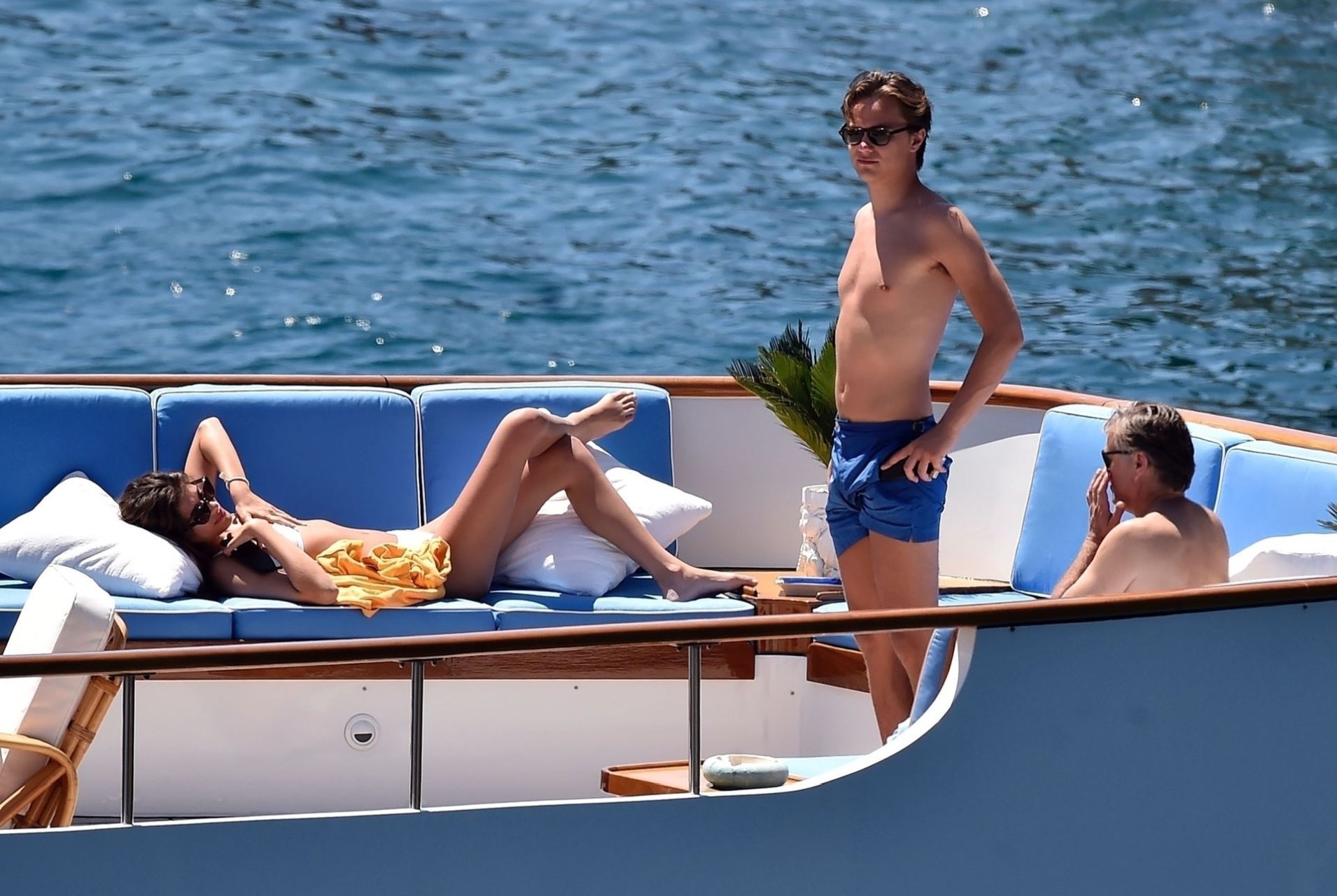 La pareja fue vista relajándose en el megayate bajo el sol de la Riviera italiana tomando el sol bajo el intenso calor.