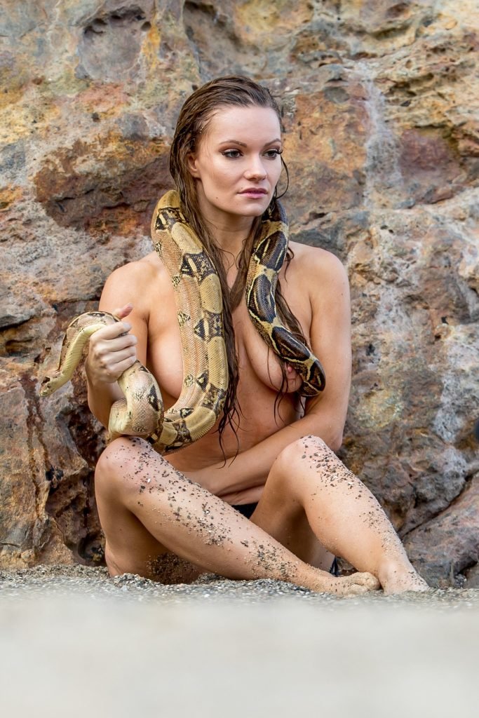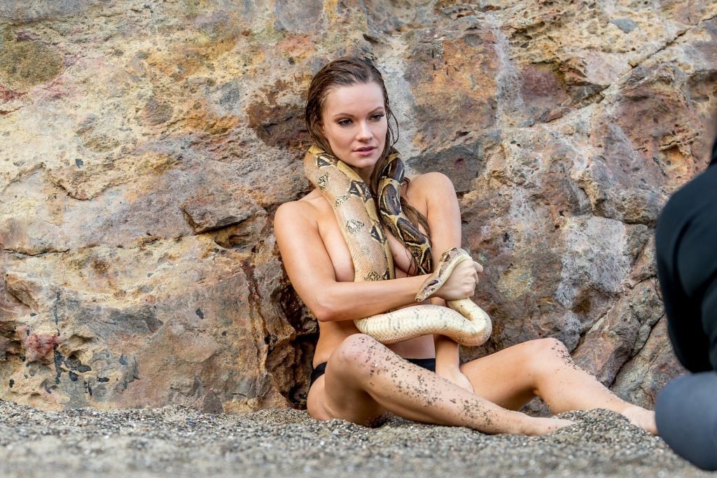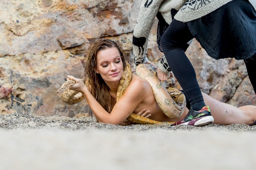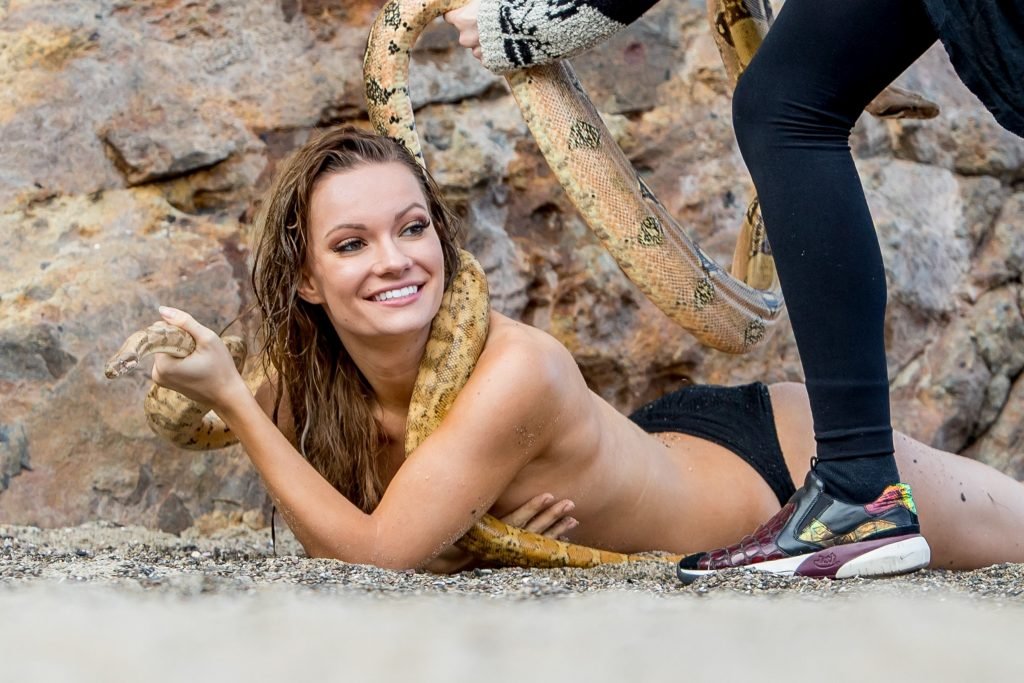 Caitlin O’Connor posa desnuda con una serpiente en la playa de Malibu, 20/03/2017. Caitlin O’Connor (Purdy) es una actriz estadounidense (American Satan (2017)), modelo y presentadora. Edad: 26 (3 de agosto de 1990).