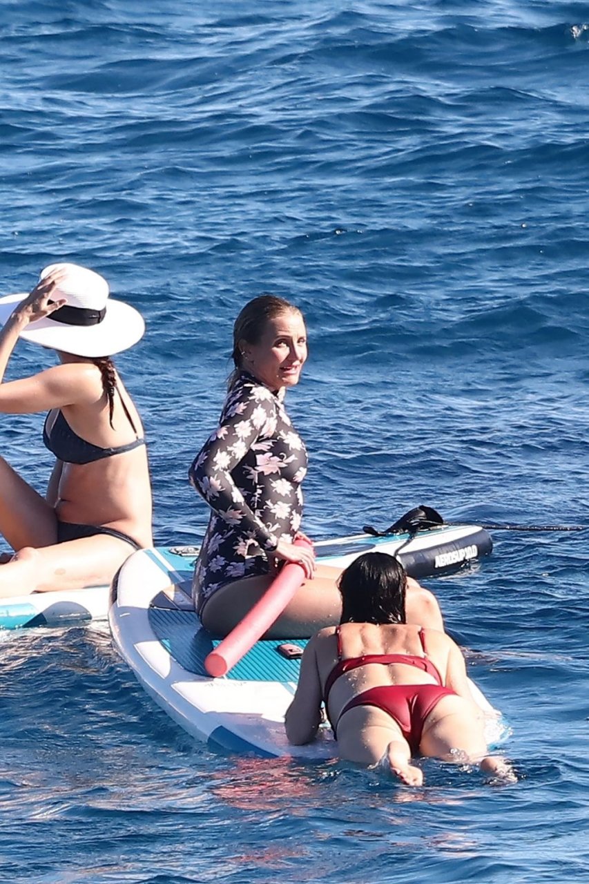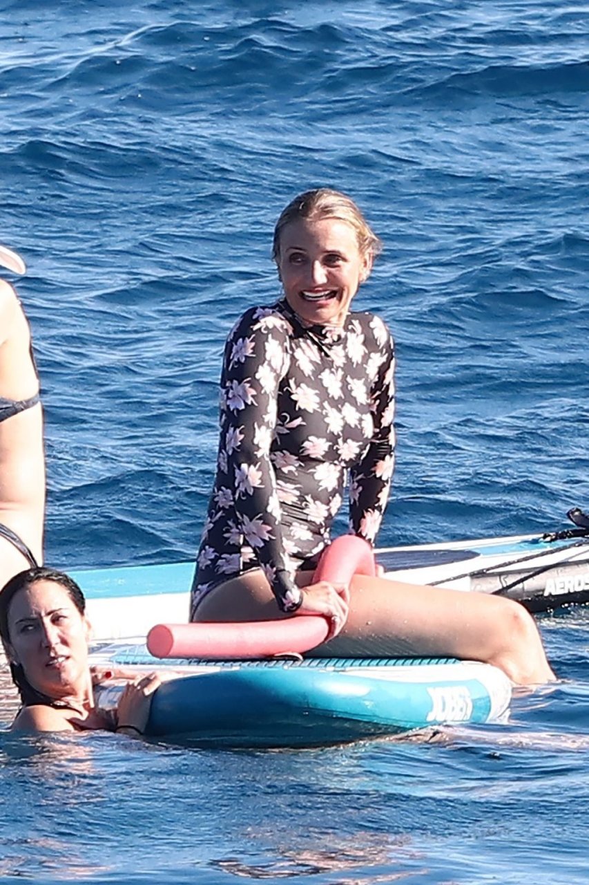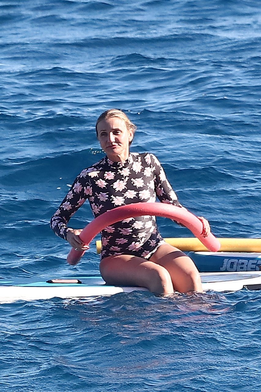 Cameron, que cumple 47 años este mes, no pudo contener su alegría mientras era vista montando una tabla motorizada con Benji por el mar y riendo con amigos en tablas de surf durante su día fuera.