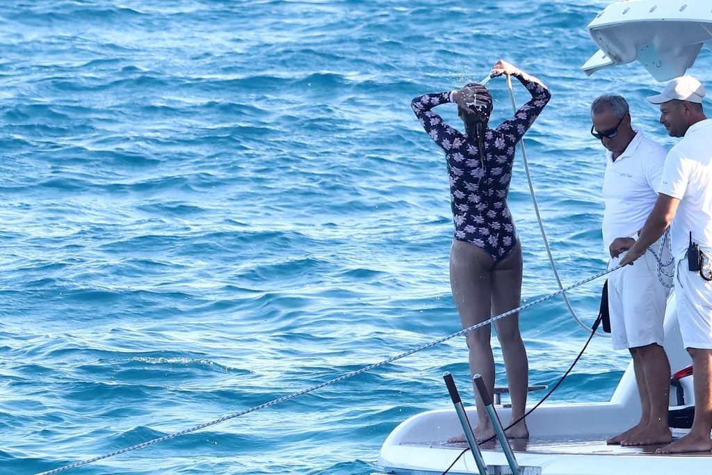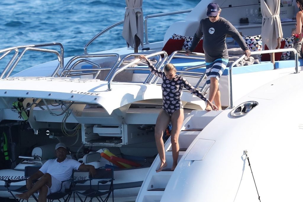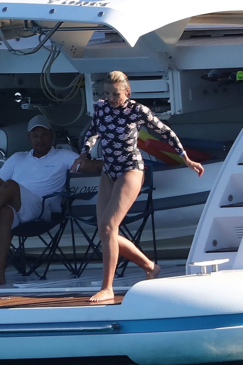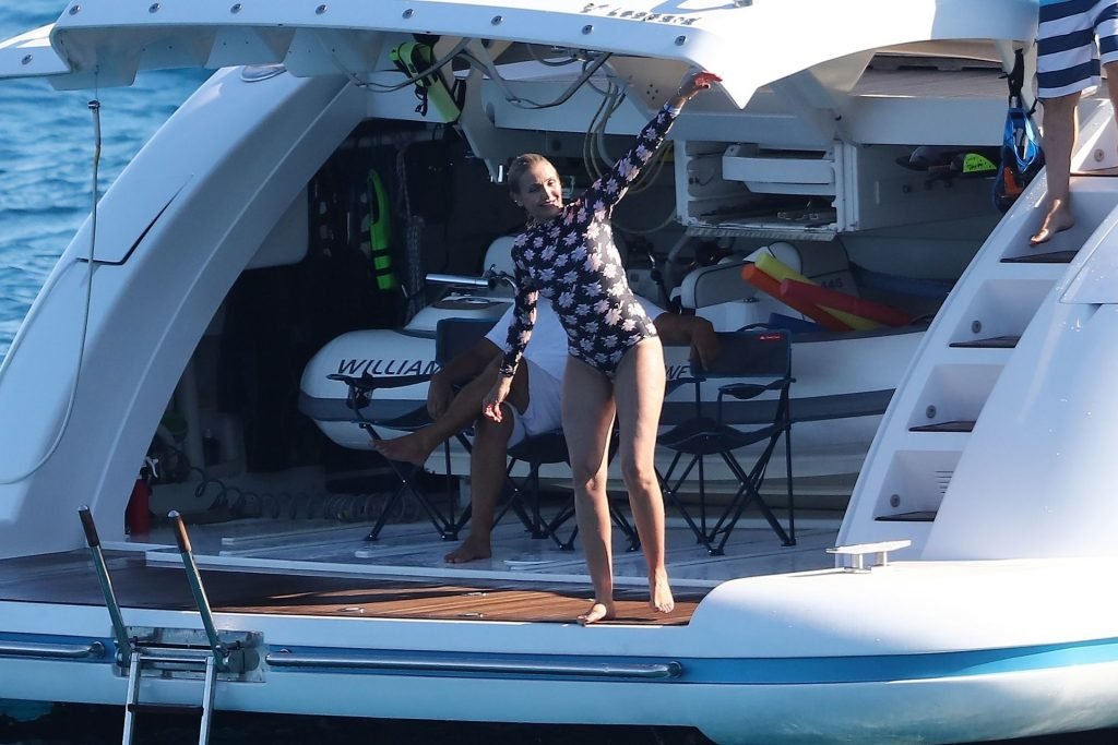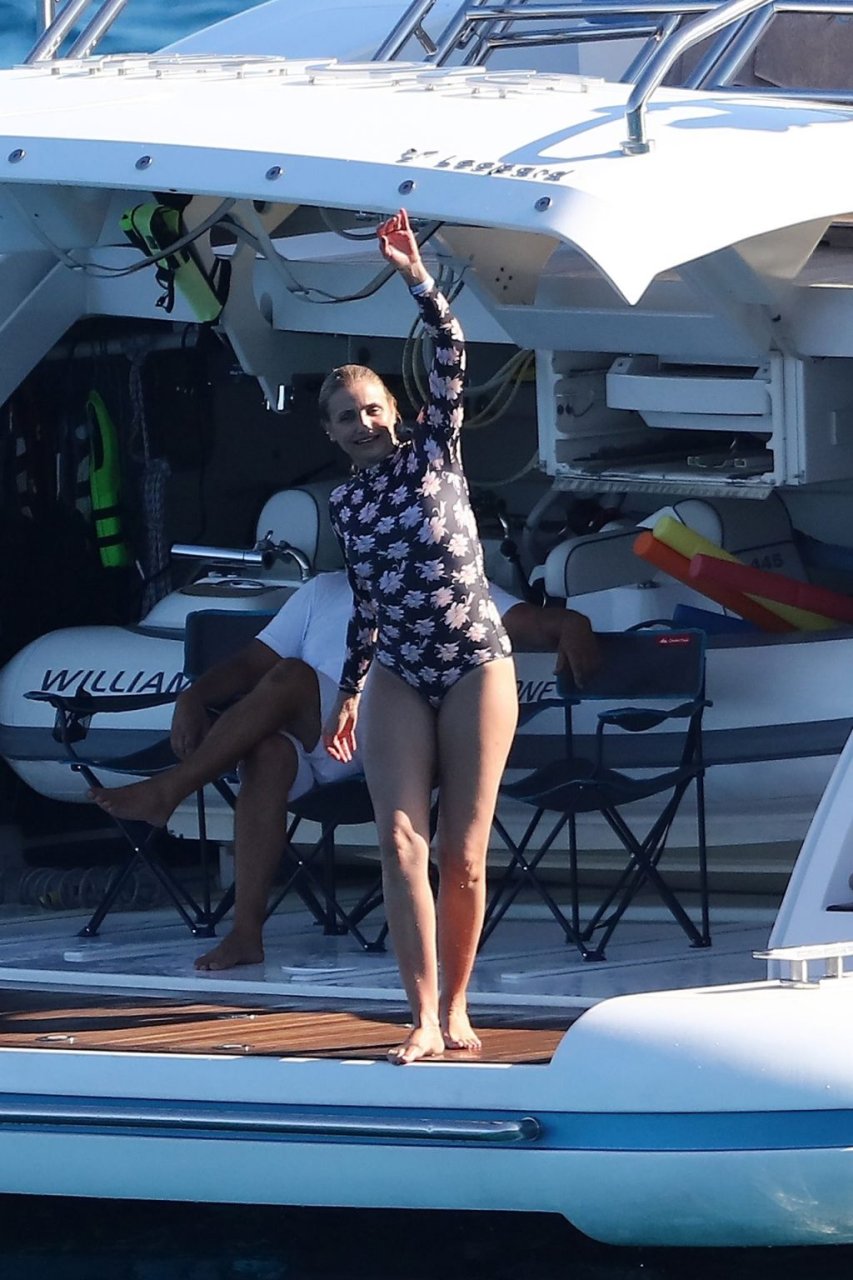 Cameron Diaz y su esposo Benji Madden están aprovechando al máximo sus vacaciones en Saint Tropez, 08/08/2019. La estrella de Charlie’s Angels fue vista zambulléndose en el Mediterráneo con un traje de baño de una pieza floral que mostraba su fantástico cuerpo.