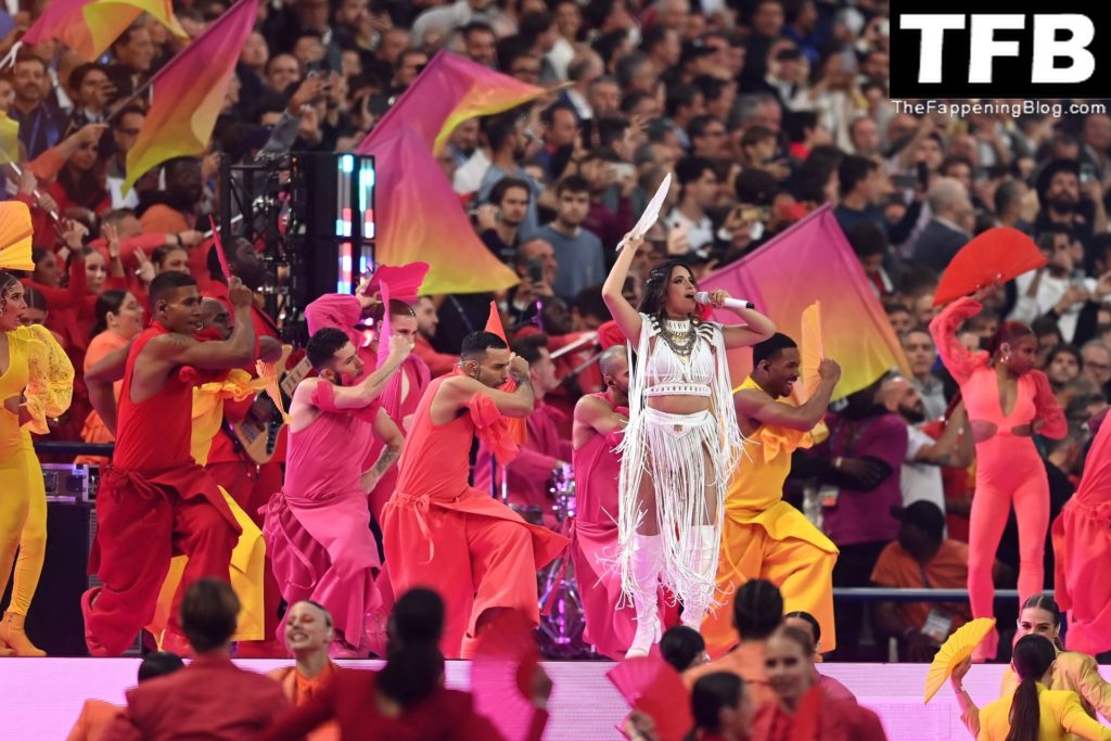 Camila Cabello actúa en la final de la Liga de Campeones entre Liverpool y Real Madrid en el Stade de France en Saint-Denis, 28/05/2022.