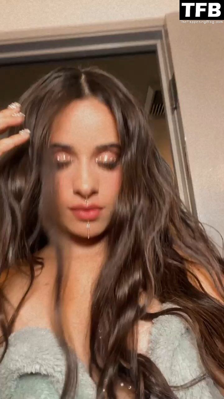 Fíjate cómo tiene cuidado de no inclinar la cámara demasiado hacia abajo. Truco común de chicas gorditas – "¡No, no, mira mi cara brillante y escote! ¡No mires mi enorme trasero!"