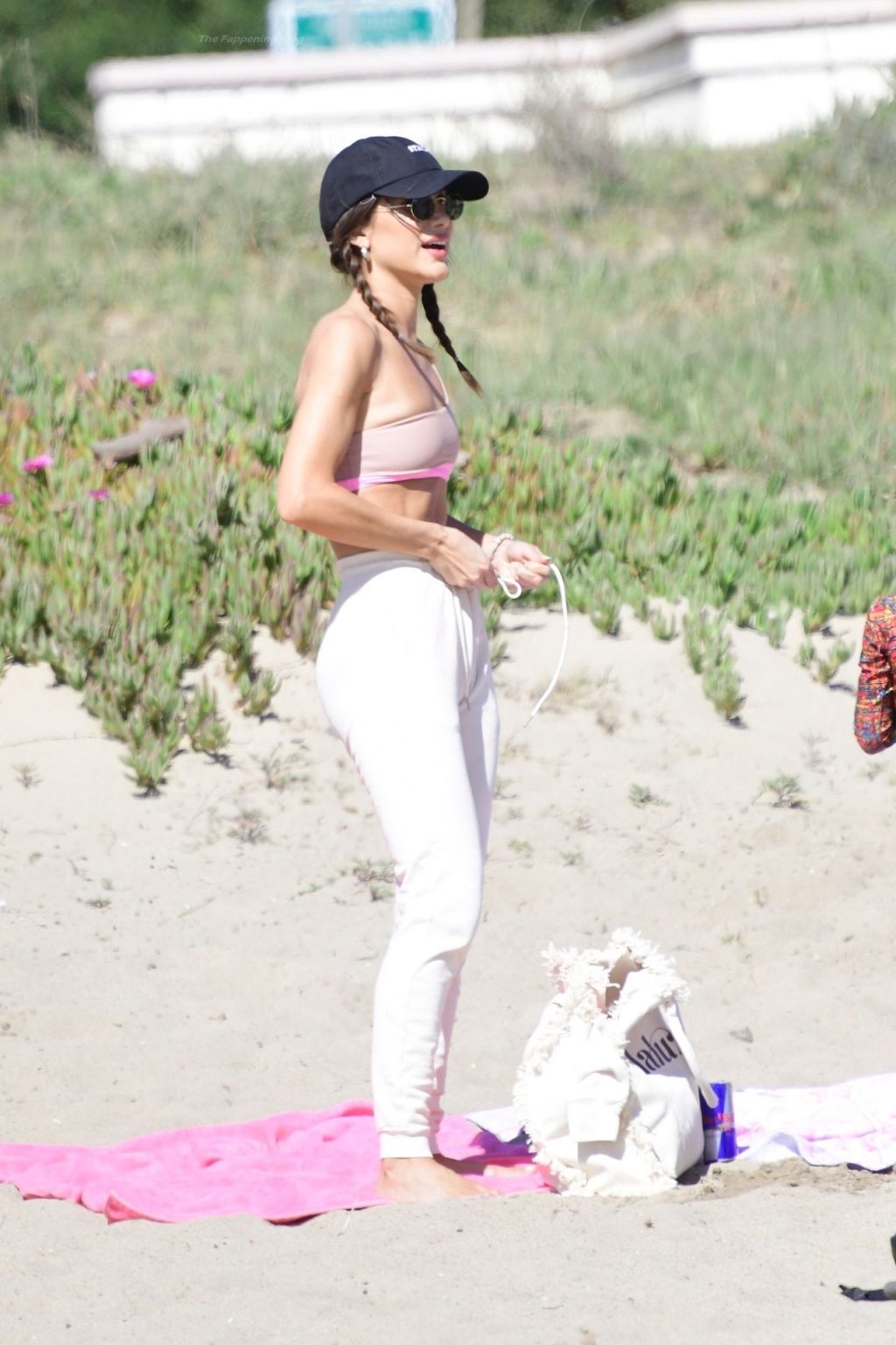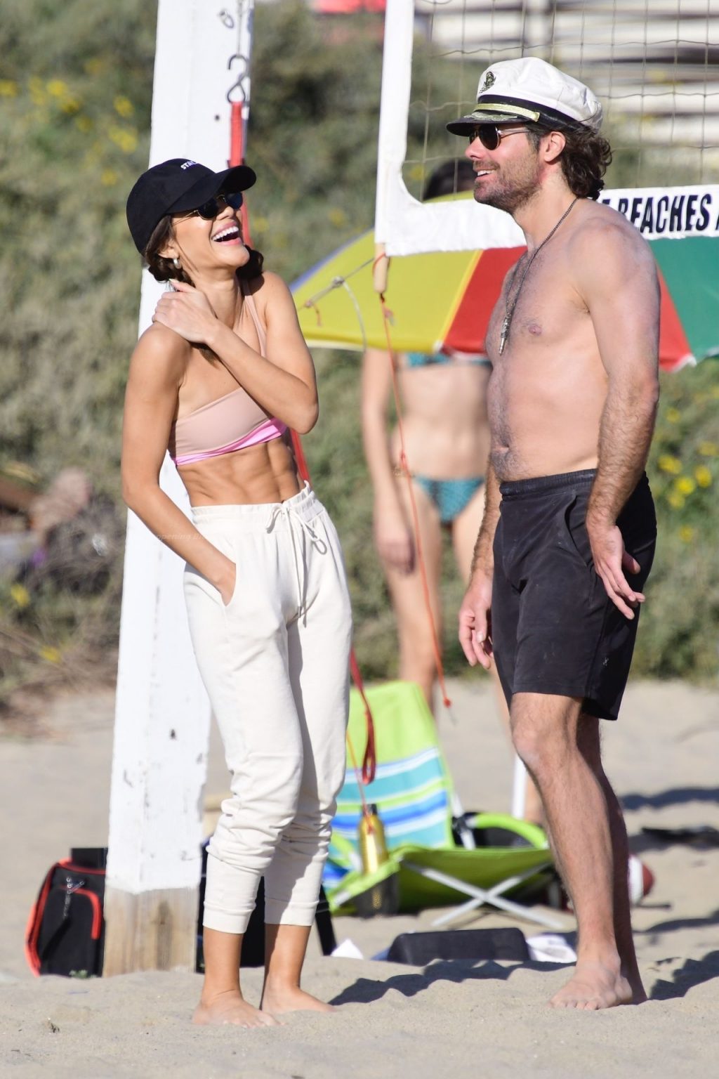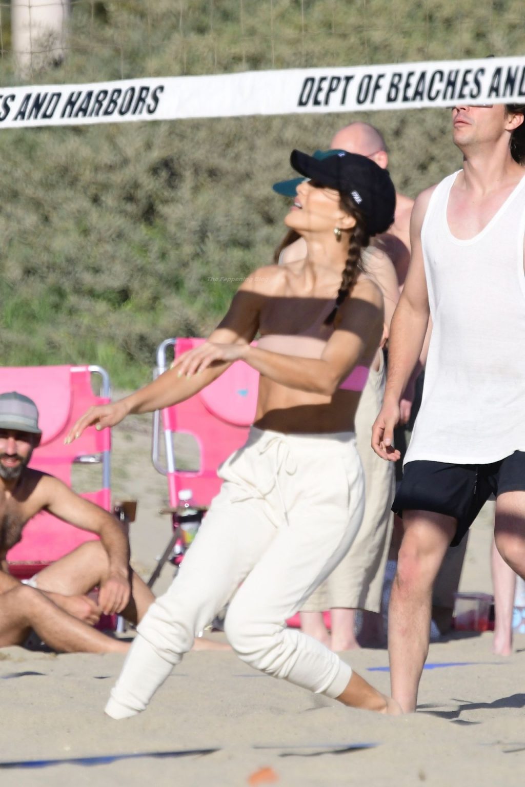 La bloguera de moda brasileña Camila Coelho participa en un amistoso juego de vóley playa y la bloguera de Instagram exhibe su físico extremadamente tonificado, 28/03/2021.