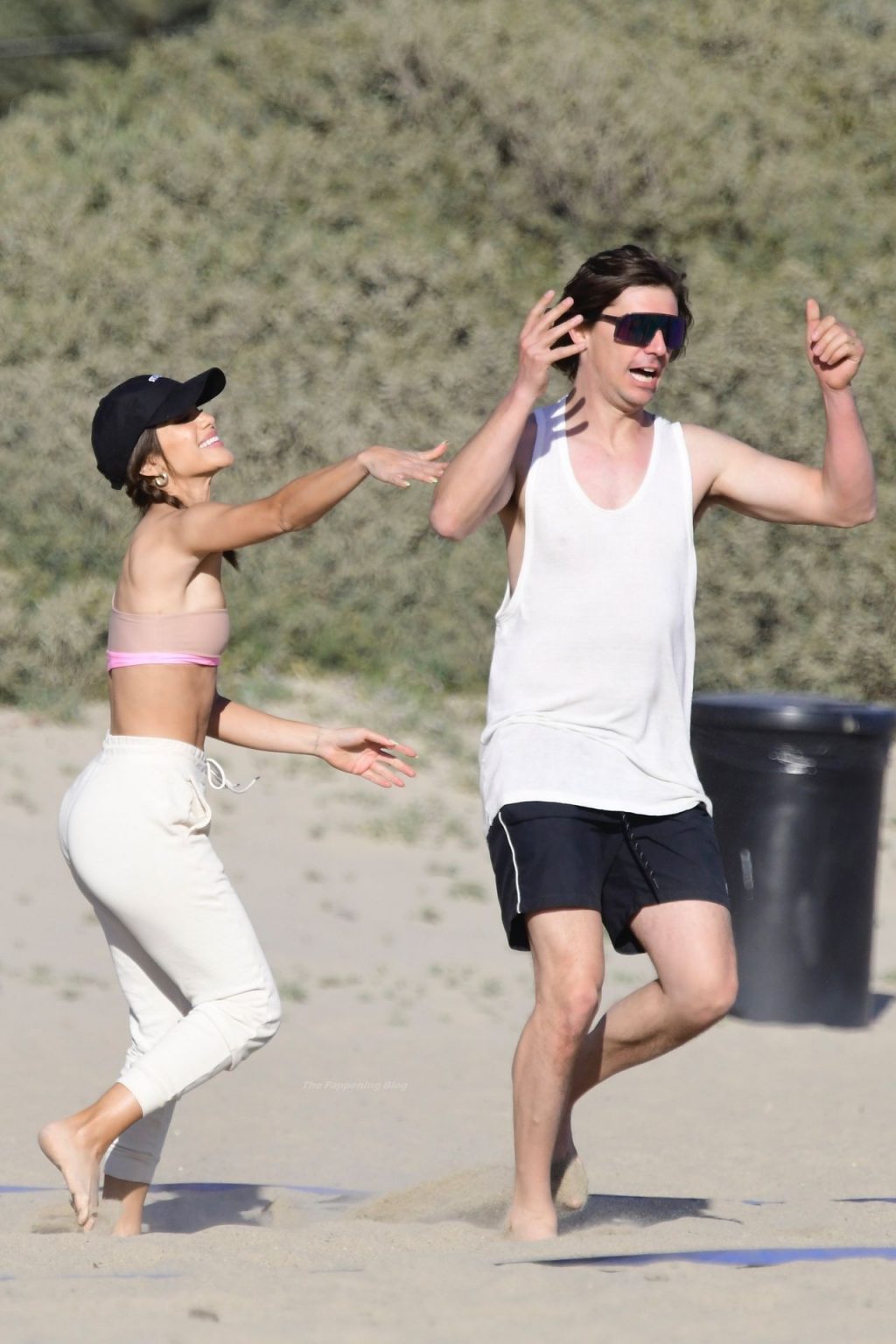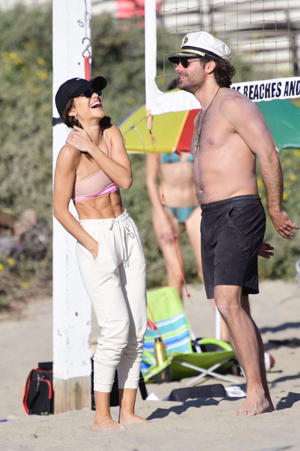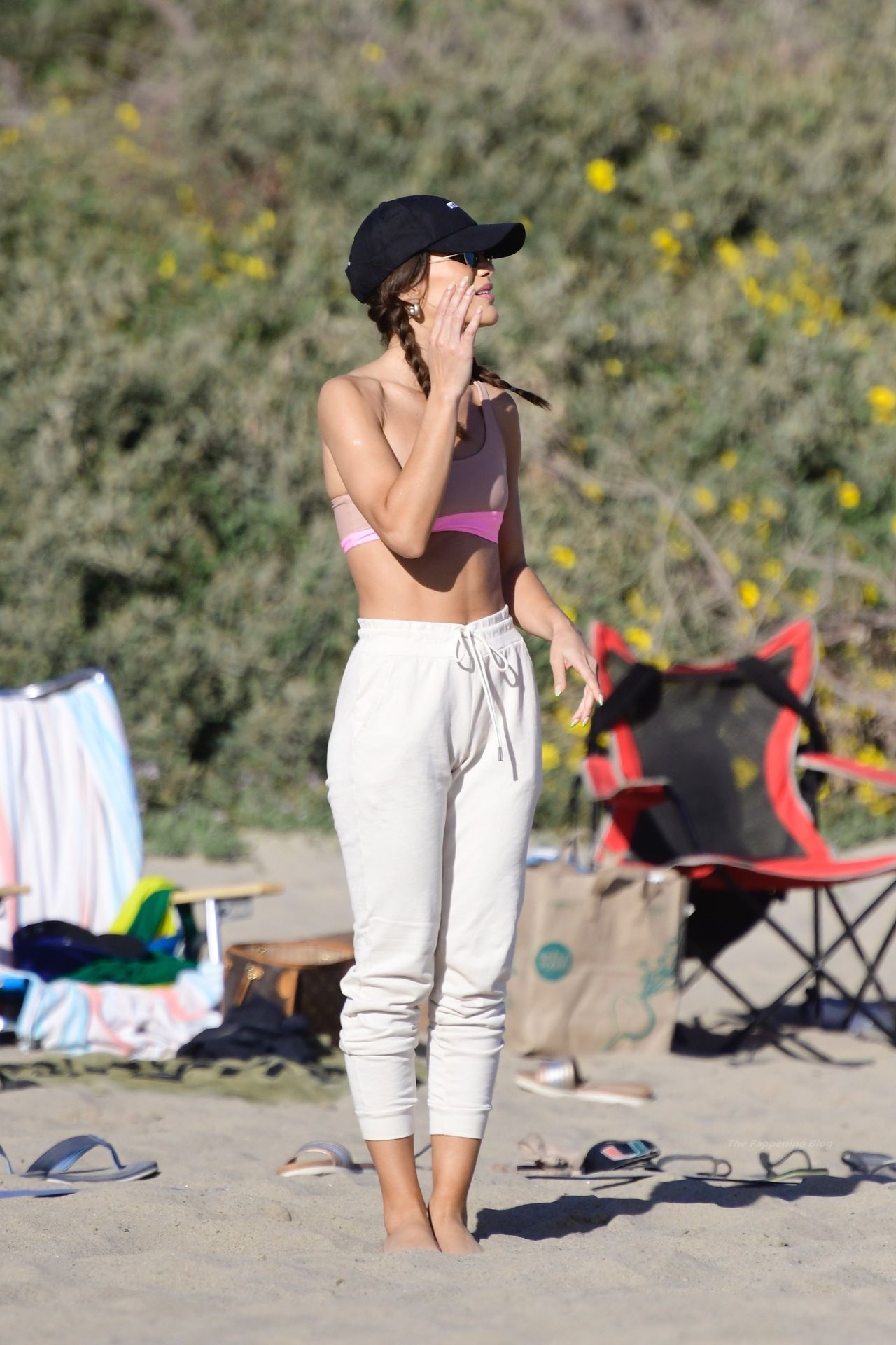 La bloguera de moda brasileña Camila Coelho participa en un amistoso juego de vóley playa y la bloguera de Instagram exhibe su físico extremadamente tonificado, 28/03/2021.