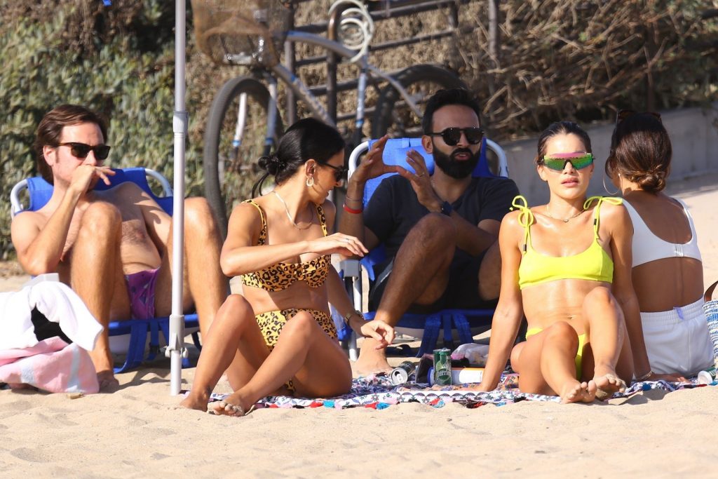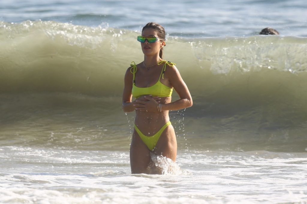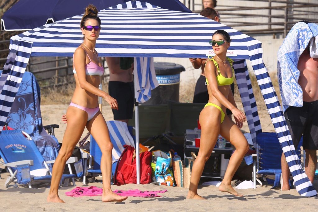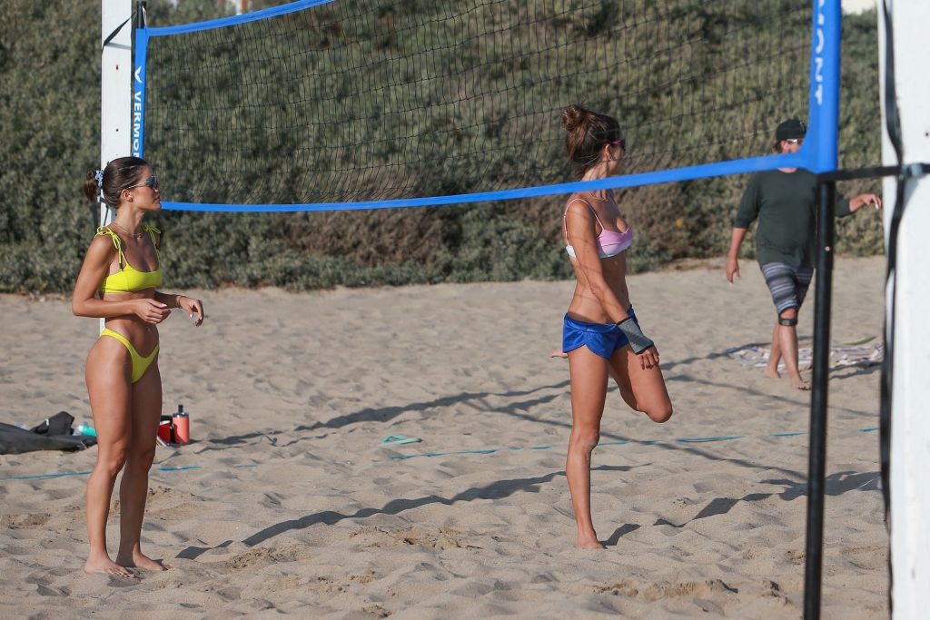 Alessandra Ambrosio y Camila Coelho juegan voleibol mientras disfrutan de un día de playa en Miami, 19/09/2020. Camila muestra su figura con un bikini amarillo mientras disfruta de un día de playa con amigos.