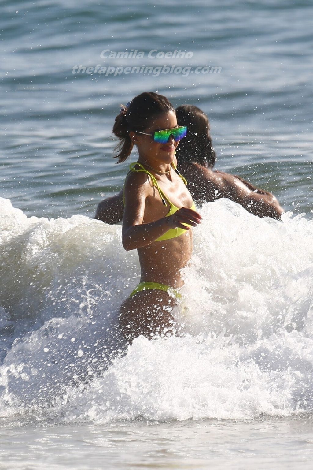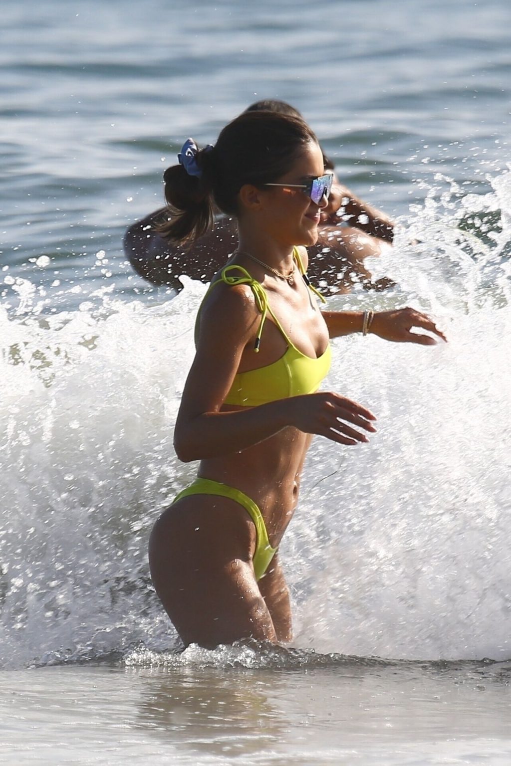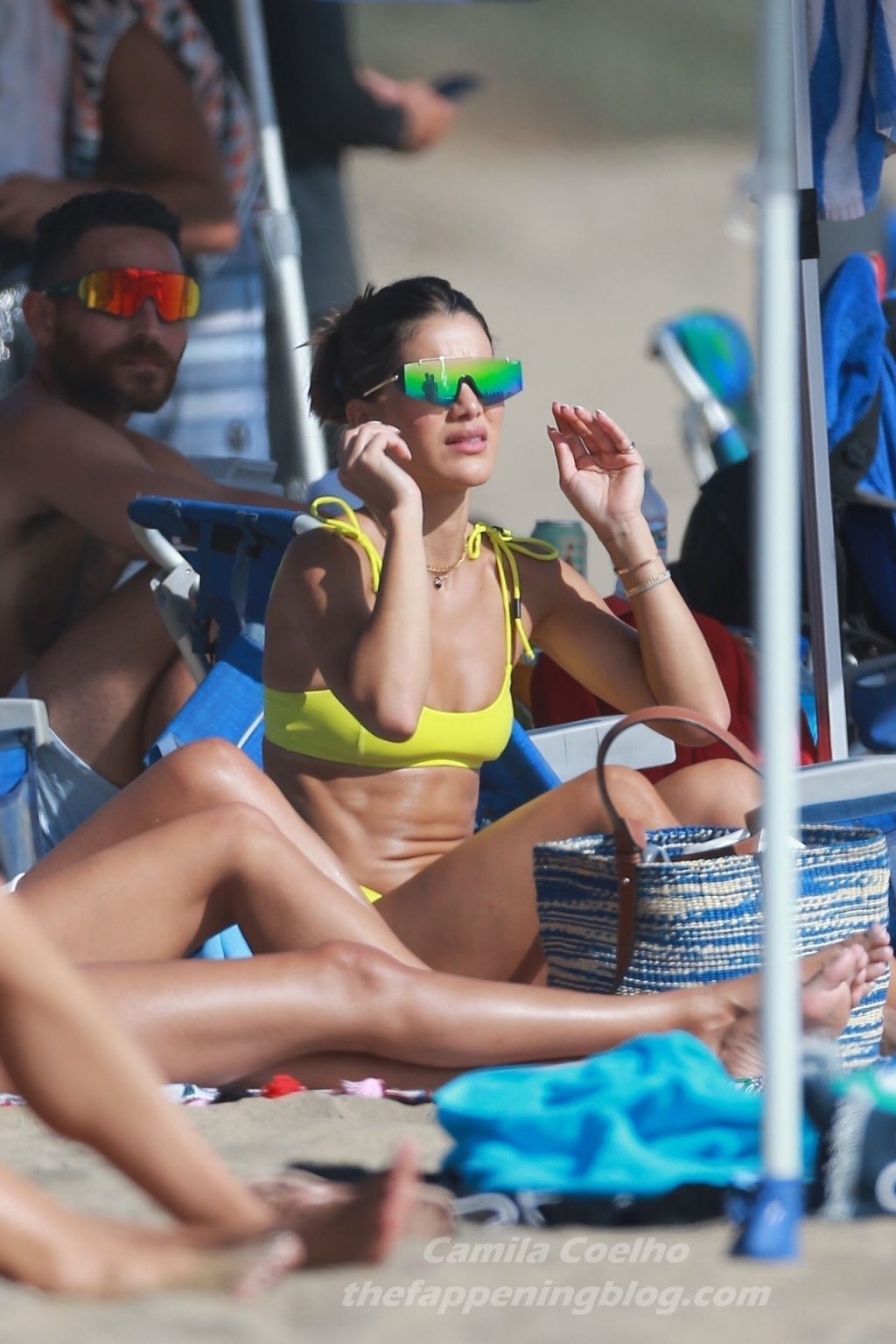 Alessandra Ambrosio y Camila Coelho juegan voleibol mientras disfrutan de un día de playa en Miami, 19/09/2020. Camila muestra su figura con un bikini amarillo mientras disfruta de un día de playa con amigos.