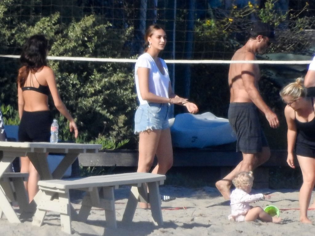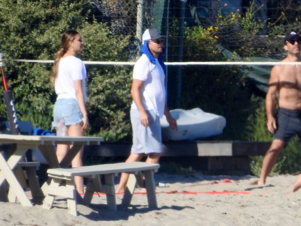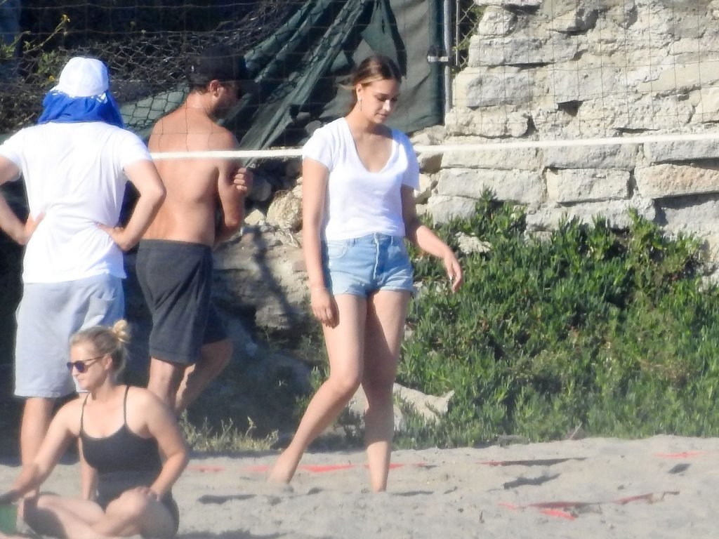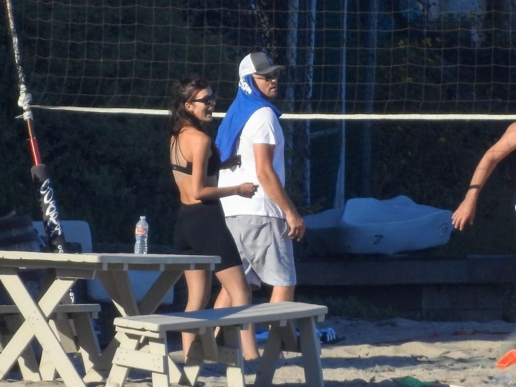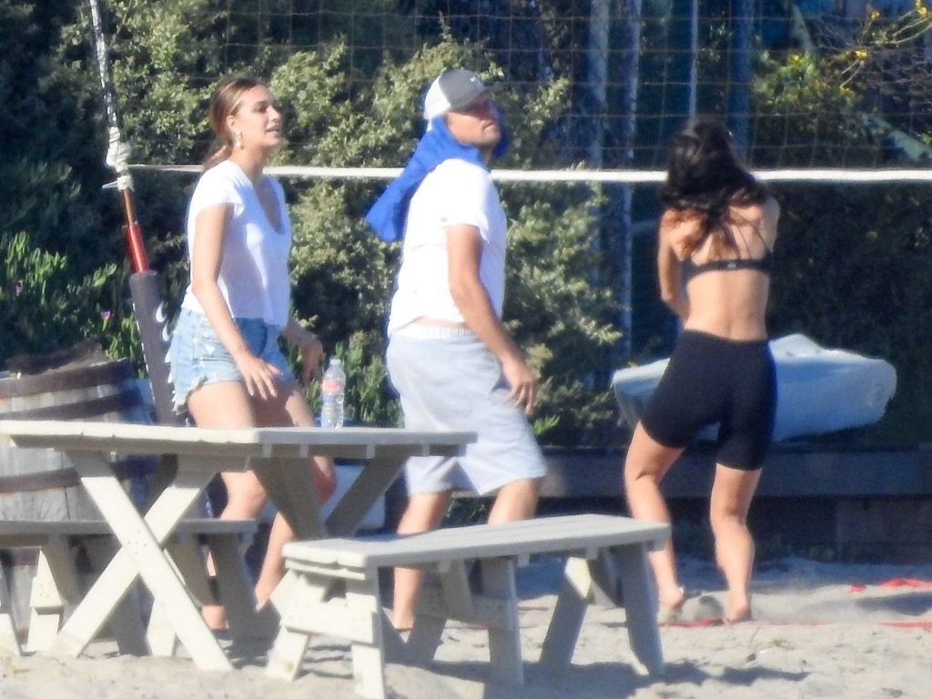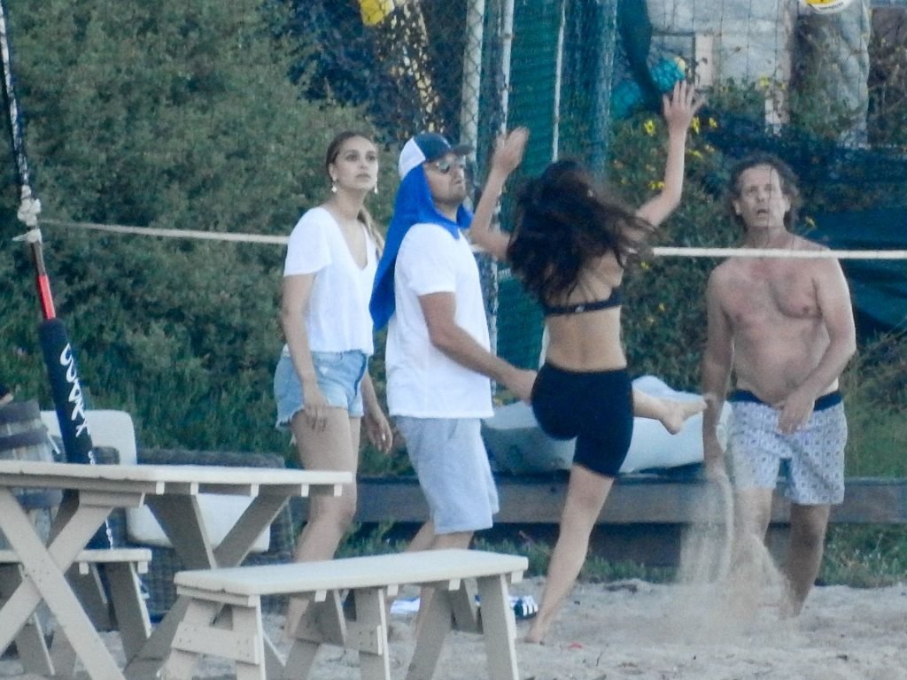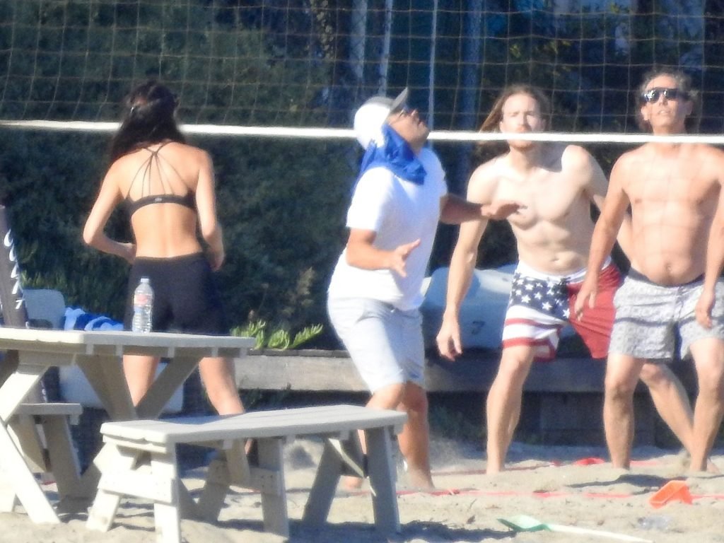 Ganador del Premio de la Academia Leonardo DiCaprio, su sexy novia Camila Morrone, y el dúo de A-listers Robin Thicke y April Love Geary, junto con sus pequeños, fueron vistos disfrutando uno de los deportes de playa favoritos de Leo este fin de semana, ¡un juego de voleibol! Fotografiado el 14/07/19.