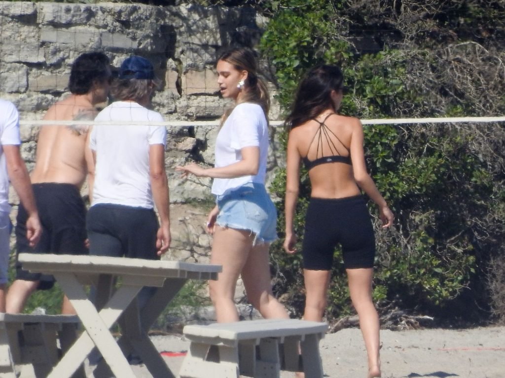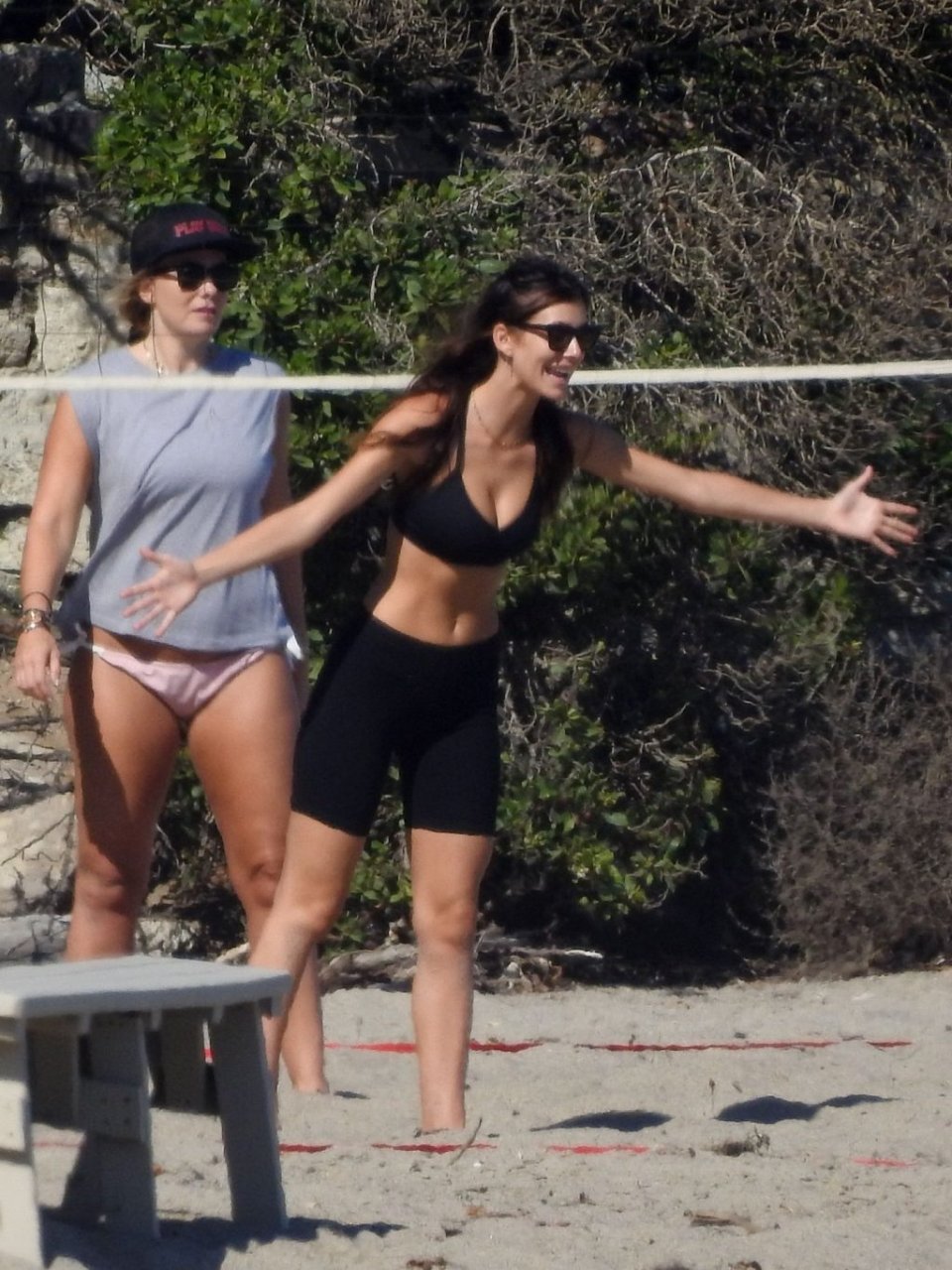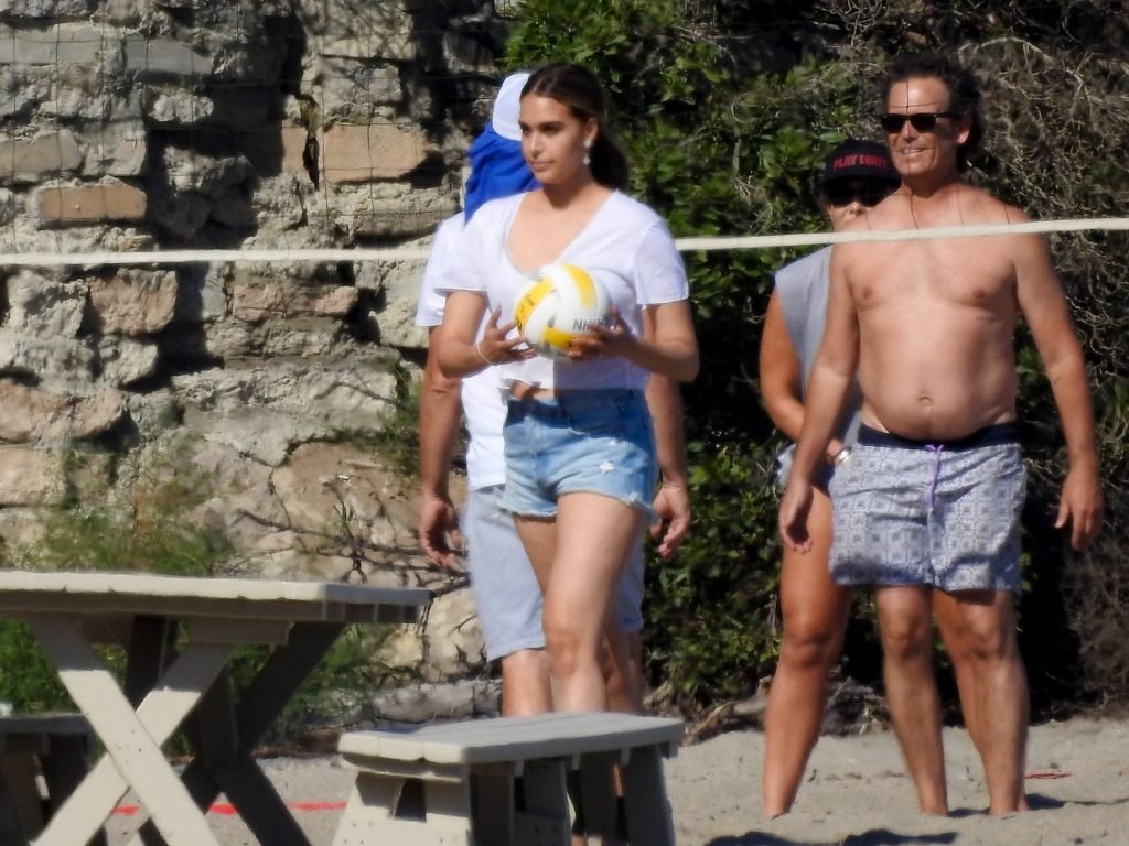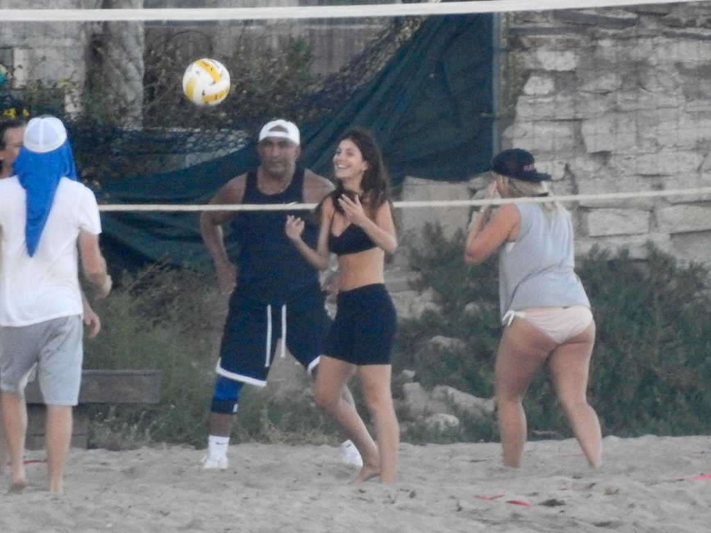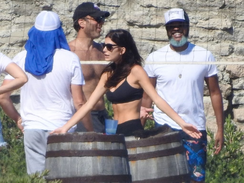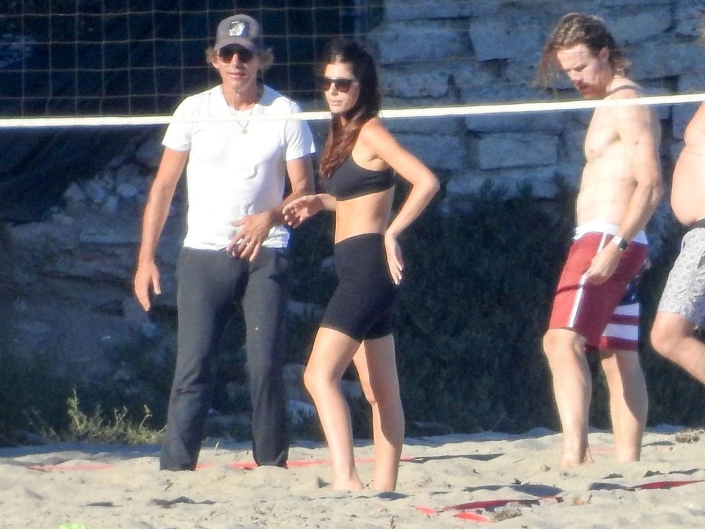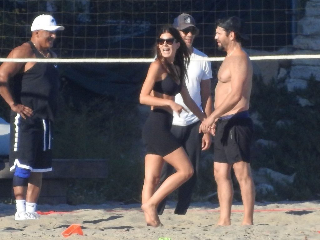 Ganador del Premio de la Academia Leonardo DiCaprio, su sexy novia Camila Morrone, y el dúo de A-listers Robin Thicke y April Love Geary, junto con sus pequeños, fueron vistos disfrutando uno de los deportes de playa favoritos de Leo este fin de semana, ¡un juego de voleibol! Fotografiado el 14/07/19.