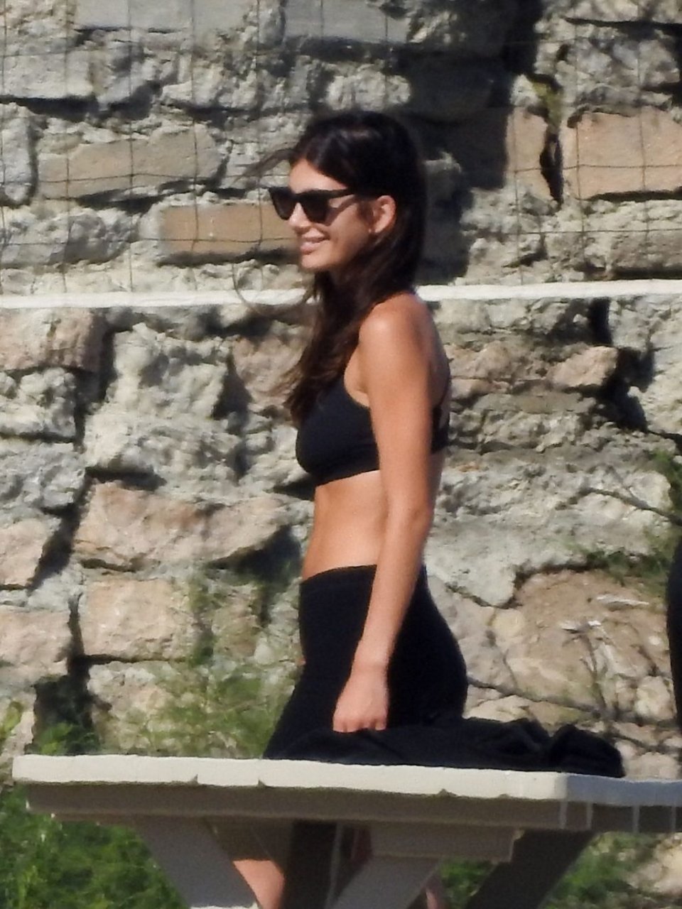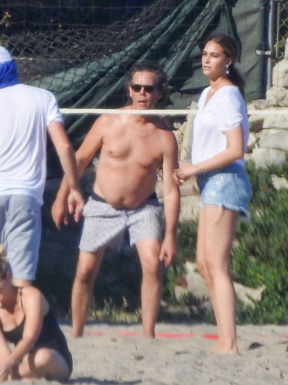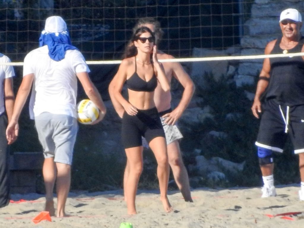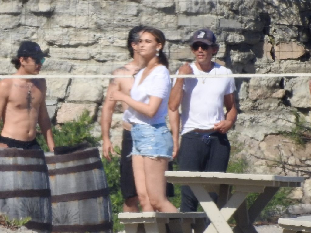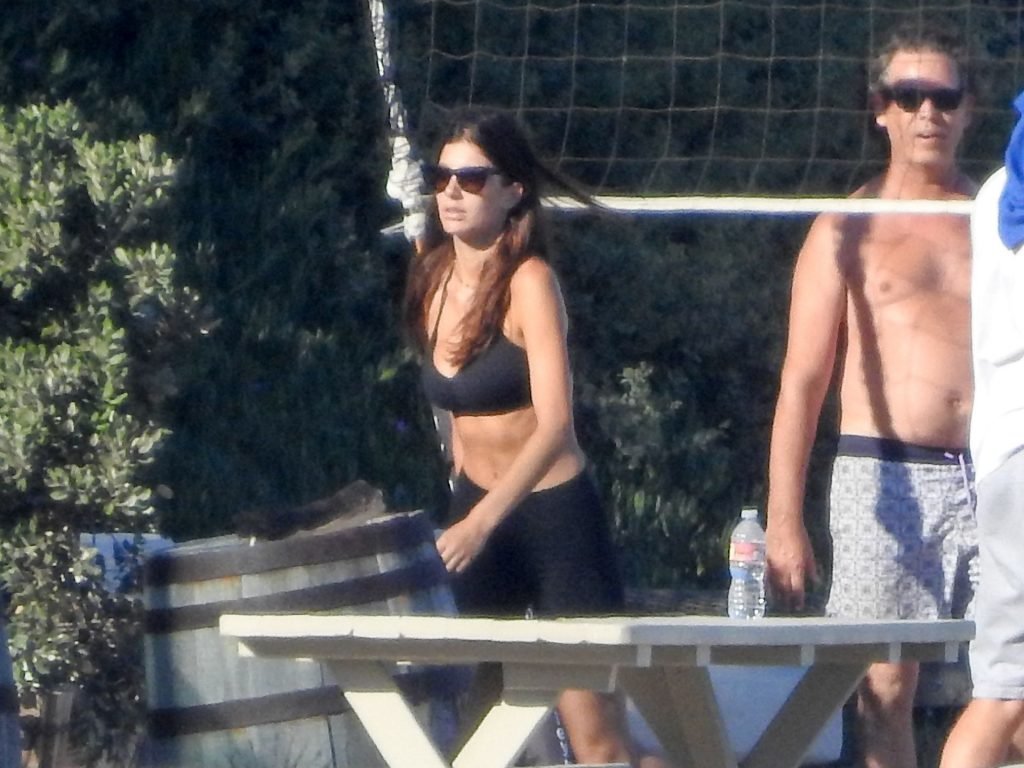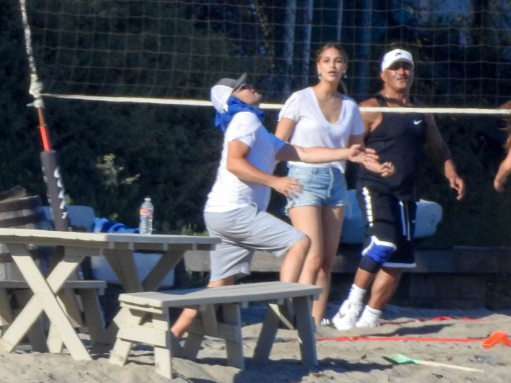 Ganador del Premio de la Academia Leonardo DiCaprio, su sexy novia Camila Morrone, y el dúo de A-listers Robin Thicke y April Love Geary, junto con sus pequeños, fueron vistos disfrutando uno de los deportes de playa favoritos de Leo este fin de semana, ¡un juego de voleibol! Fotografiado el 14/07/19.