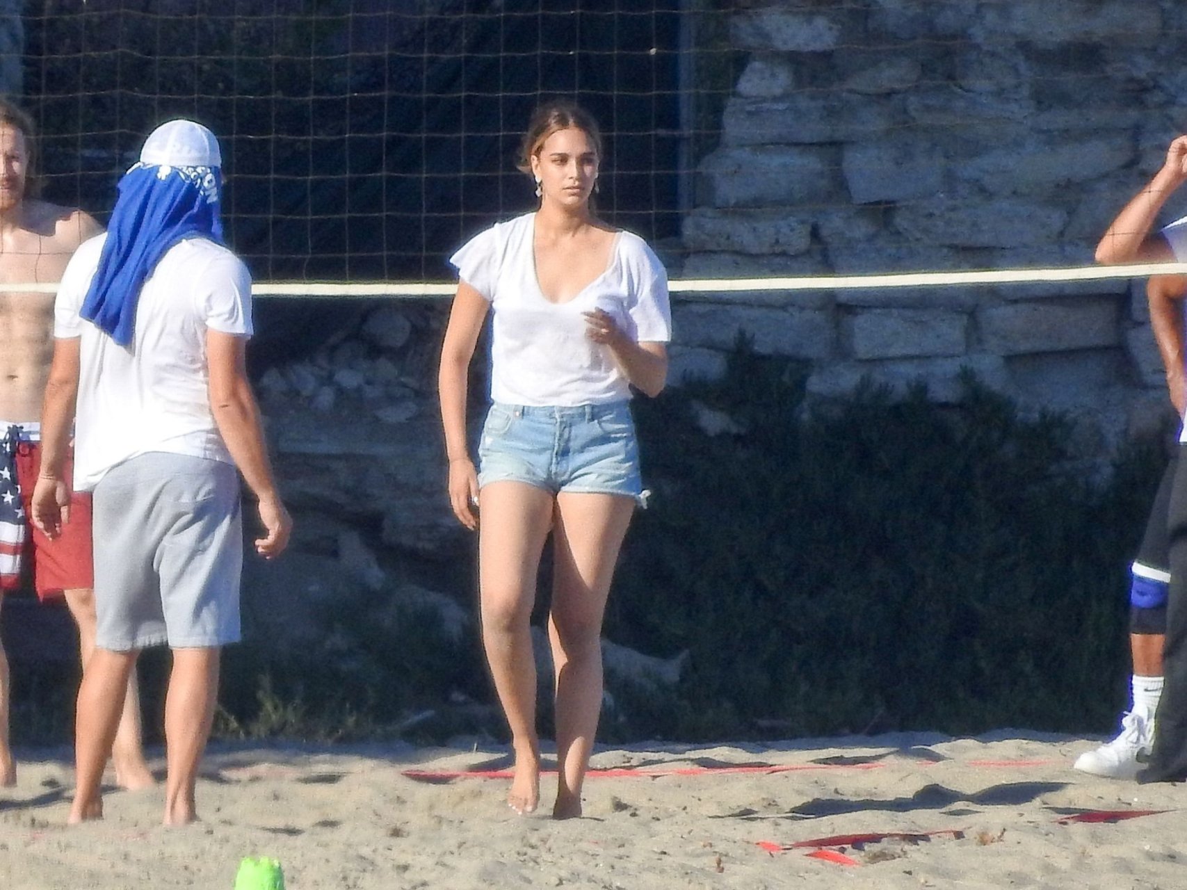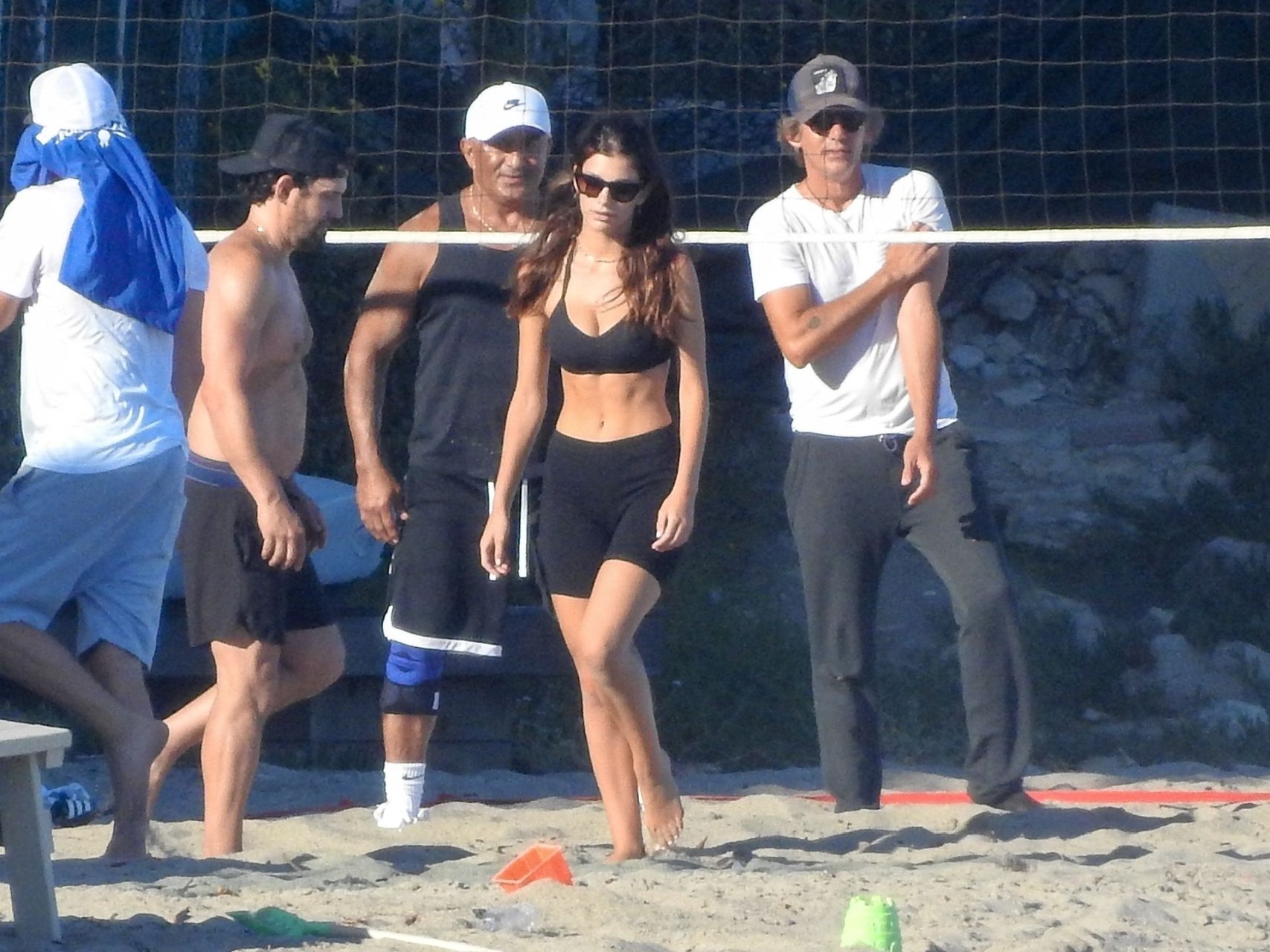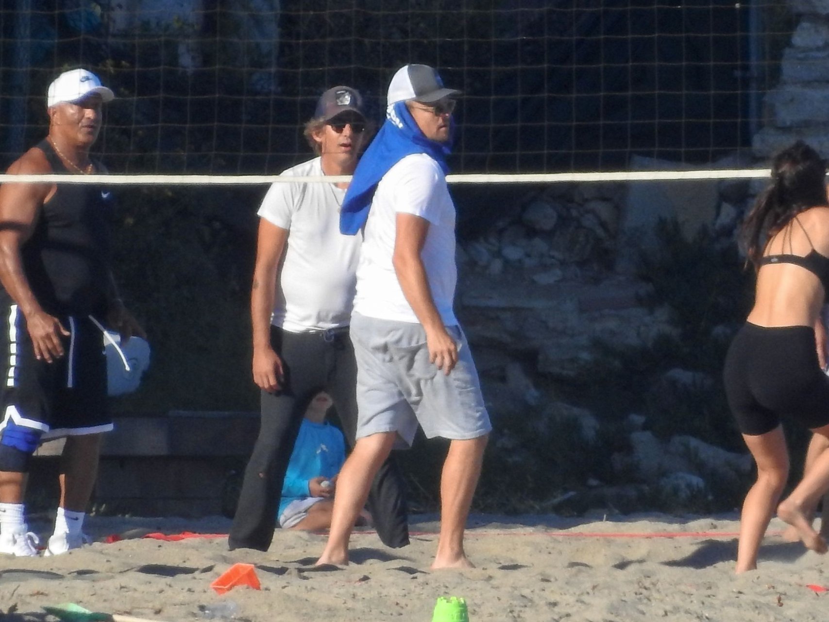 Ganador del Premio de la Academia Leonardo DiCaprio, su sexy novia Camila Morrone, y el dúo de A-listers Robin Thicke y April Love Geary, junto con sus pequeños, fueron vistos disfrutando uno de los deportes de playa favoritos de Leo este fin de semana, ¡un juego de voleibol! Fotografiado el 14/07/19.