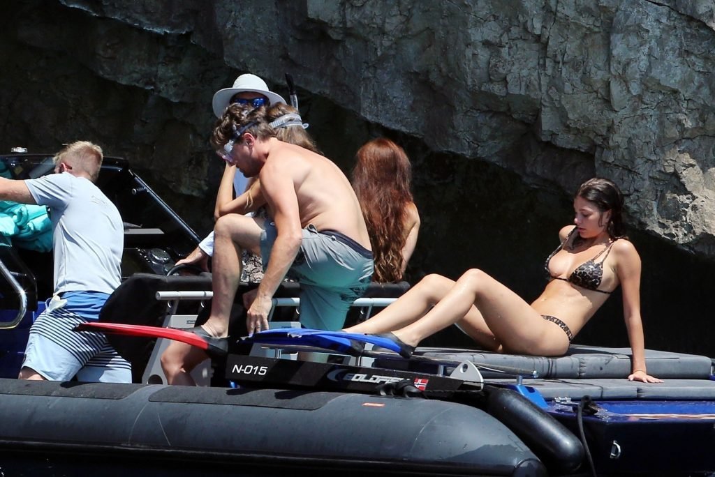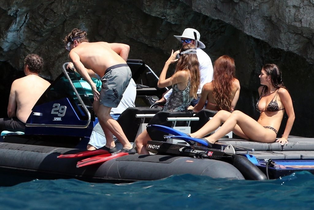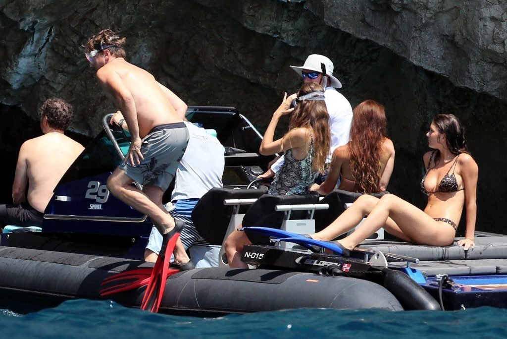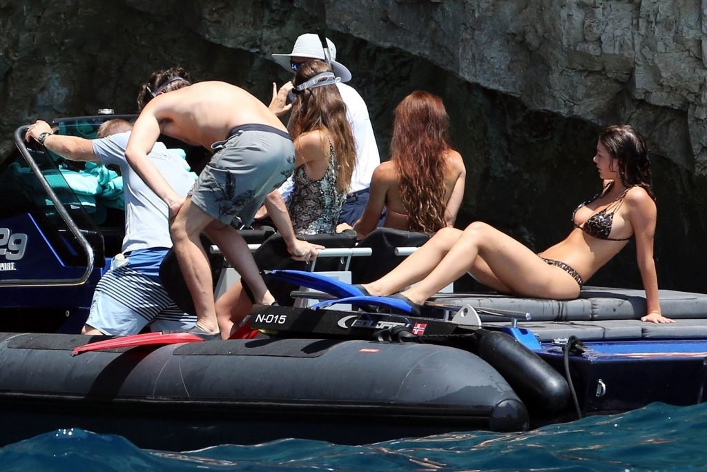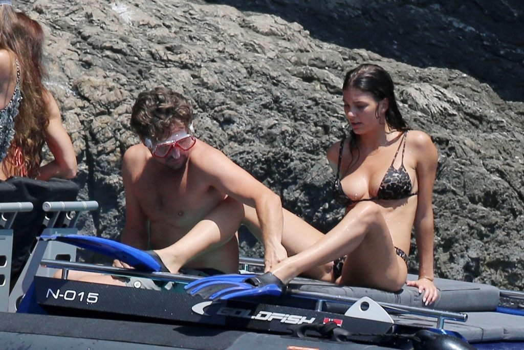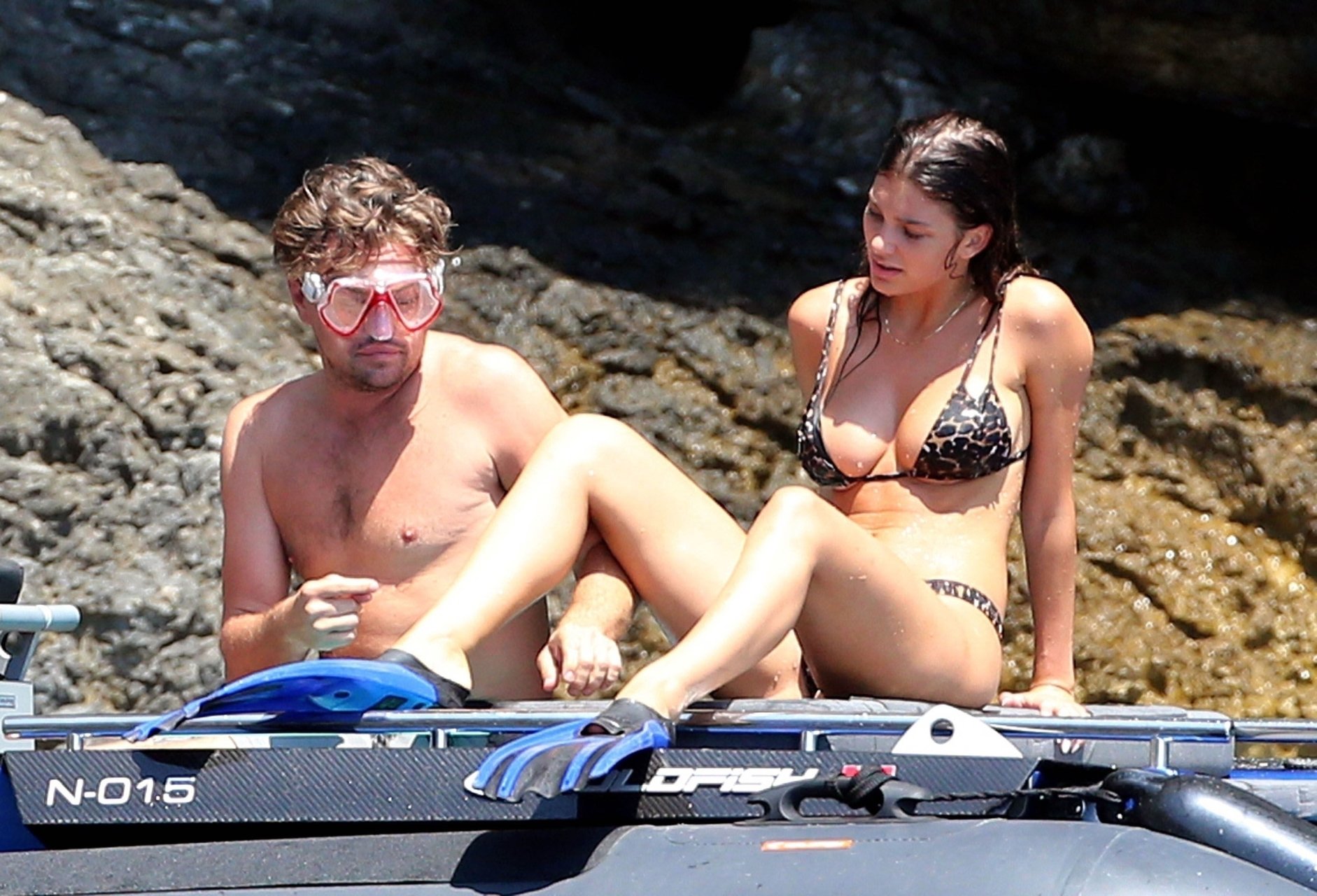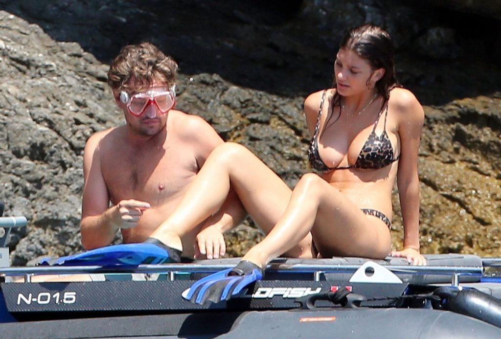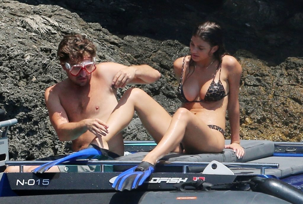 La feliz pareja parecía relajada mientras disfrutaban de un poco de snorkel juntos en las aguas turquesas antes de relajarse juntos en el barco con amigos, Camila mostró su trasero y su increíble cuerpo en bikini con un sexy bikini de estampado animal.