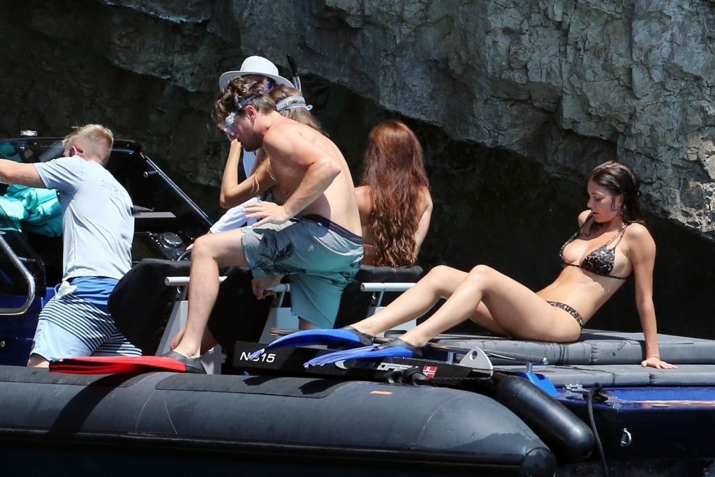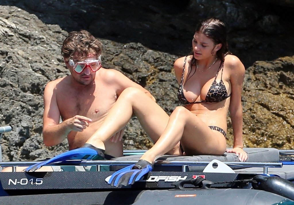 El actor de Hollywood Leonardo DiCaprio y la modelo argentina, novia Camila Morrone (21) fueron vistos de vacaciones en Nerano, 05/08/2018.
