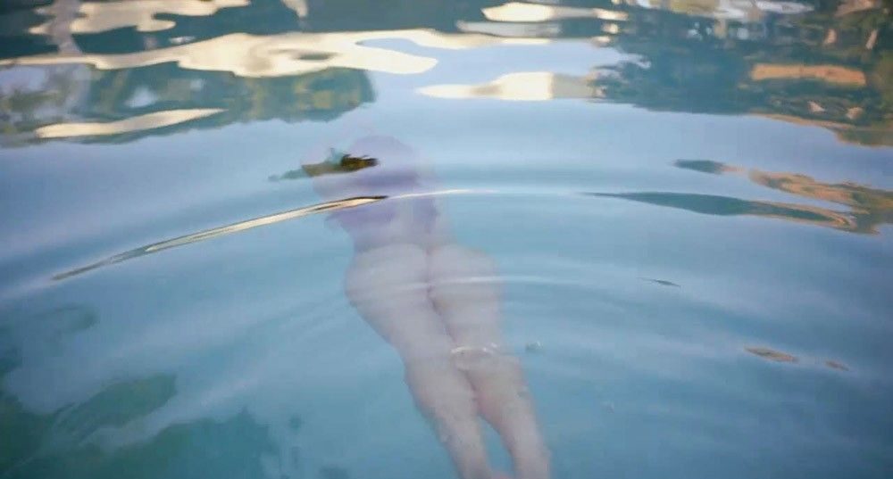 Camilla Luddington has such a hot body and showed it while skinny-dipping in a swimming pool as she swims naked from one side to another and then emerges nude from the water. She then realizes a guy is standing by the pool, and she crosses one arm in front of her to cover her breasts.